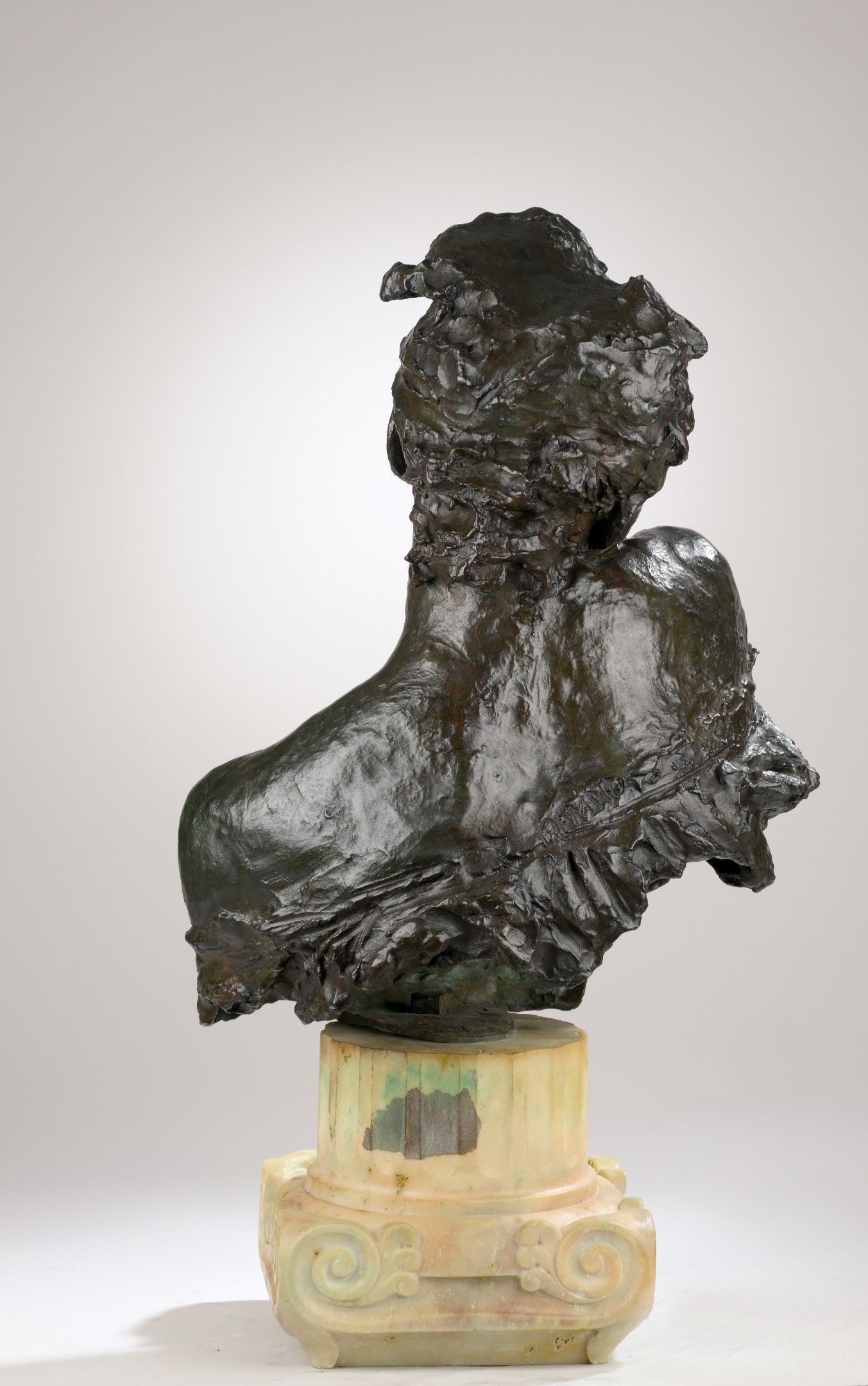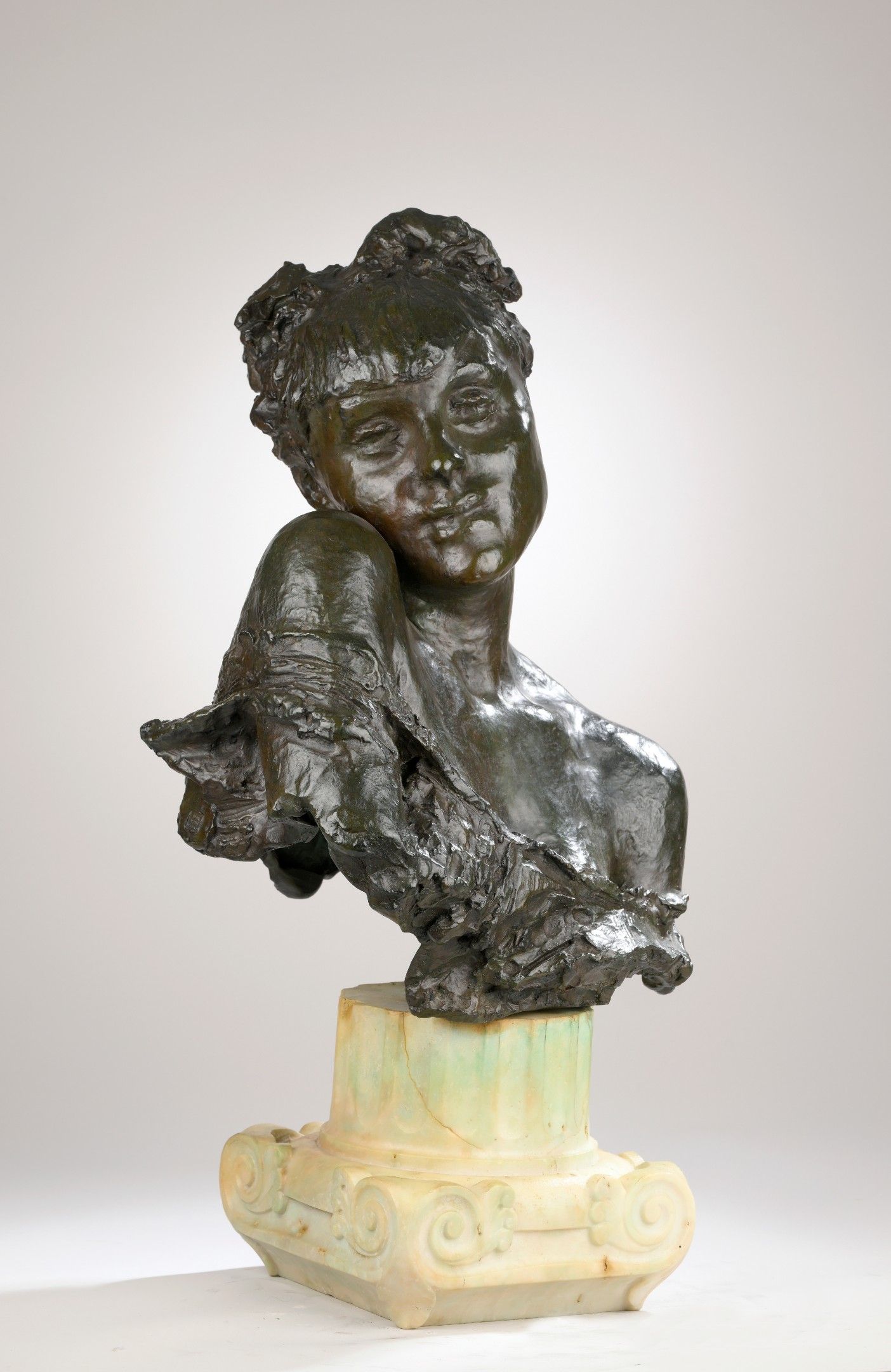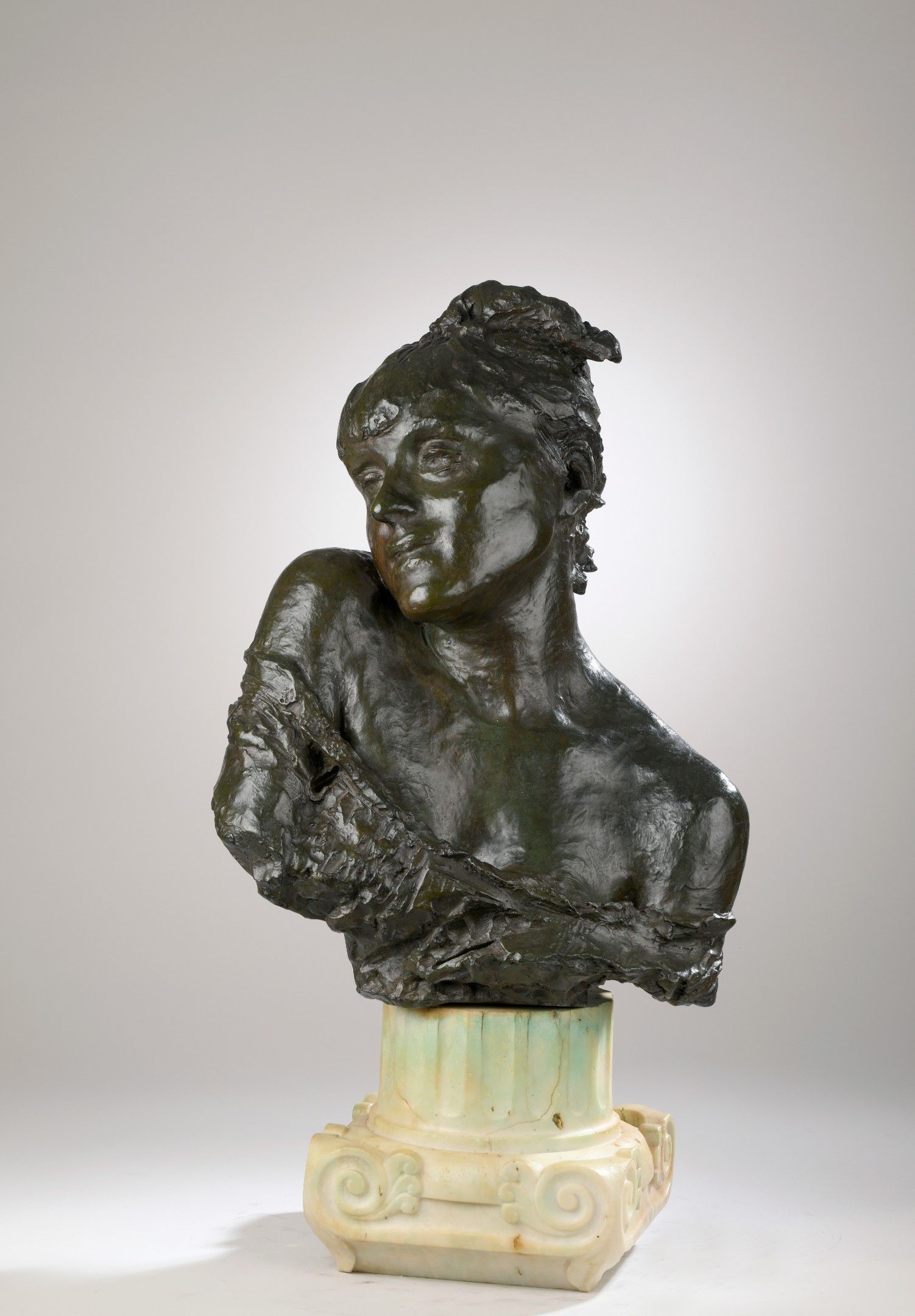 This portrait of Mathilde Duffaud, Gemito's mistress and muse, is a recent discovery among the Neapolitan sculptor's hitherto documented works. Le Vincezo met Mathilde in Naples in 1872. Mathilde, the wife of the French antiquarian Duhamel, was on holiday. Gémito painted her portrait and fell in love with her. The two lovers soon settled down together in the shadow of Mount Vesuvius, and a few years later Mathilde followed the sculptor when he left for Paris. As well as the first terracotta bust in 1972, Gémito sculpted or drew his muse in various poses throughout their romance, which lasted until Mathilde's premature death after several years of serious illness. In an important written communication dated 30 January 2025, Jean-Loup Champion, the art historian and scientific director of the monographic exhibition, Gémito: Le sculpteur de l'âme napolitaine (Paris, Petit Palais, 15 October 2019 - 26 January 2020) dates this bust from the sculptor's stay in France, between 1877 and 1878 to be precise. In addition to the Parisian mark of the founder and dealer Adrien Hébrard, he notes a similarity between Mathilde's hairstyle and that found in the portraits drawn by Gémito in Paris at the same time. The fine portrait, dated 1877 and painted in the capital by the couple's friend Antonio Mancini, shows the sculptor's mistress in the same finery. Above all, Jean-Loup Champion points out that for this astonishing portrait, Gémito departed from the crude, uncompromising naturalism of Pescatore, which offended the critics when it was presented at the 1877 Salon. Mathilde poses more sensually, more languidly, more suggestively than in the elegant but conventional Neapolitan portrait of 1872. The sculptor's hand is broader and faster, and the brushstrokes are more sketchy, freer and more "Parisian".