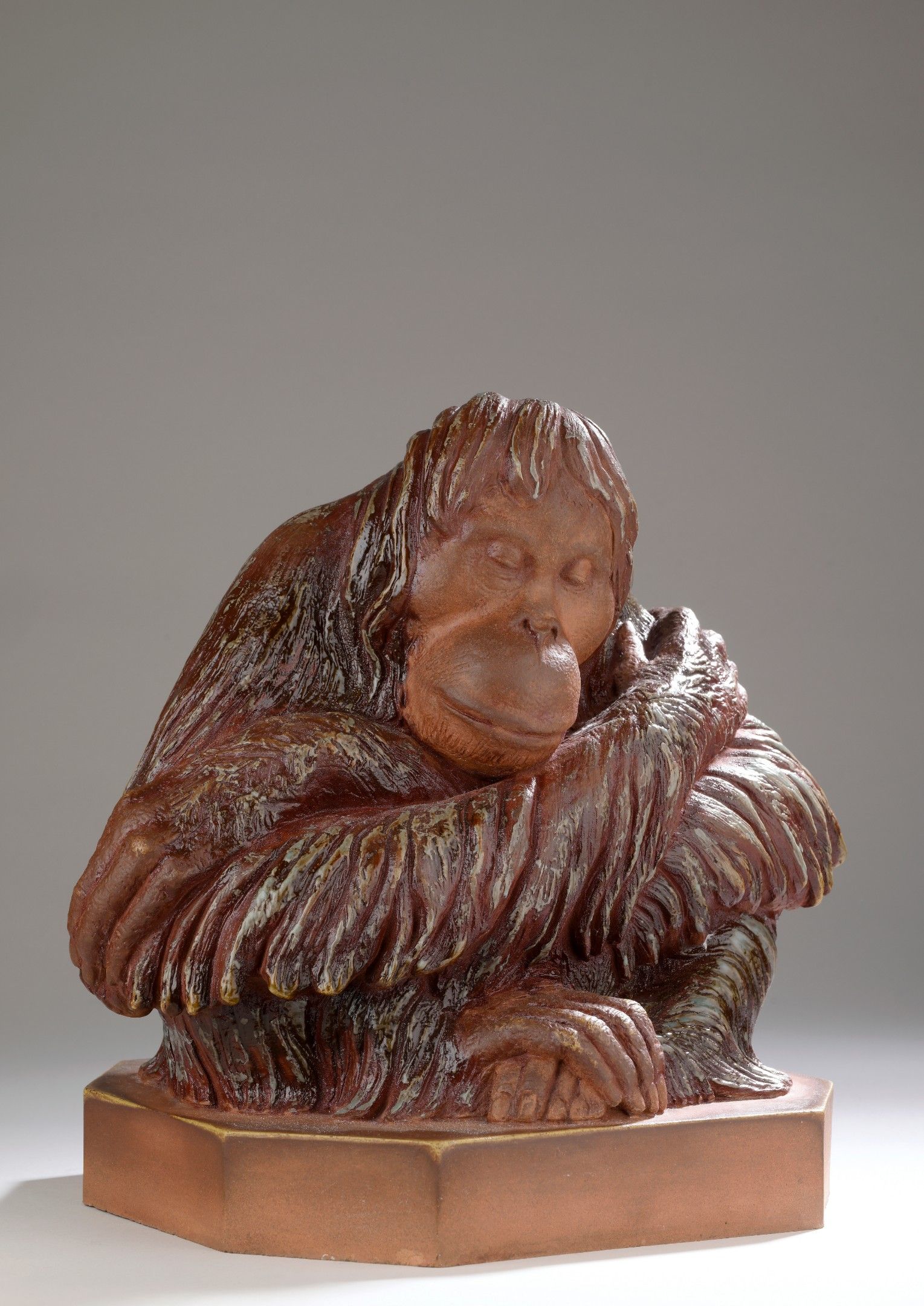 The son of painters Lucien and Jeanne Simon, Paul Simon turned to animal sculpture. Observing the animals at the Jardin des Plantes with fascination, he modelled the most exotic animals in clay, such as elephants, hippopotamuses and wildcats. He became particularly familiar with a large orang-utan and painted several portraits of it during the First World War. In 1929, he exhibited his sculptures for the first time at the Animalists exhibition at the Edgar Brandt gallery, alongside François Pompon, Georges Guyot, Edouard Marcel Sandoz and Armand Petersen. After the Second World War, encouraged by Sandoz, Paul Simon turned to publishing and produced four models for the Manufacture de Sèvres, including our orang-utan in 1947.