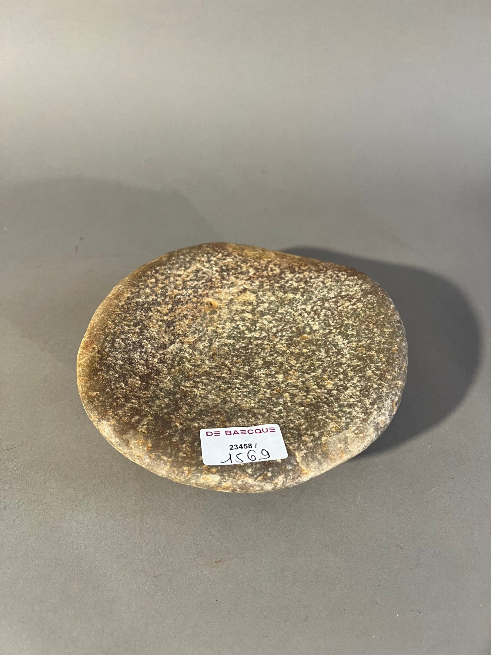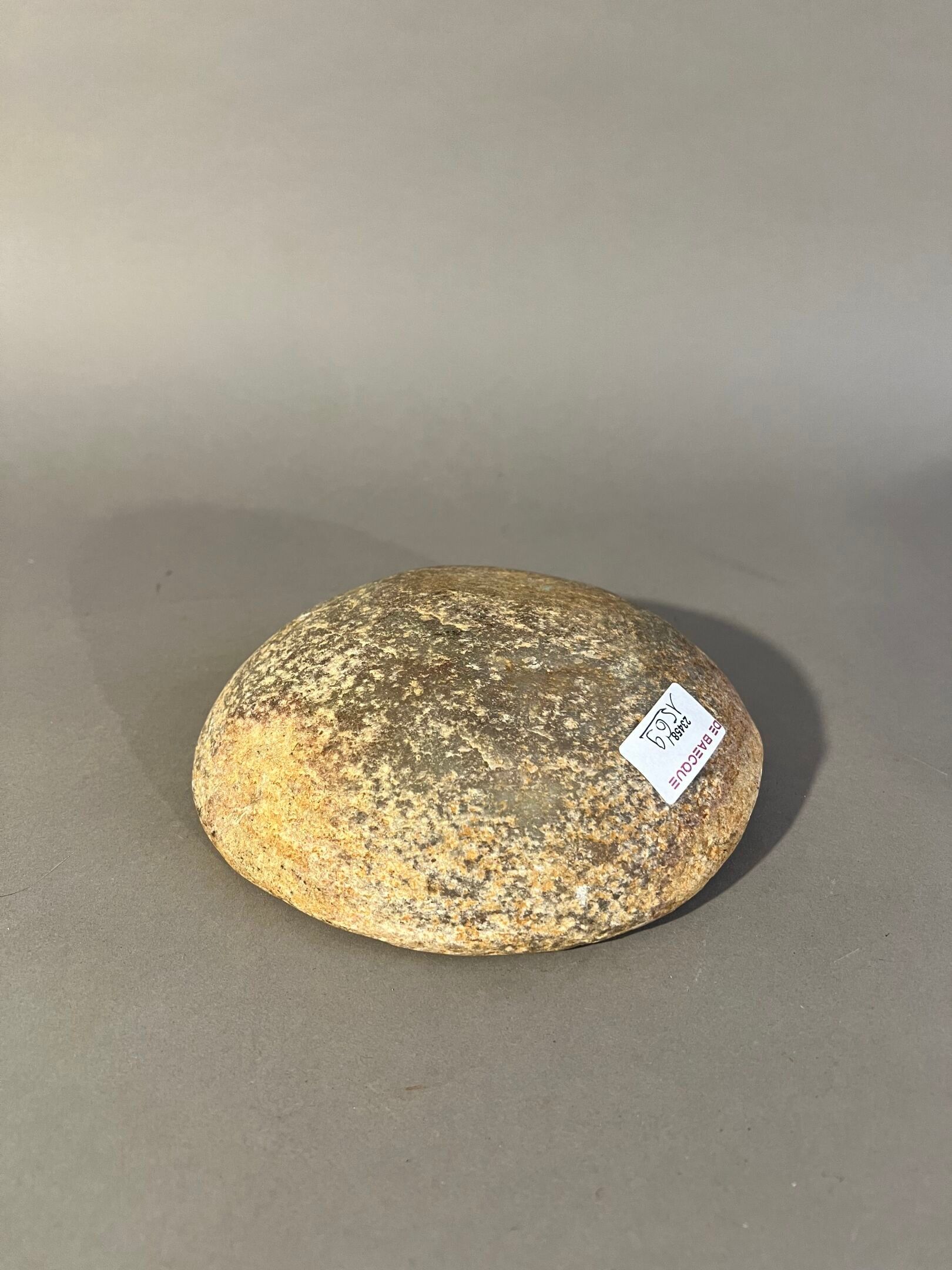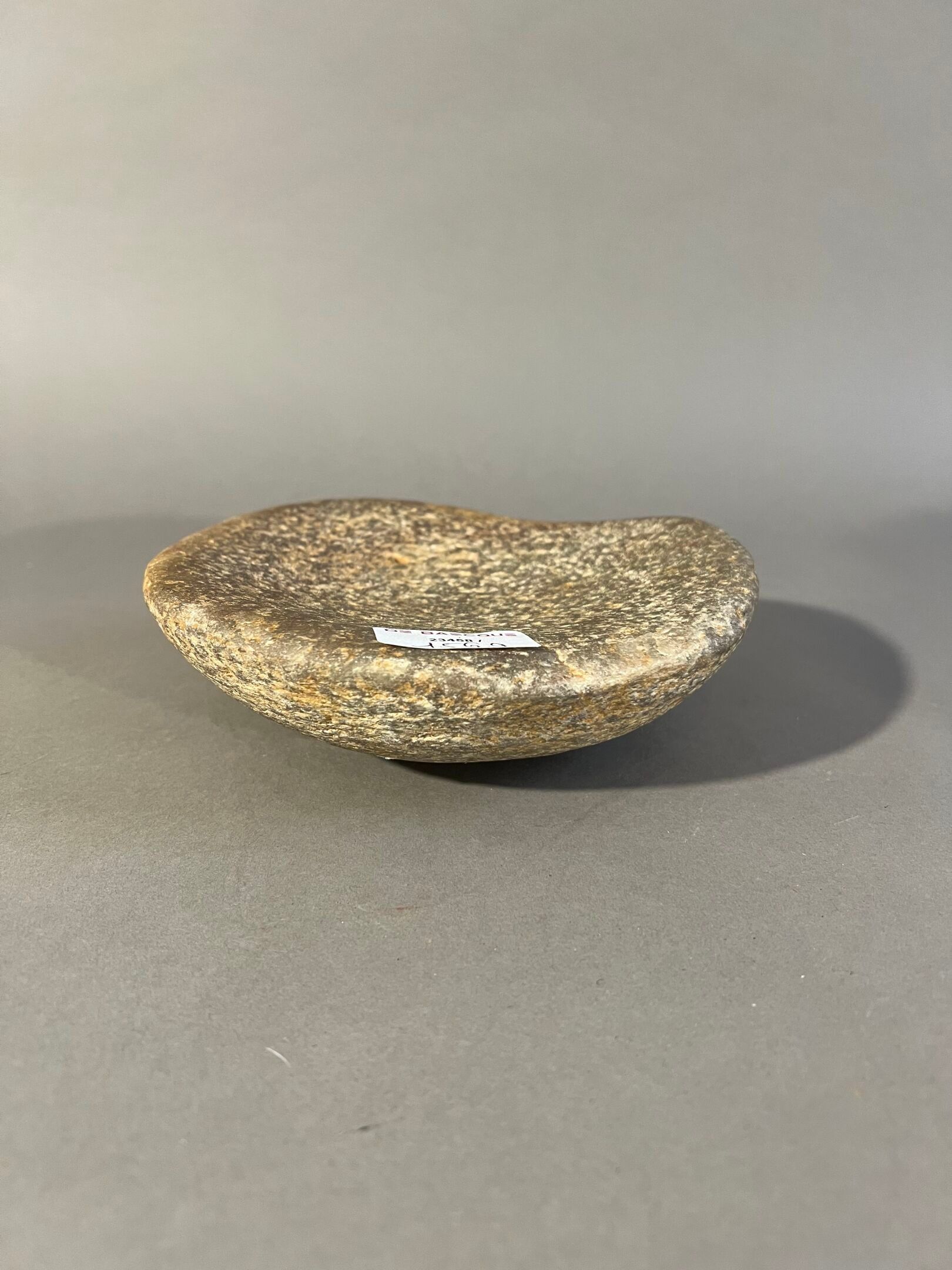Round shape, hollowed out in the centre by use.