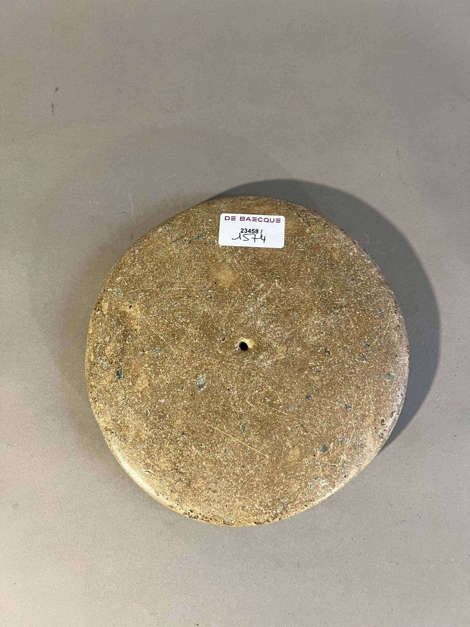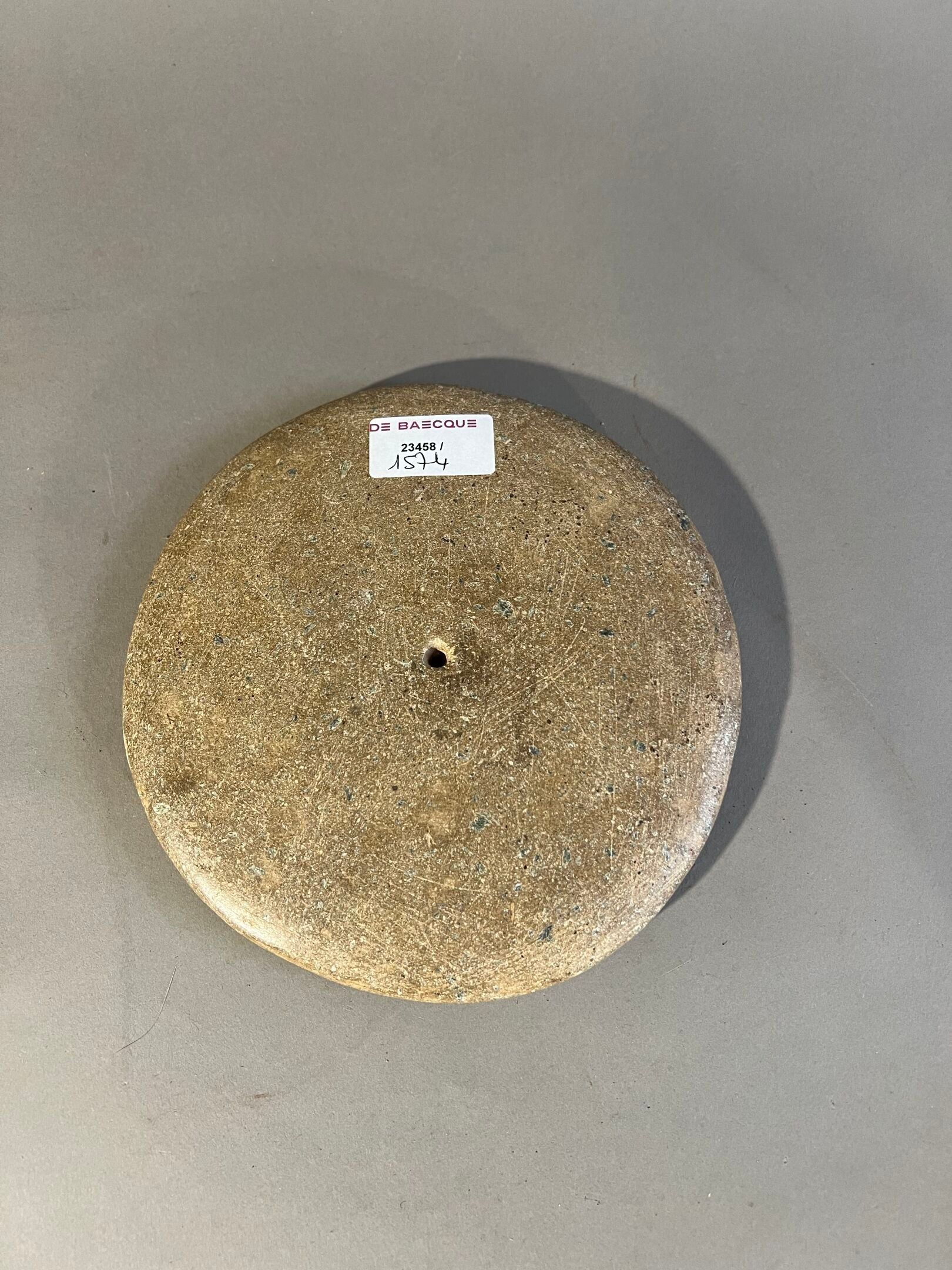 Pierced in the centre, the surface smoothed by use.