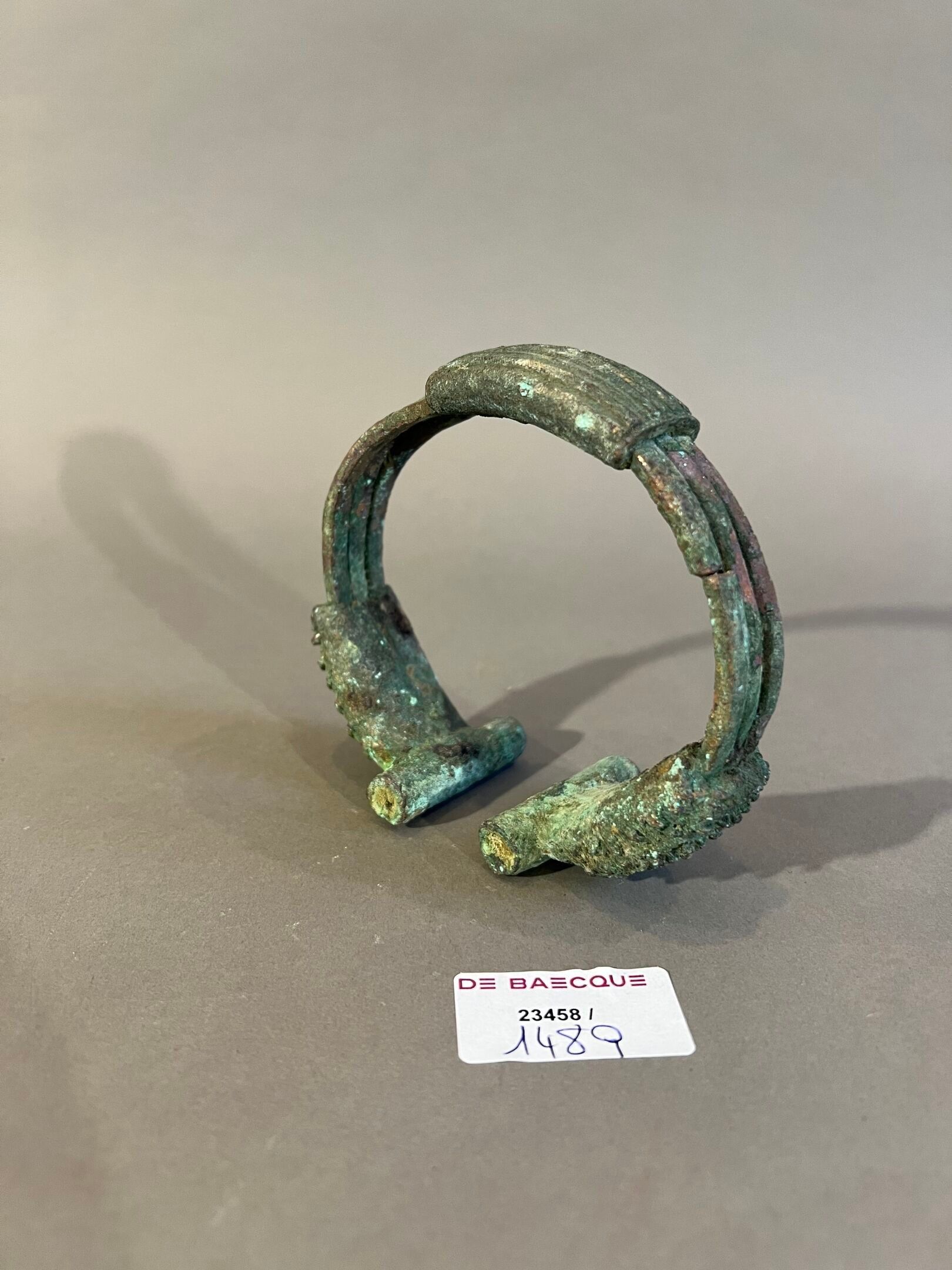 Composed of three rows linked by rectangular motifs in relief decorated with various incisions.