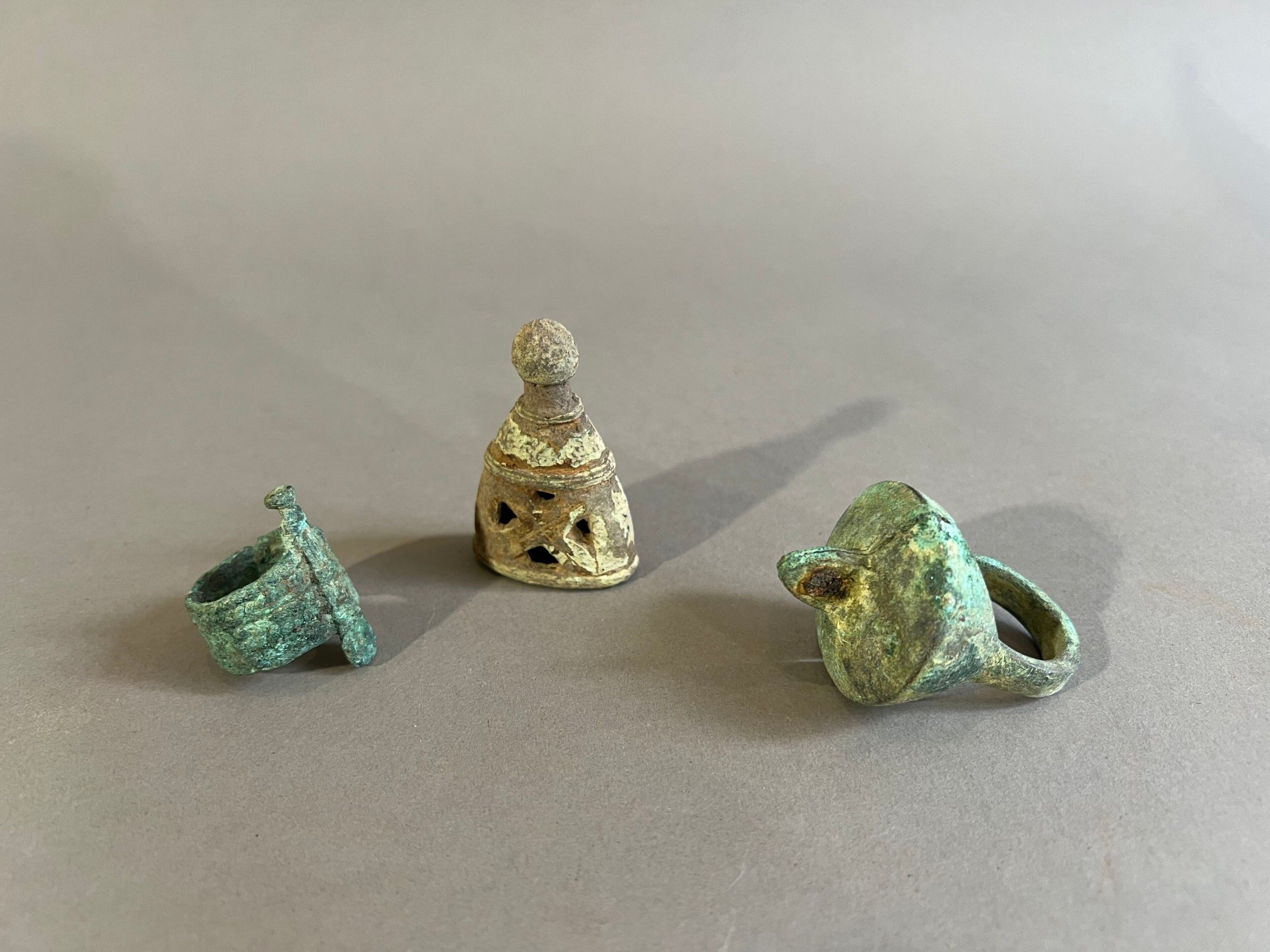 -2. Ring decorated with a conical motif, ending in a small sphere.