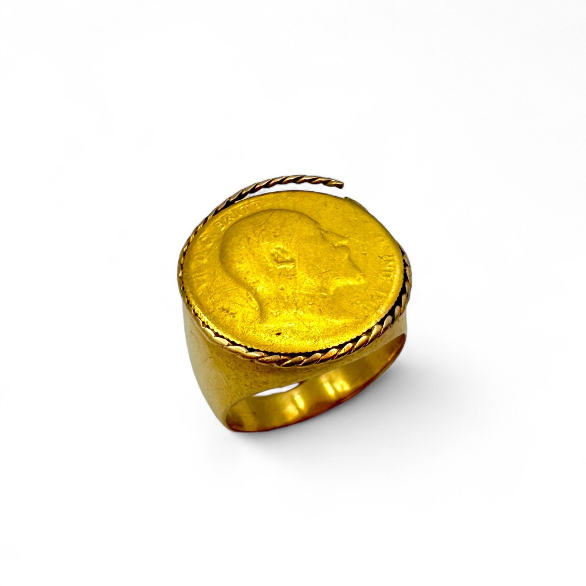 Yellow gold (750) signet ring set with an Edward VII gold so…