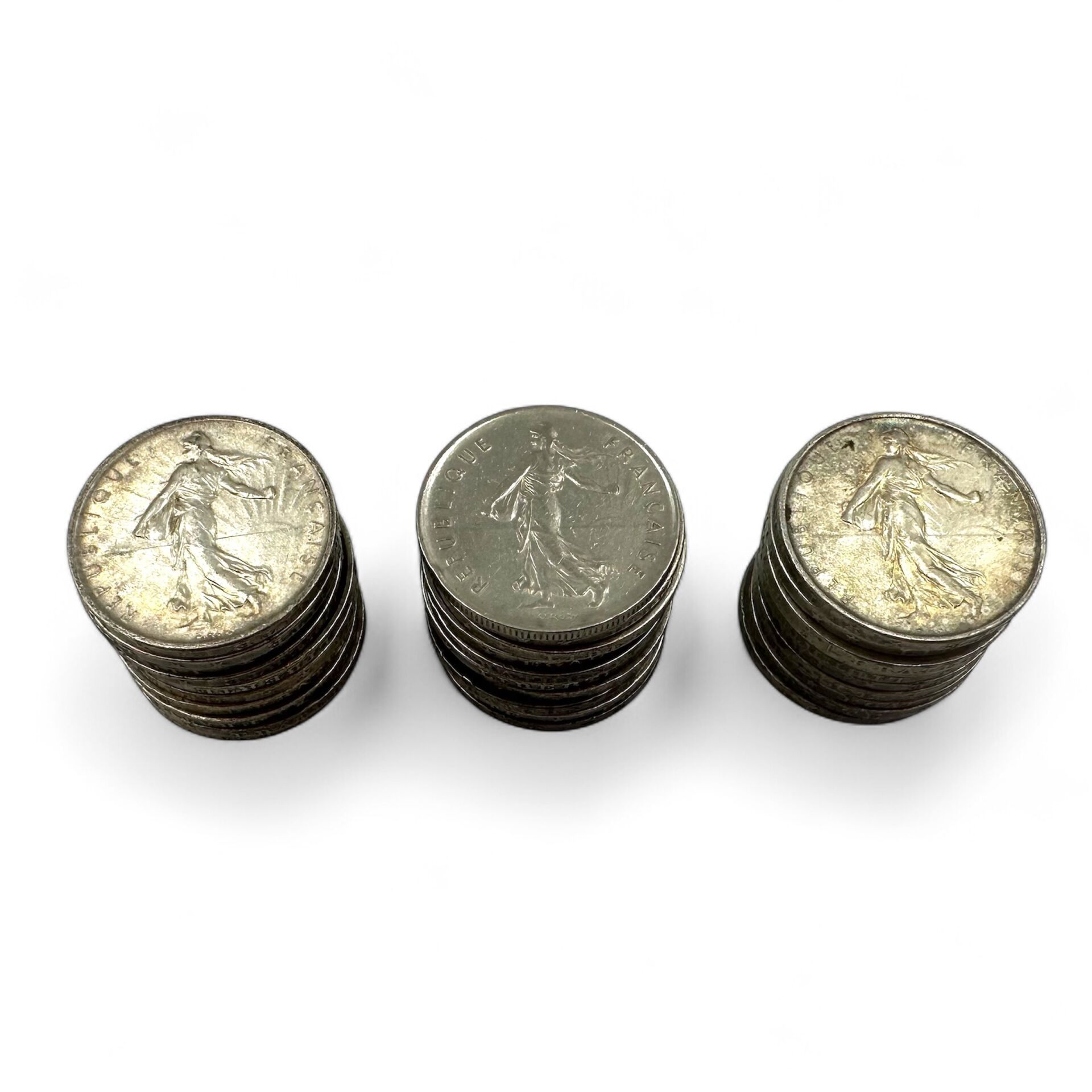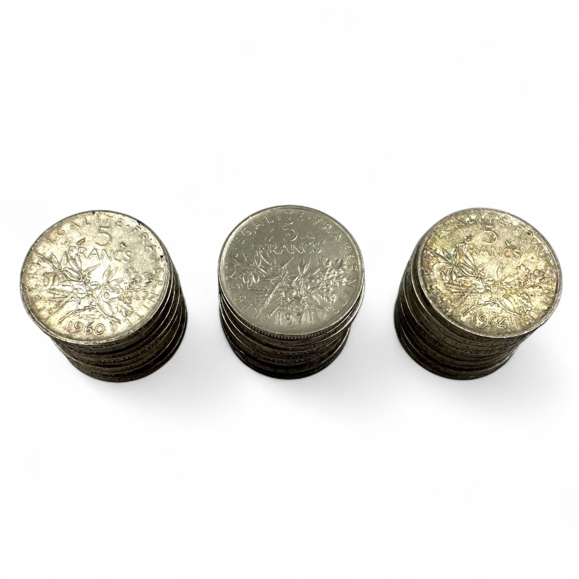 Lot of 5 francs silver "Semeuse" coins.