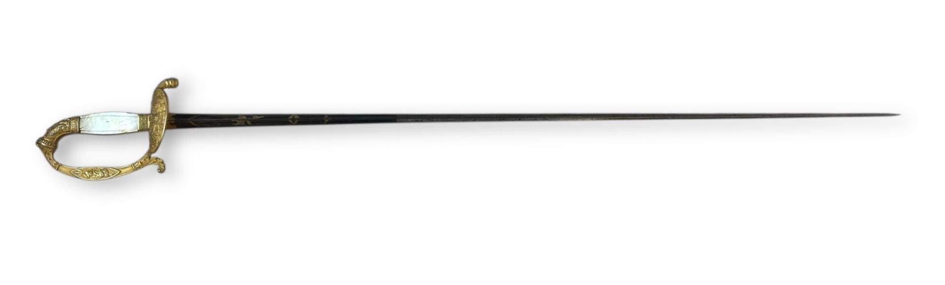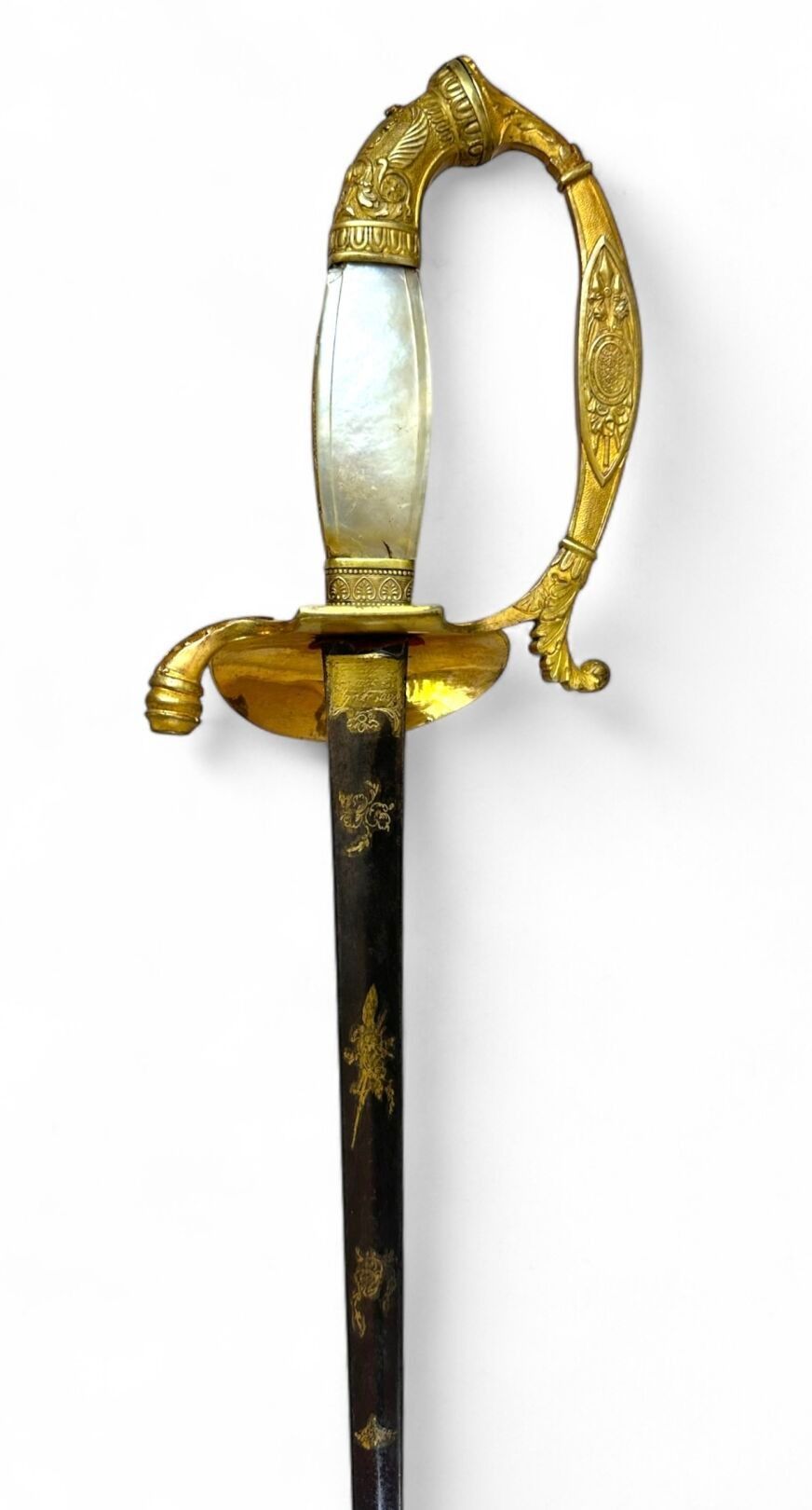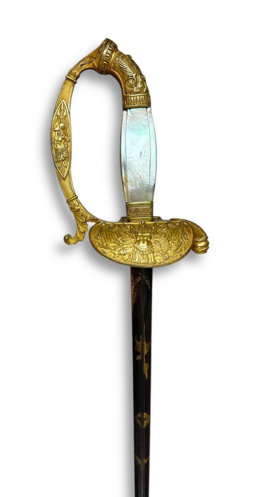 Officer's sword. Gilt brass handle and guard, pair of mother…