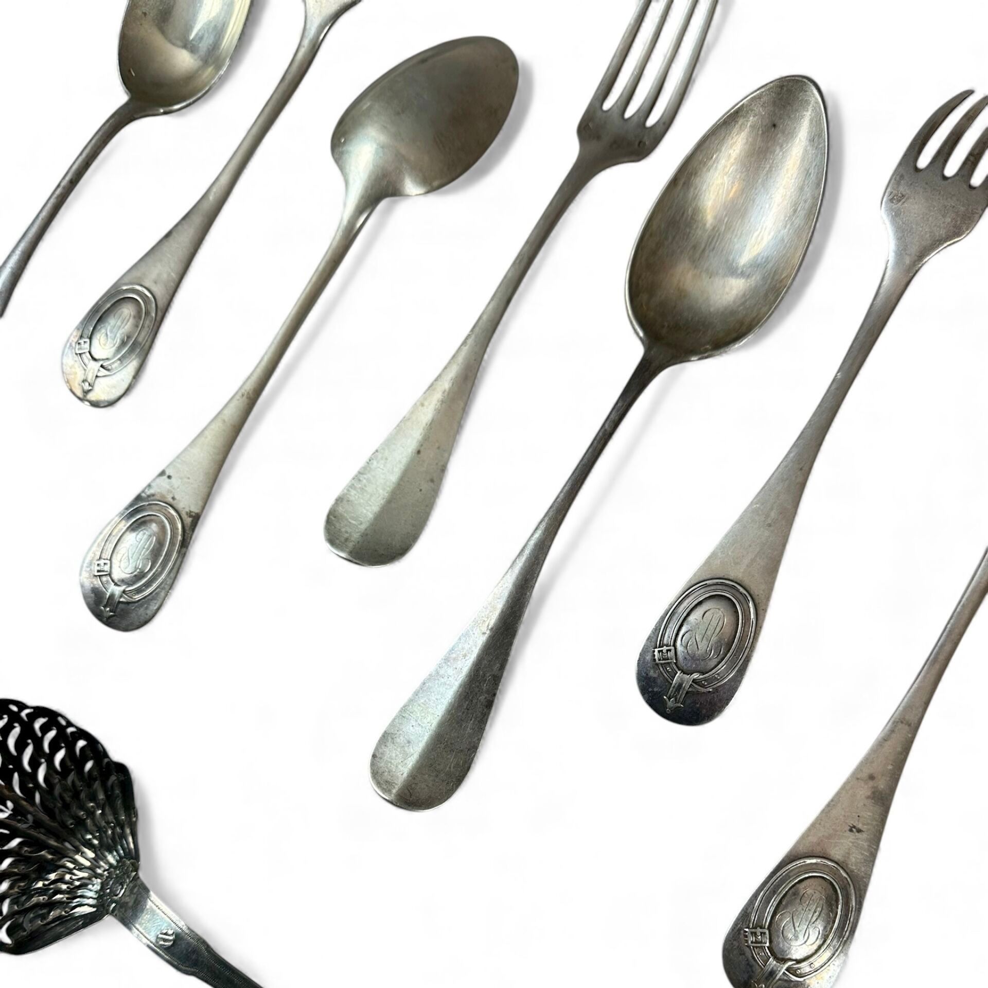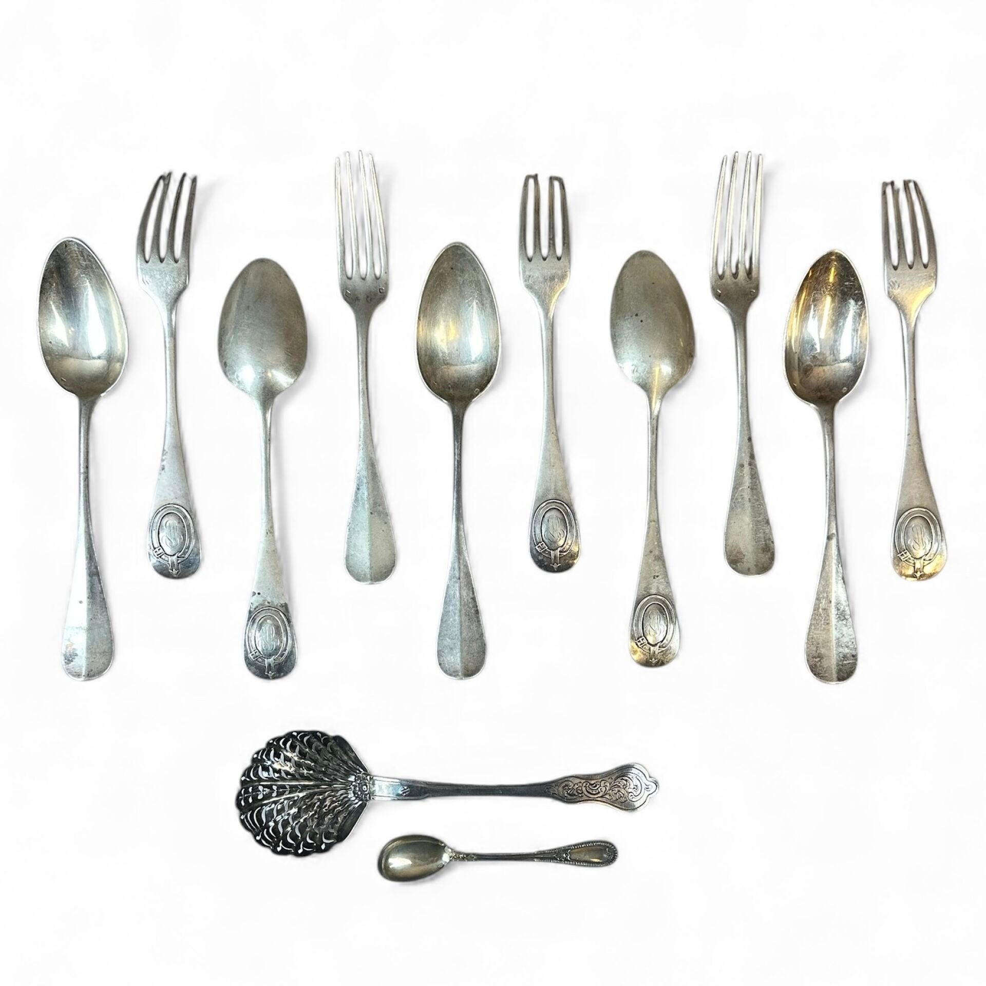 5 flatware pieces in silver (950), single-flat model, figured on the reverse in a raised belt motif.