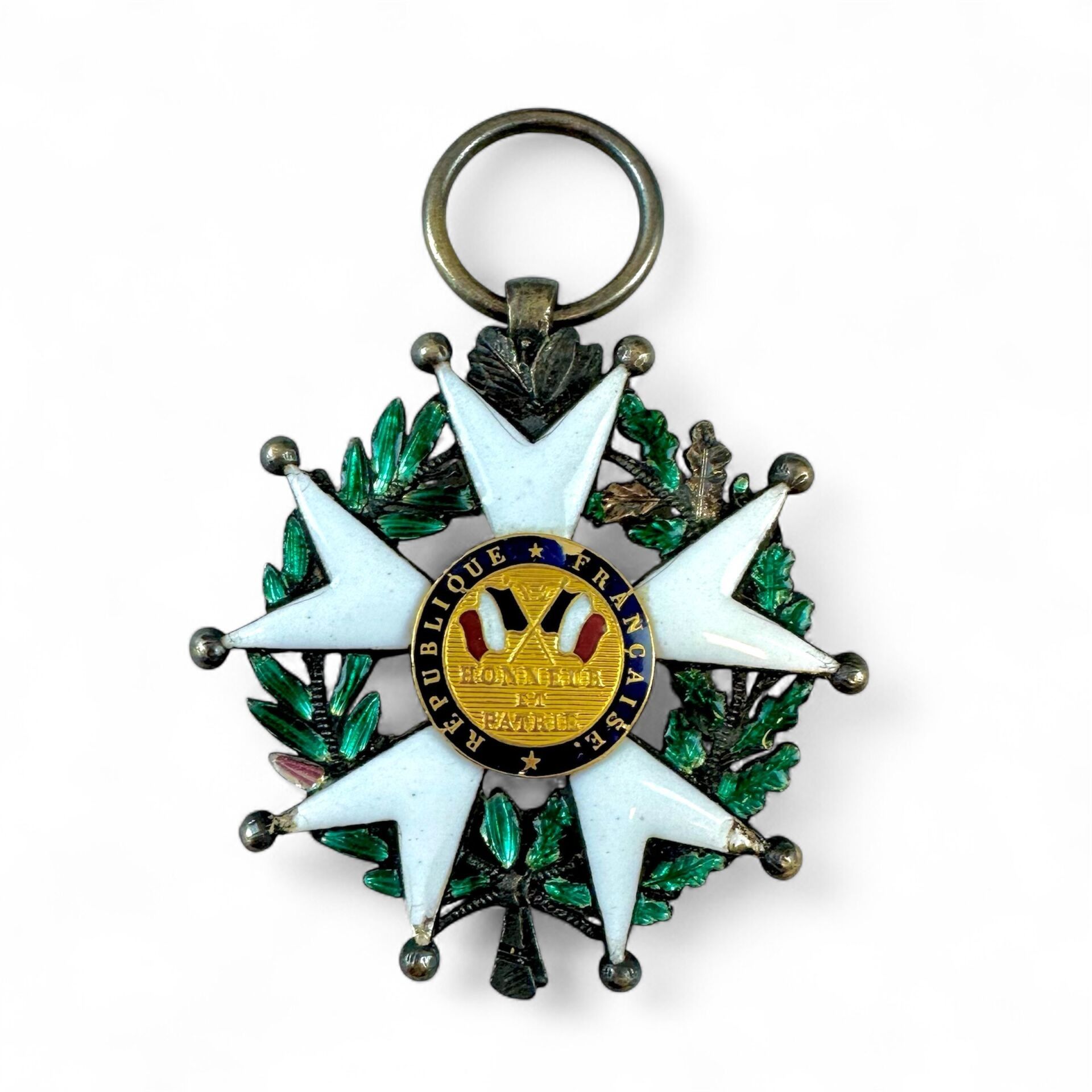 - Reverse: circular legend "REPUBLIQUE * FRANÇAISE"; in the centre two crossed French flags, below "HONNEUR ET PATRIE".