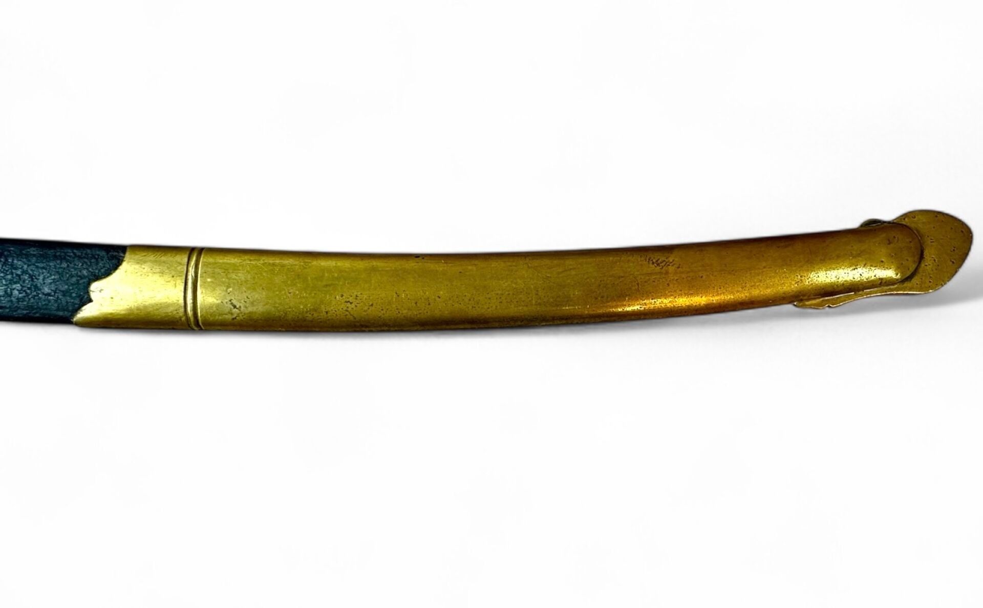 Black leather scabbard with double gilt brass fittings, medium condition.