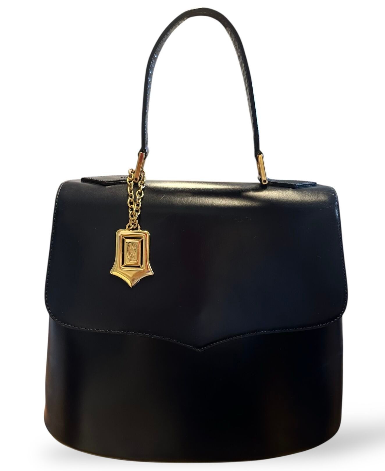 YVES SAINT-LAURENT Midnight blue box calfskin handbag.