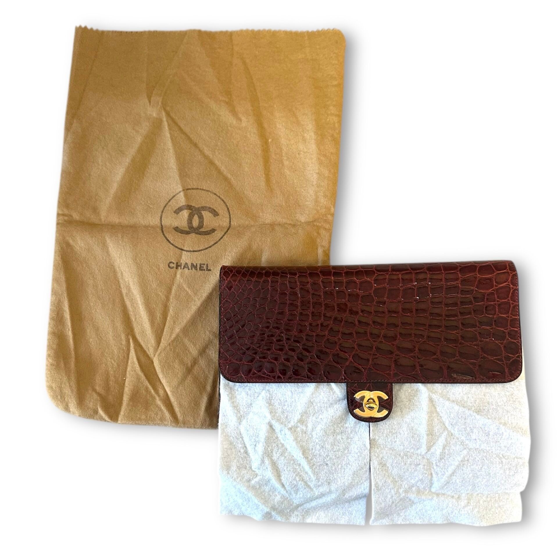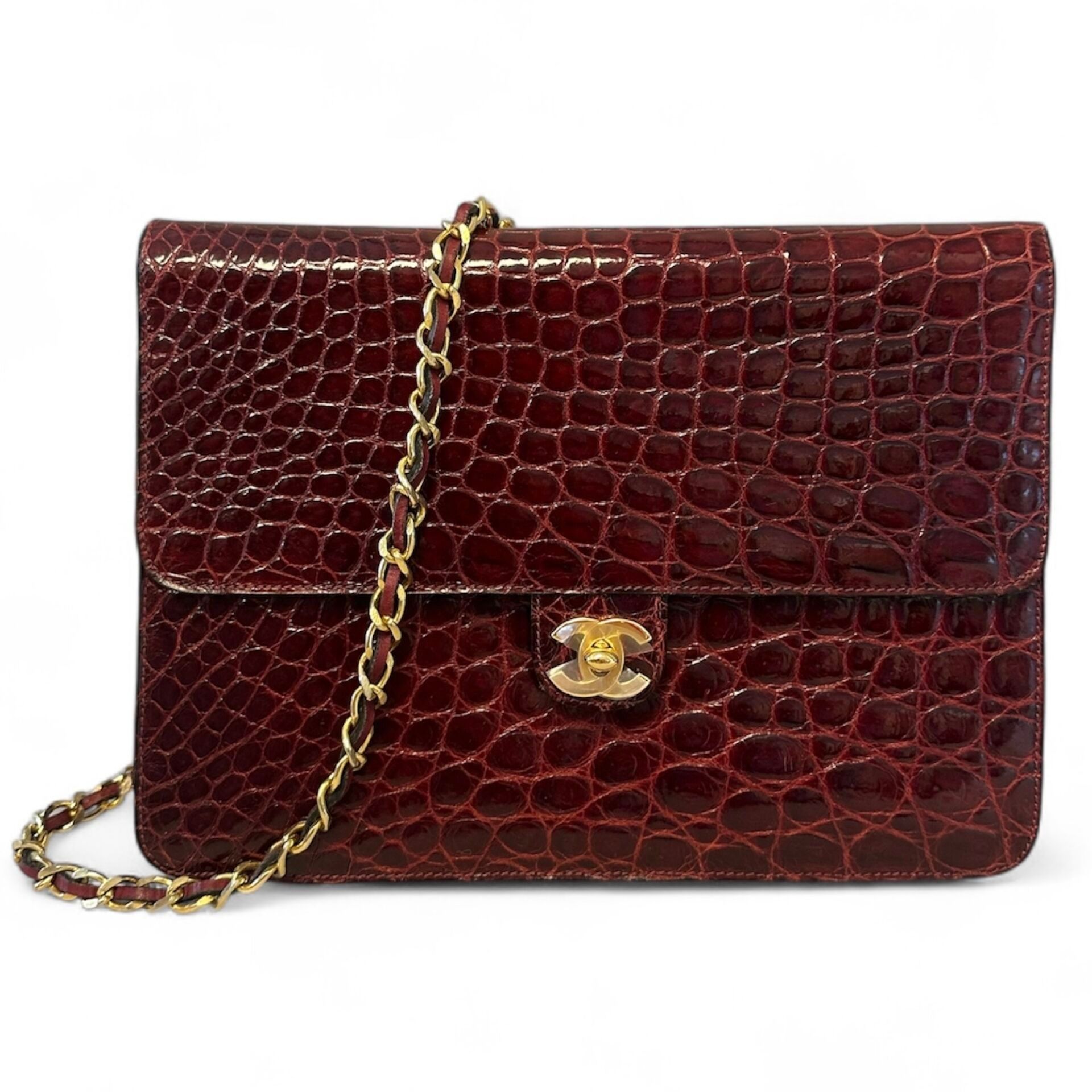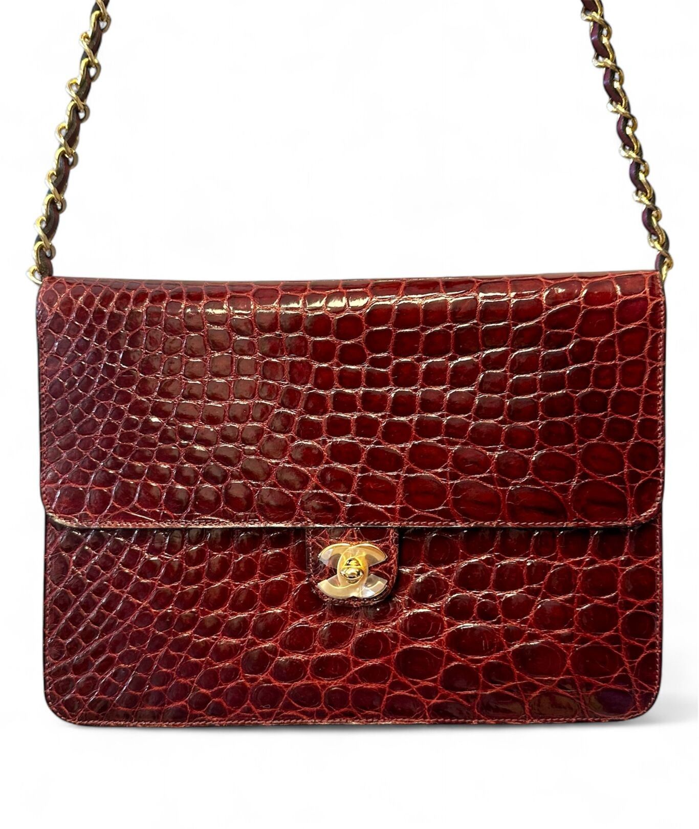CHANEL Shoulder bag in burgundy crocodile.