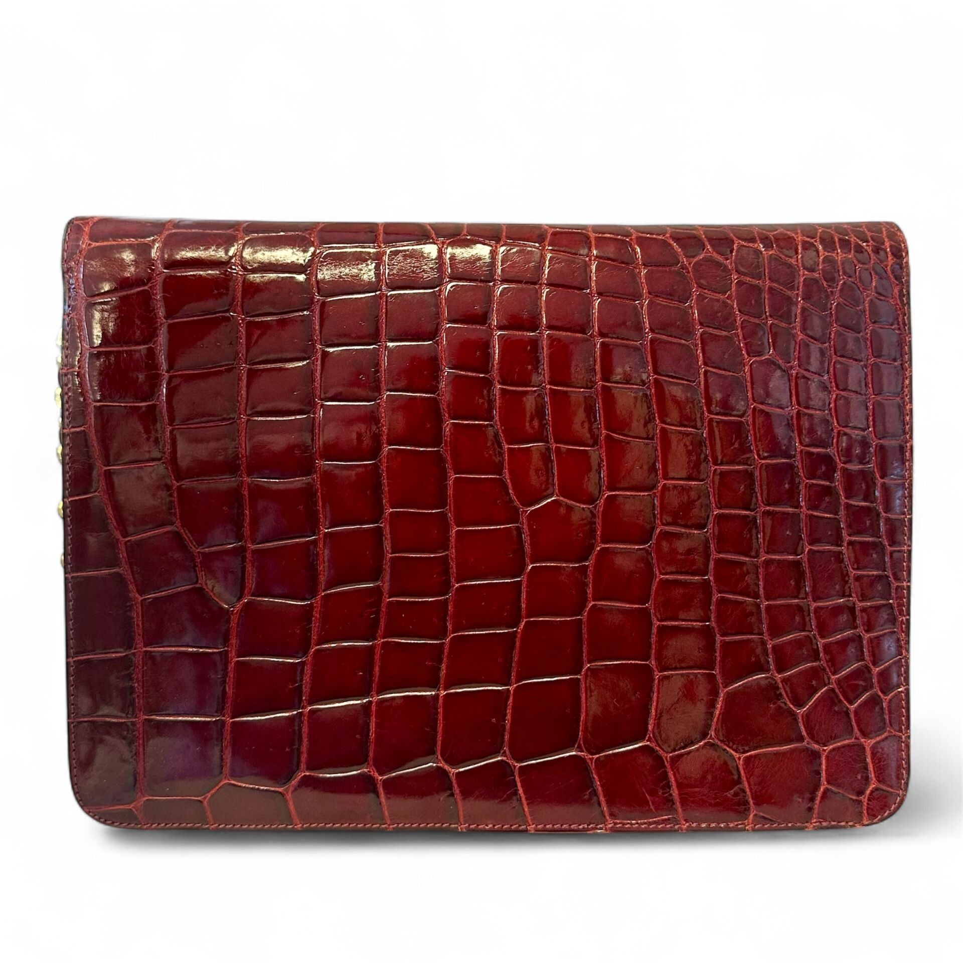 Shoulder bag in burgundy crocodile.