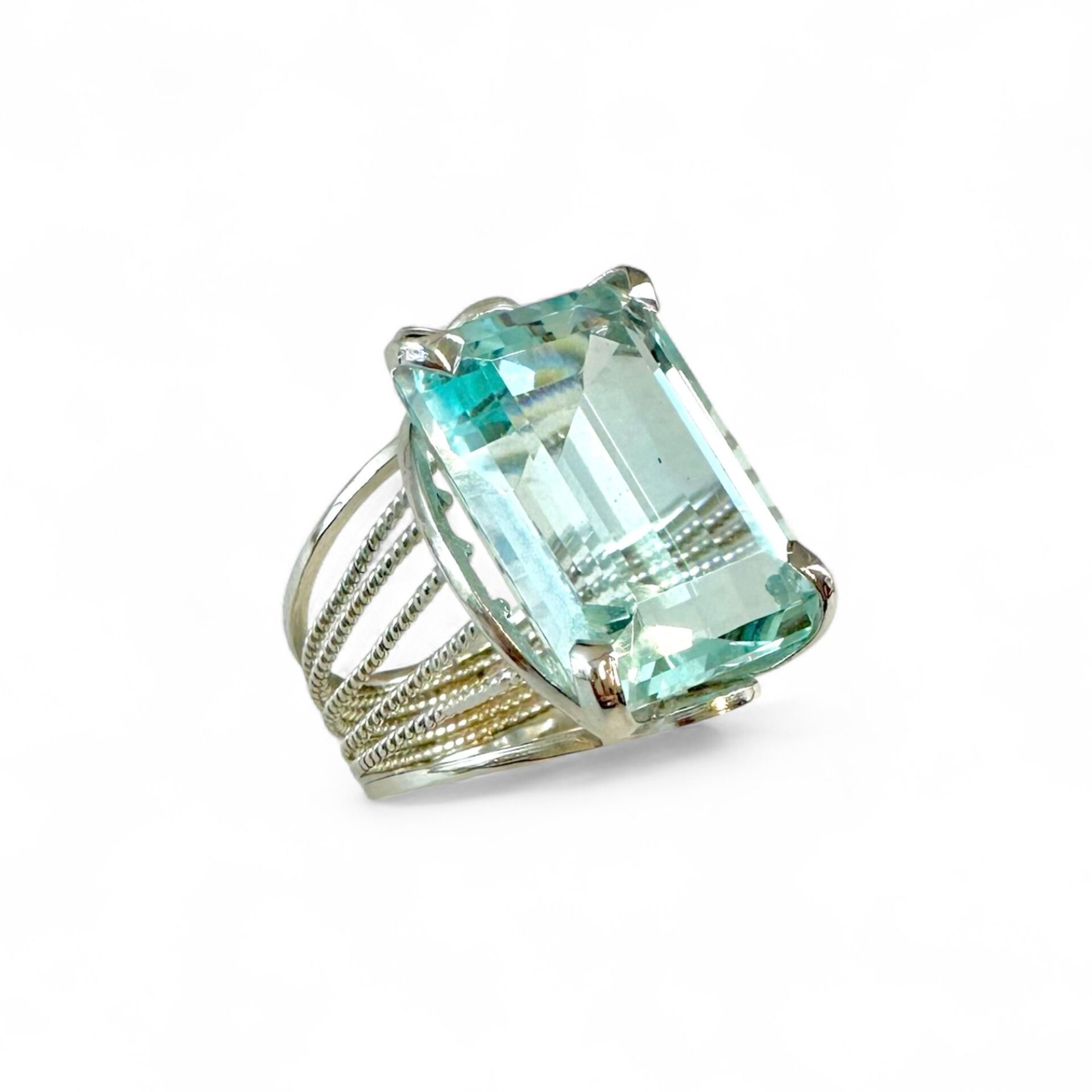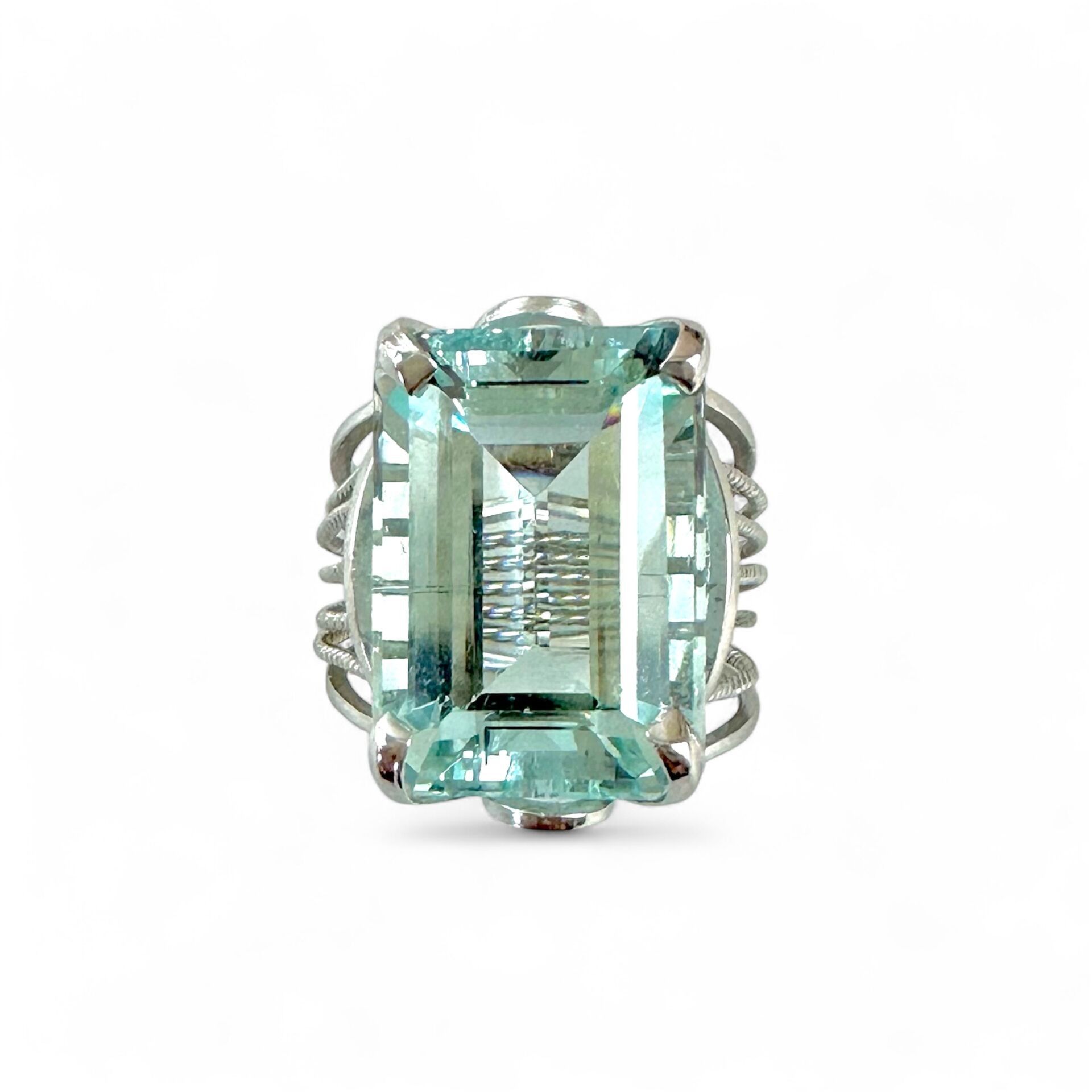 White gold (750) cocktail ring set with a large rectangular-cut claw-set aquamarine.