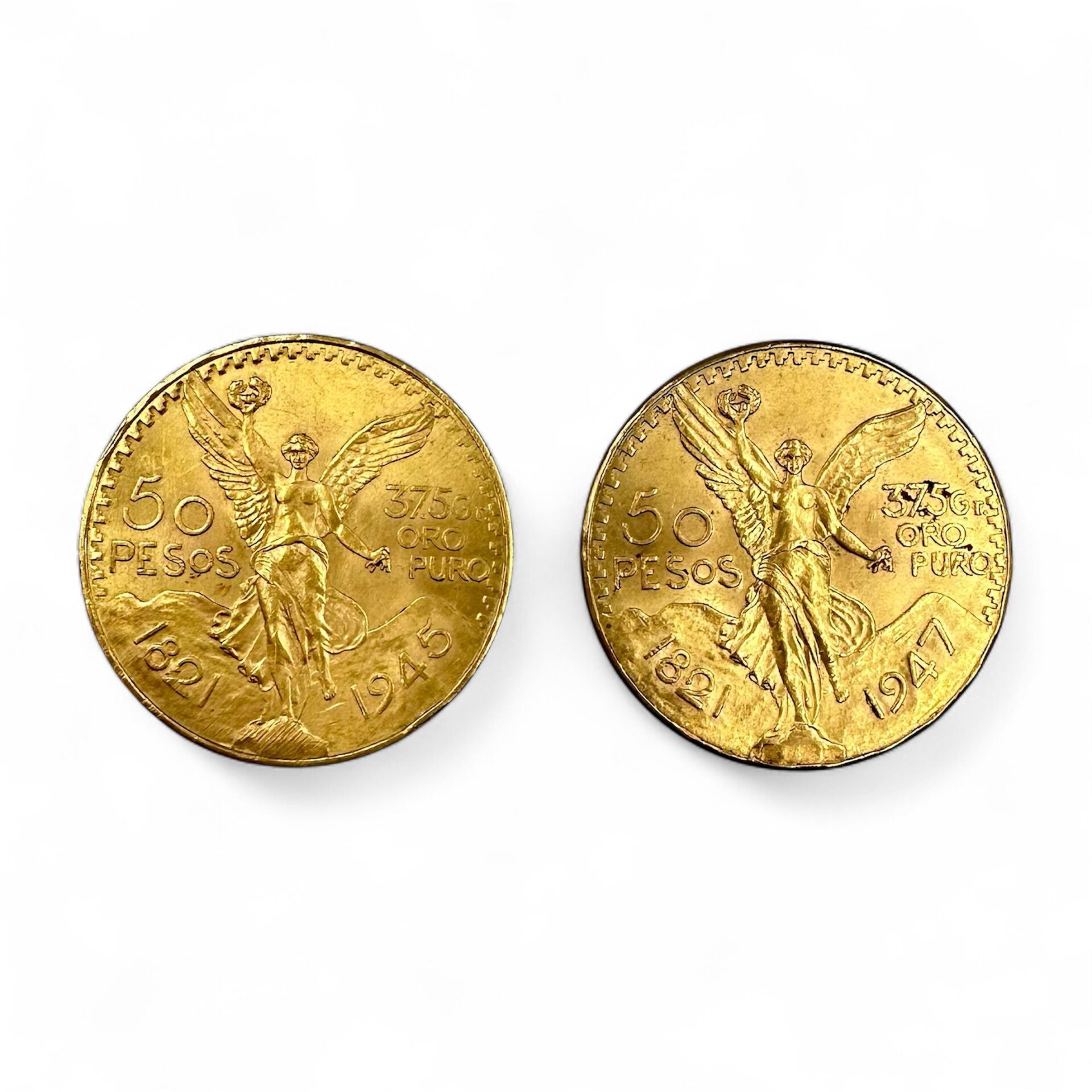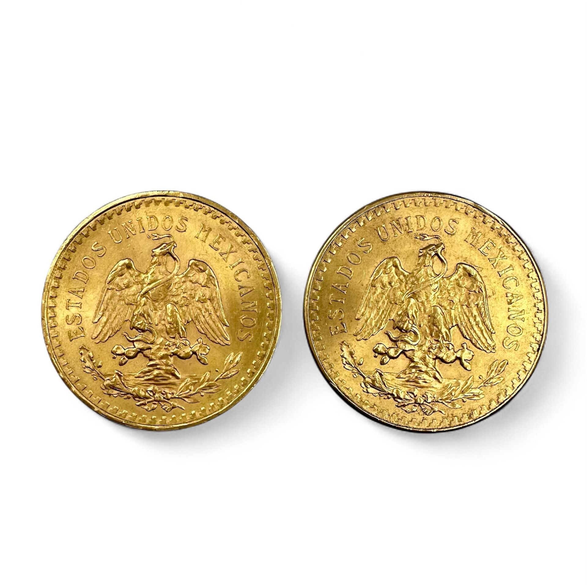 MEXICO 2 gold 50 peso coins. Total weight: 83.2 g.