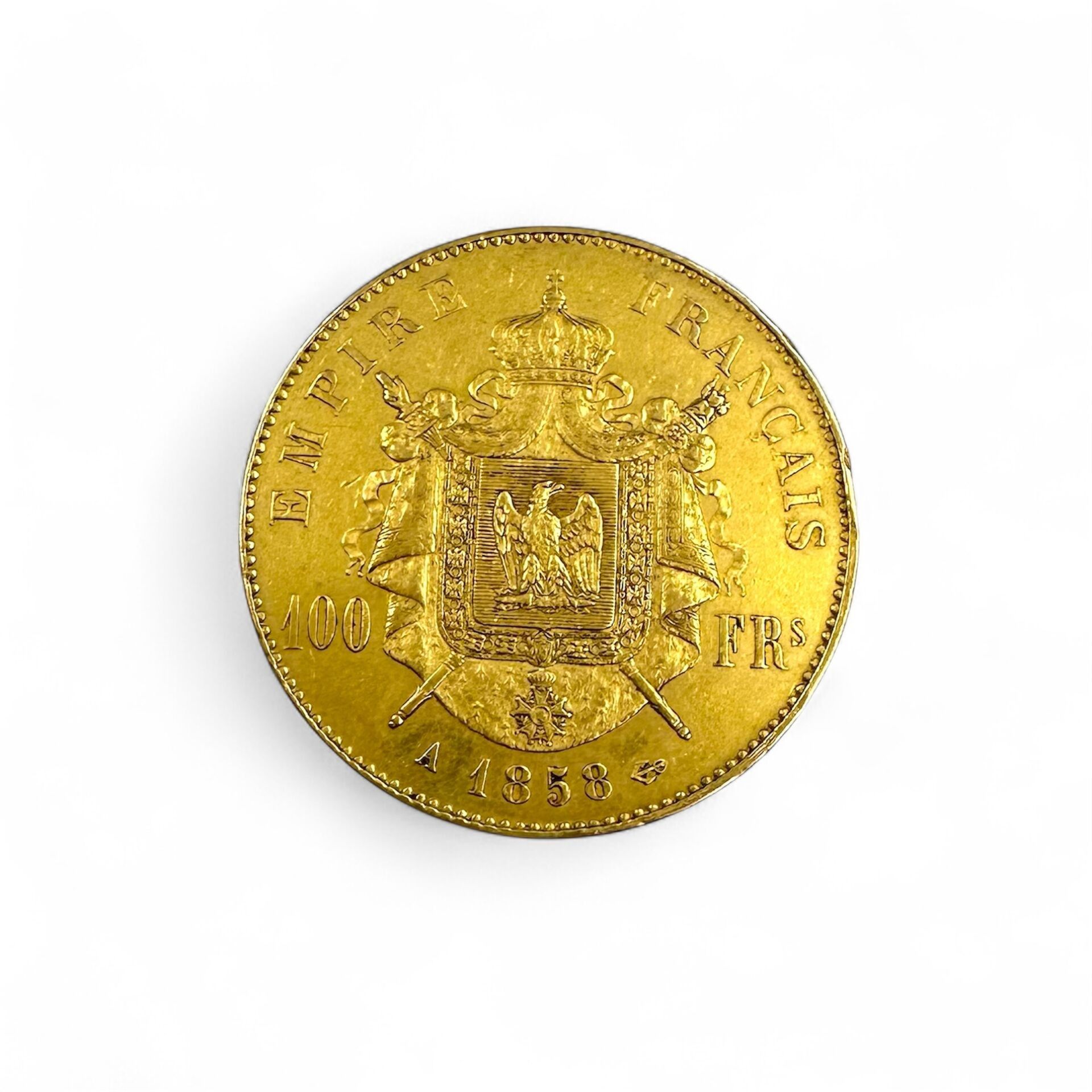One 100 francs gold coin Napoléon III "Tête nue" 1858 A.
