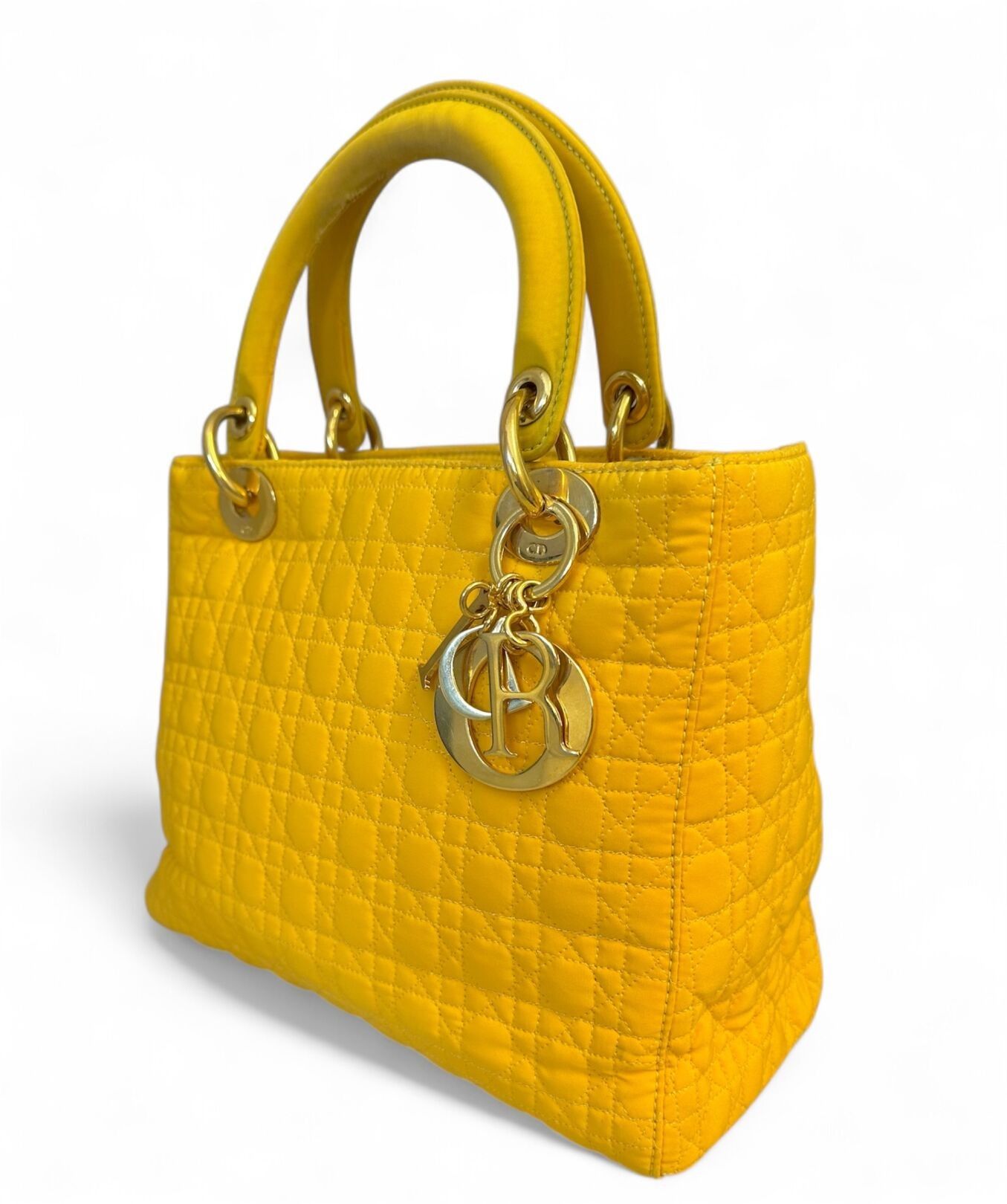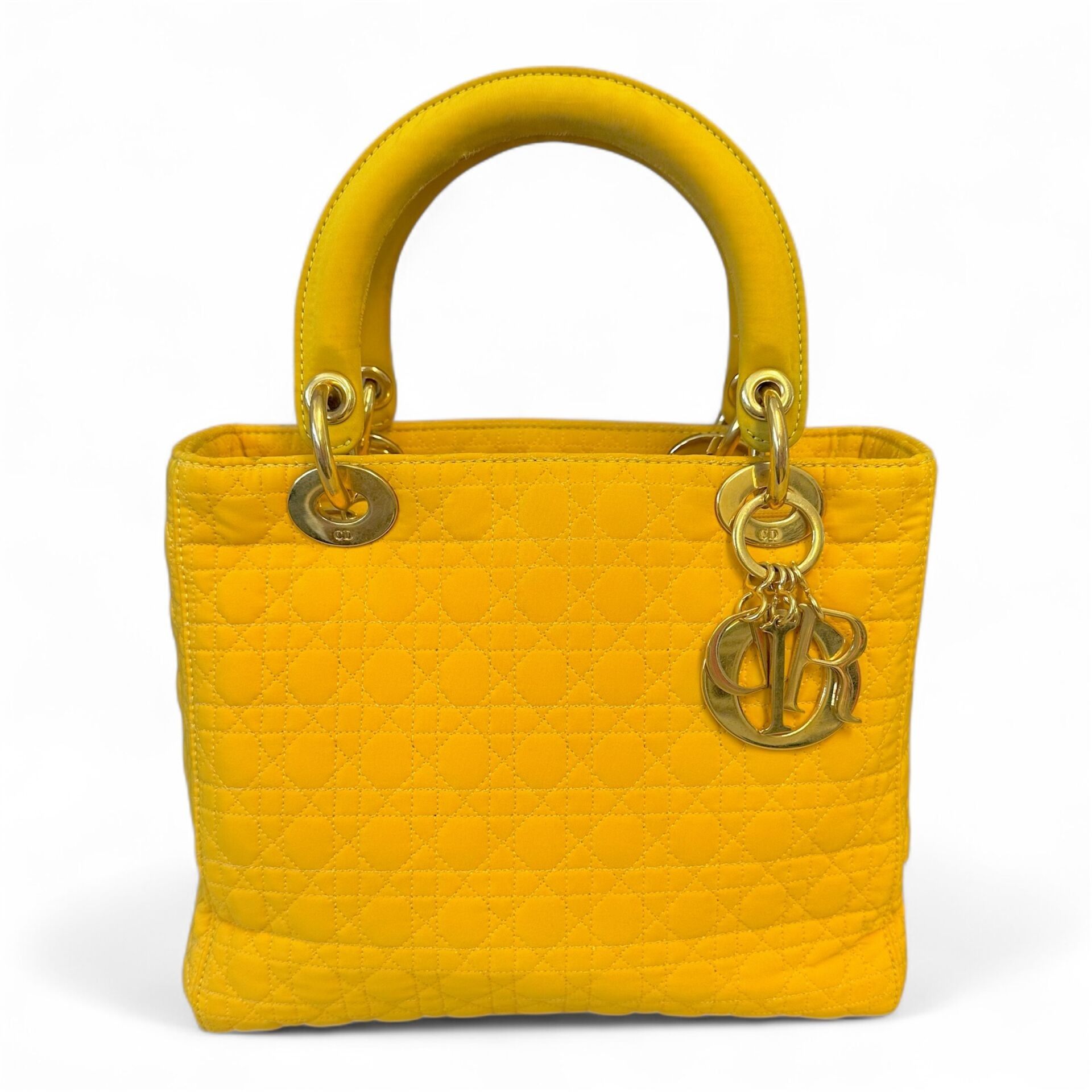DIOR, Lady Dior 24 cm yellow canvas bag with cane-style stit…