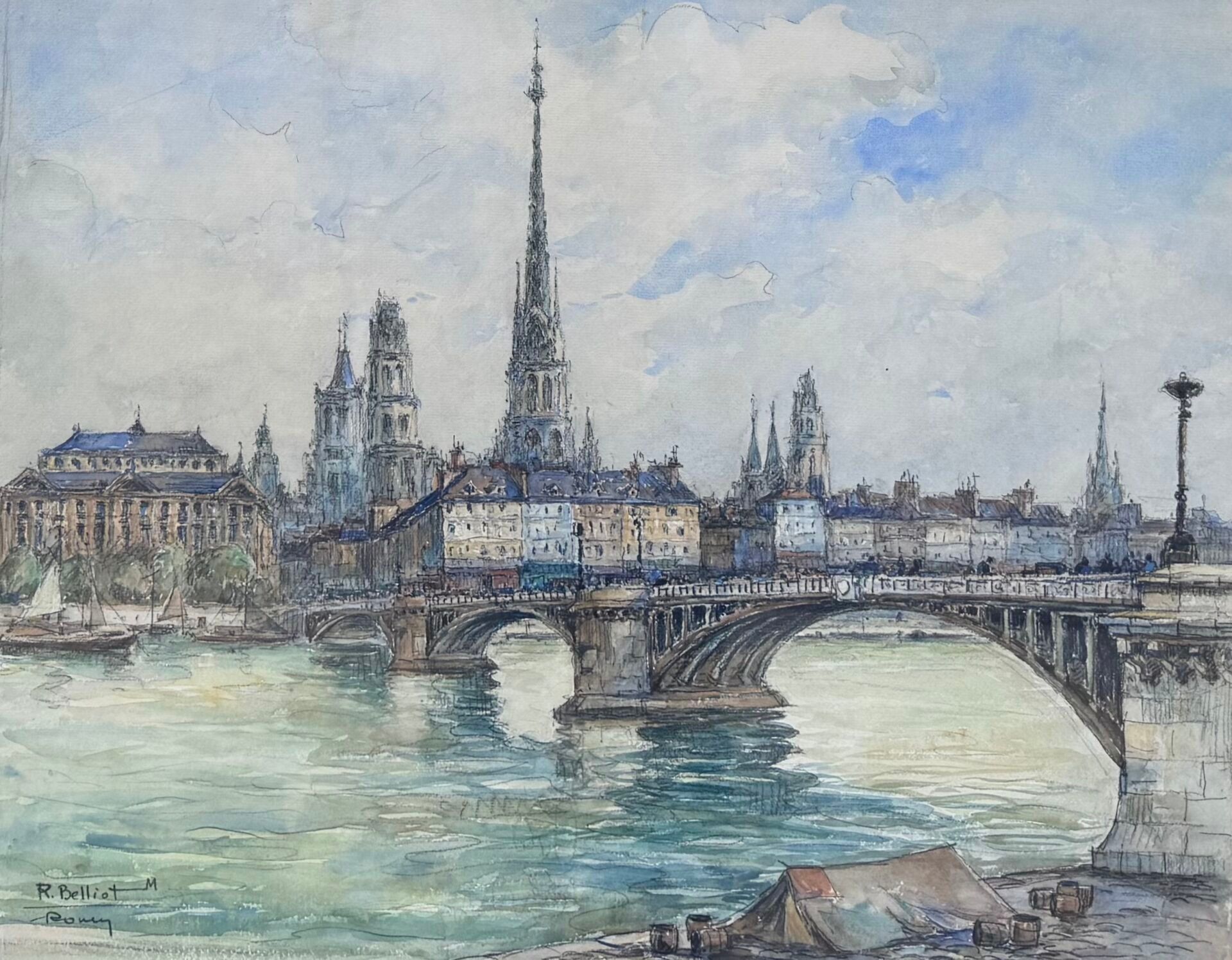 Roger BELLIOT (20th) View of Rouen.