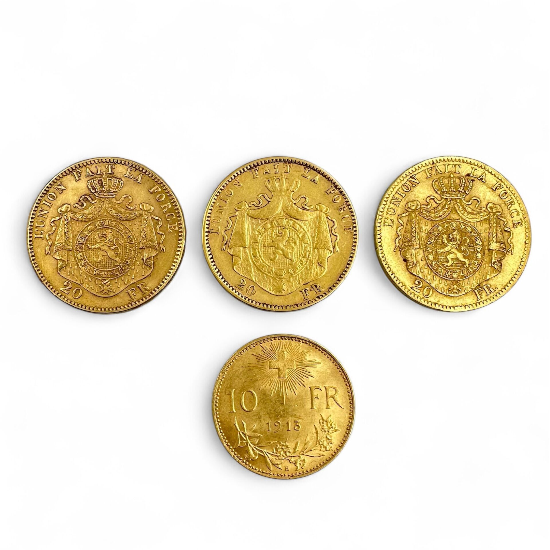 BELGIUM & SWITZERLAND Lot of gold coins including :