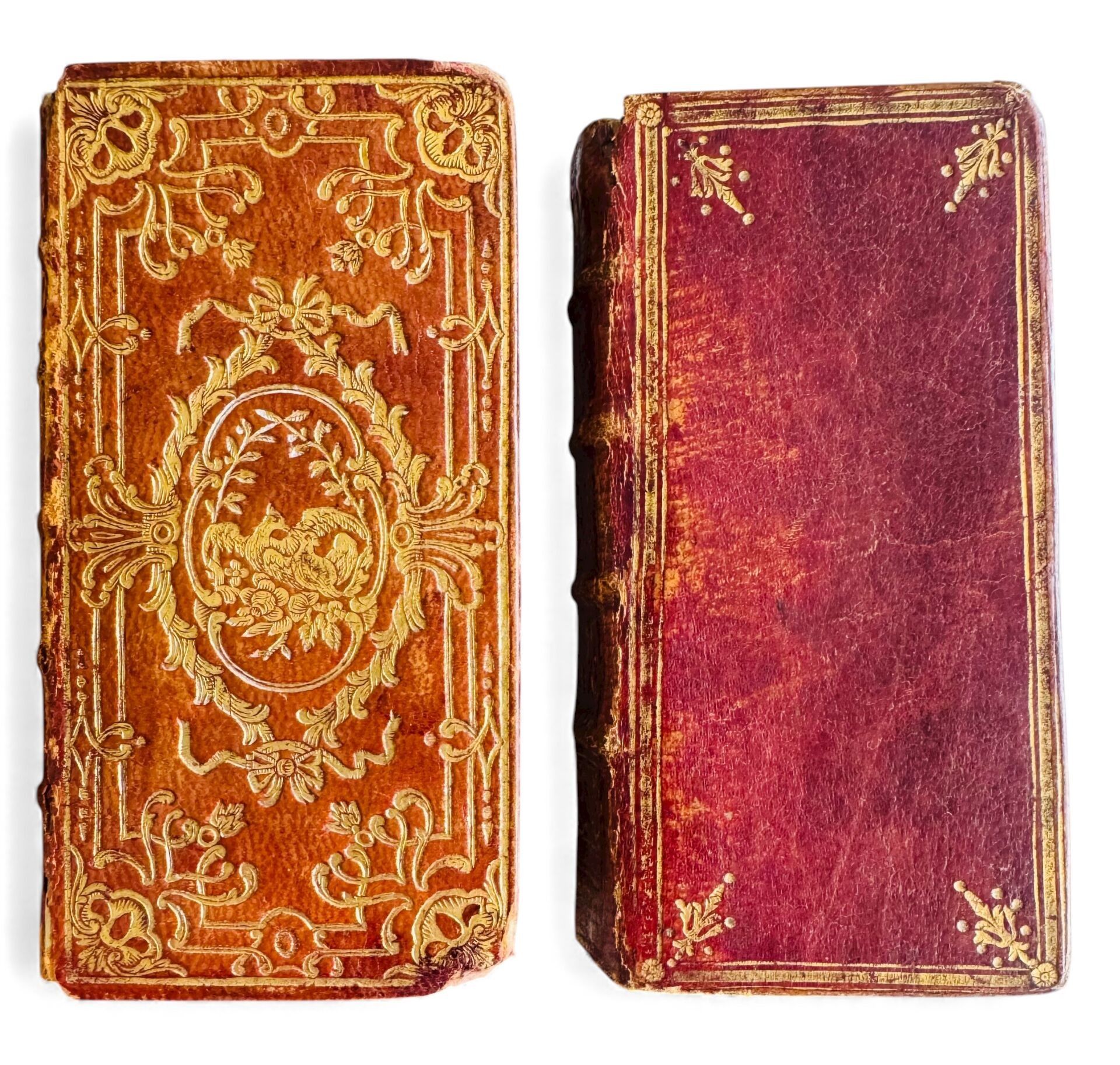 1 vol. in-16, bound in red leather, the boards decorated with gilt fillets and flowers at the corners, spine with 4 nerves with gilt decoration.