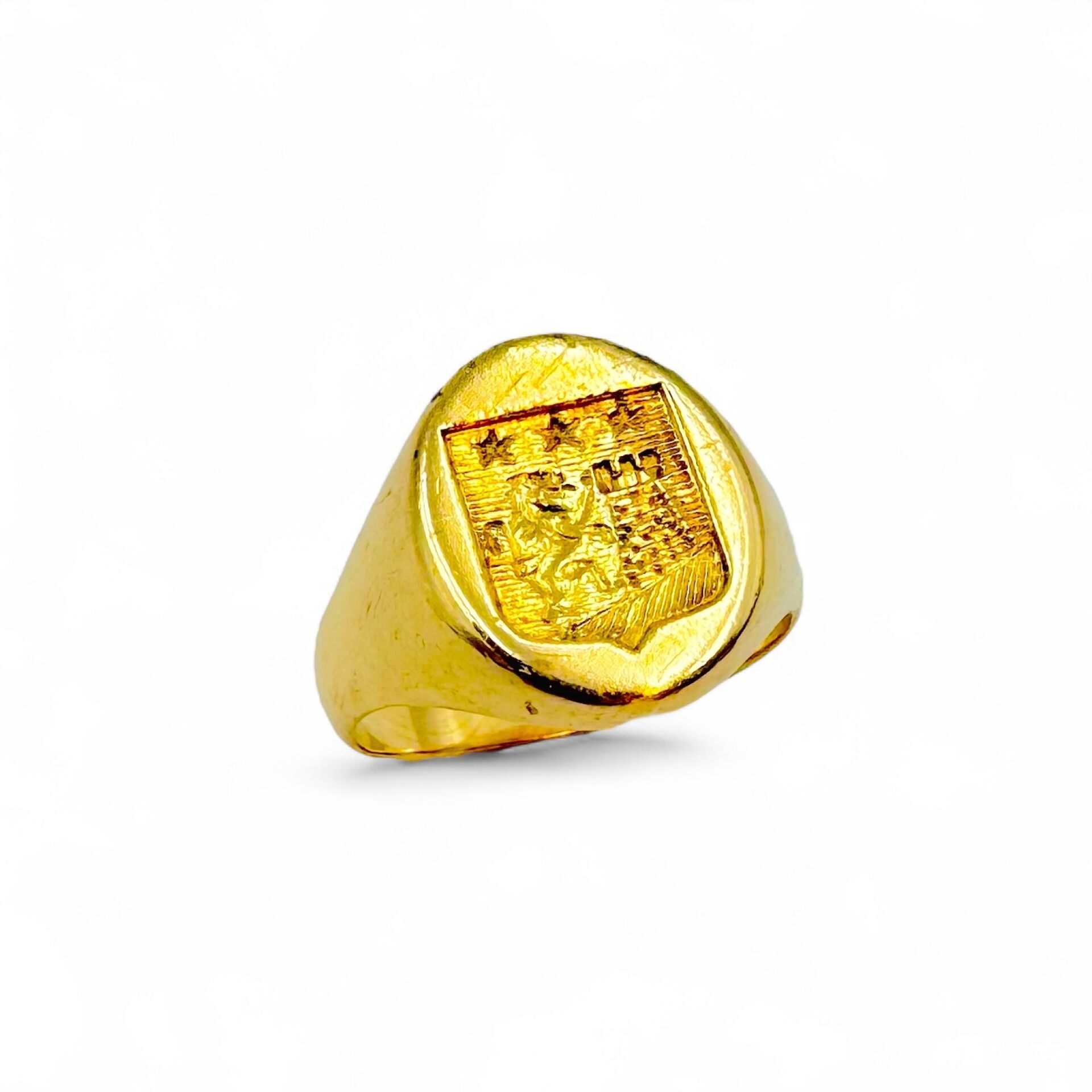 Chevalière in yellow gold (750) engraved with a coat of arms…