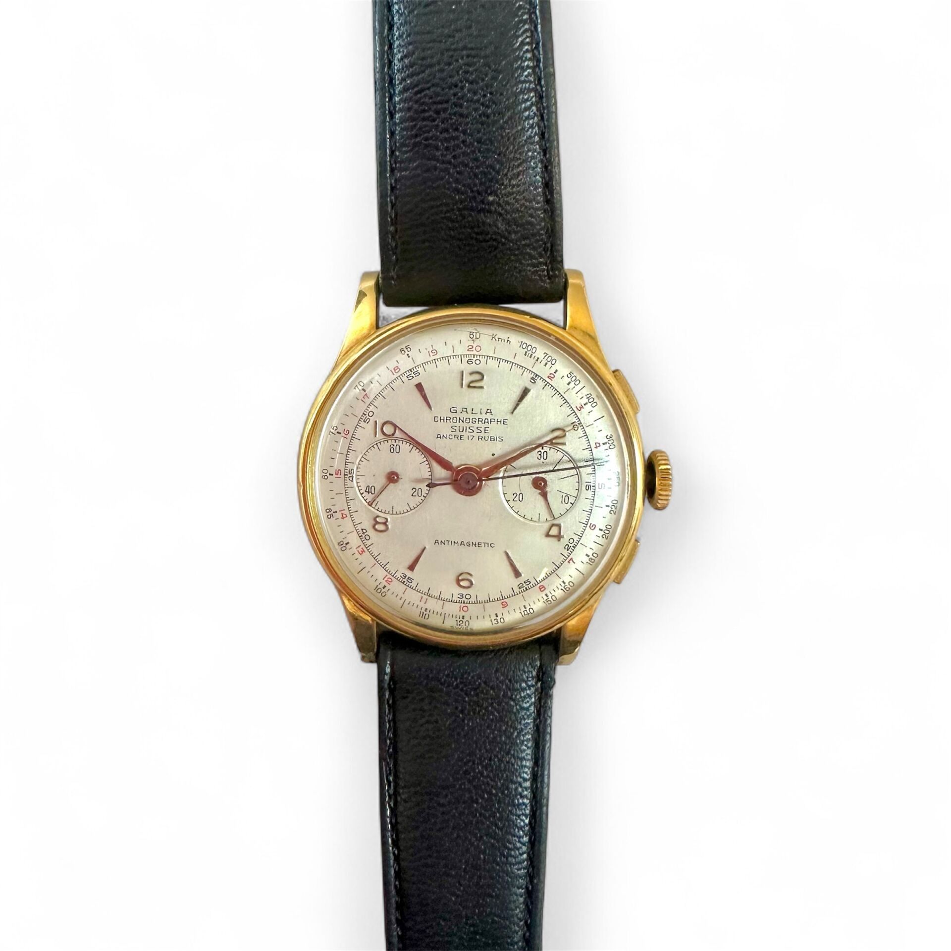 GALIA Men's wristwatch. Circular case in yellow gold (750), …