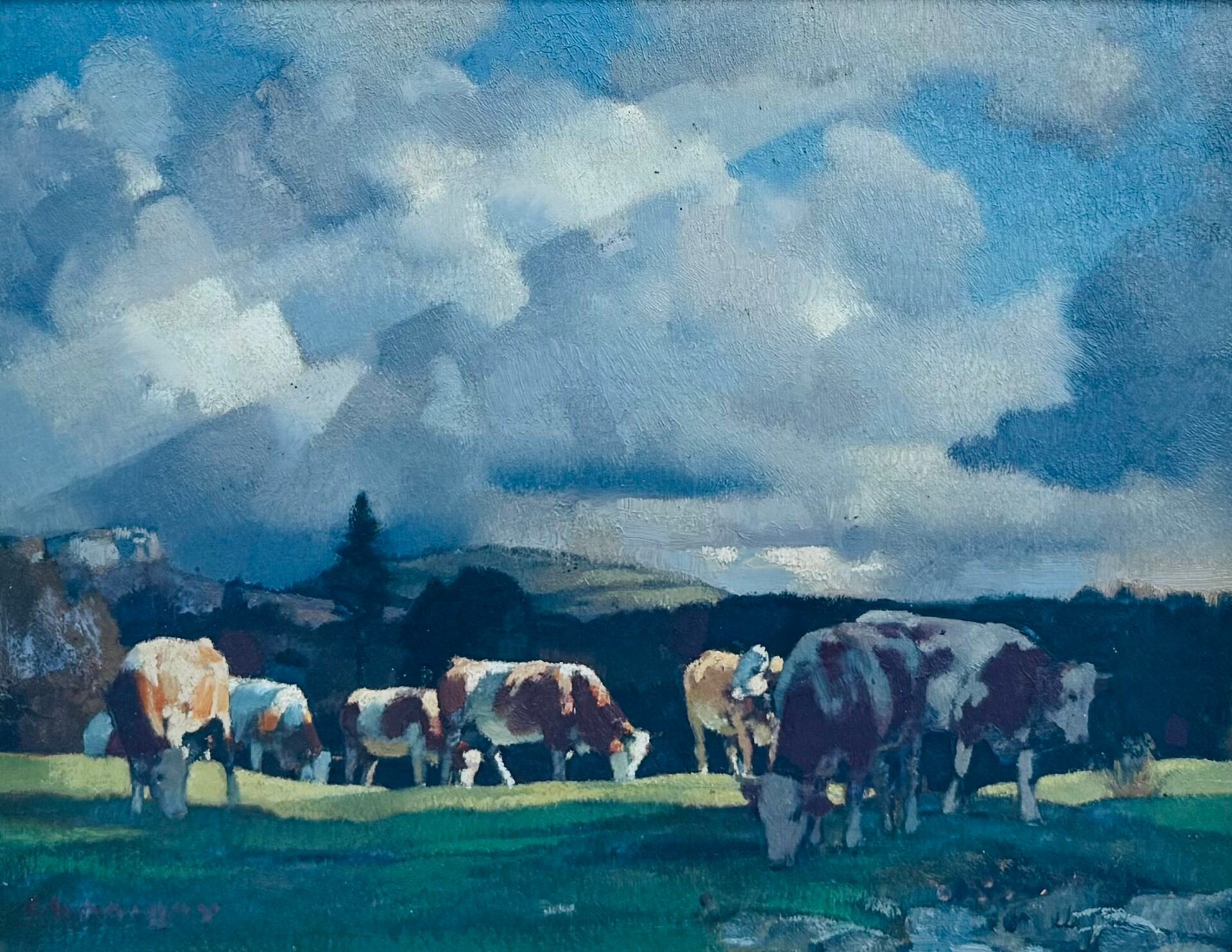 André CHARIGNY (1902-2000) "Herd in a cloudy sky".