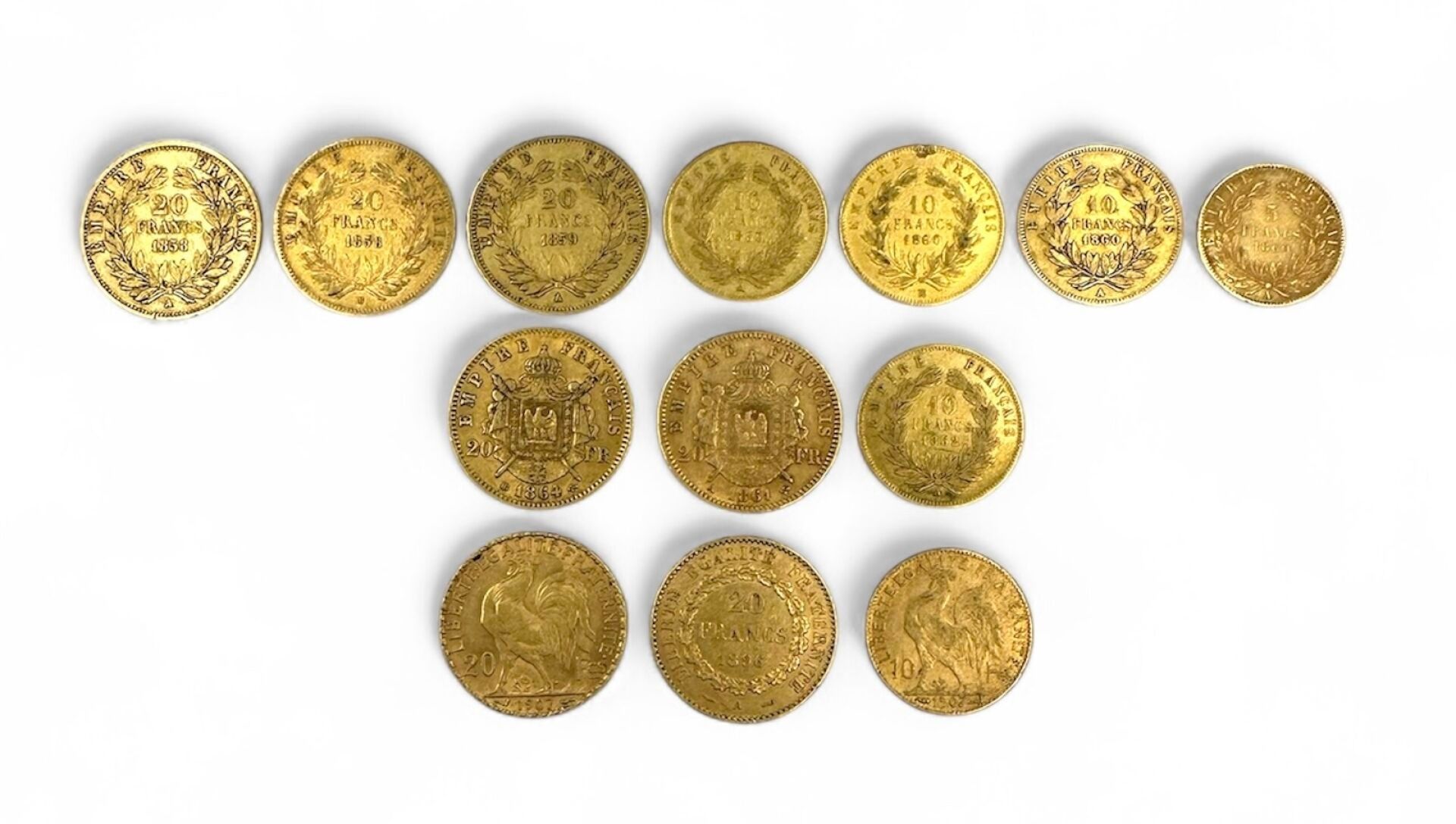 - 3 pieces of 20 francs Napoléon III "Tête nue" 1858 A, 1858 BB and 1859 A.