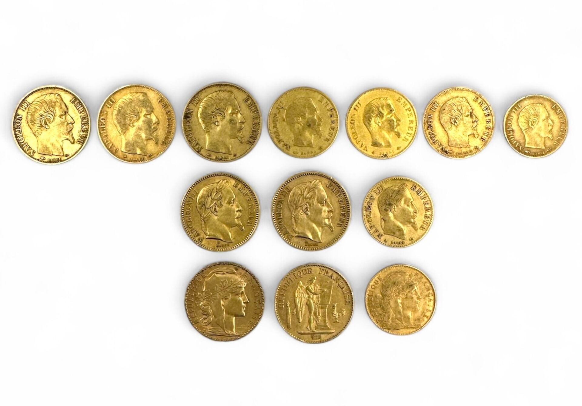 - 3 pieces of 10 francs Napoléon III "Tête nue" 1860 A (x2) and 1860 BB.