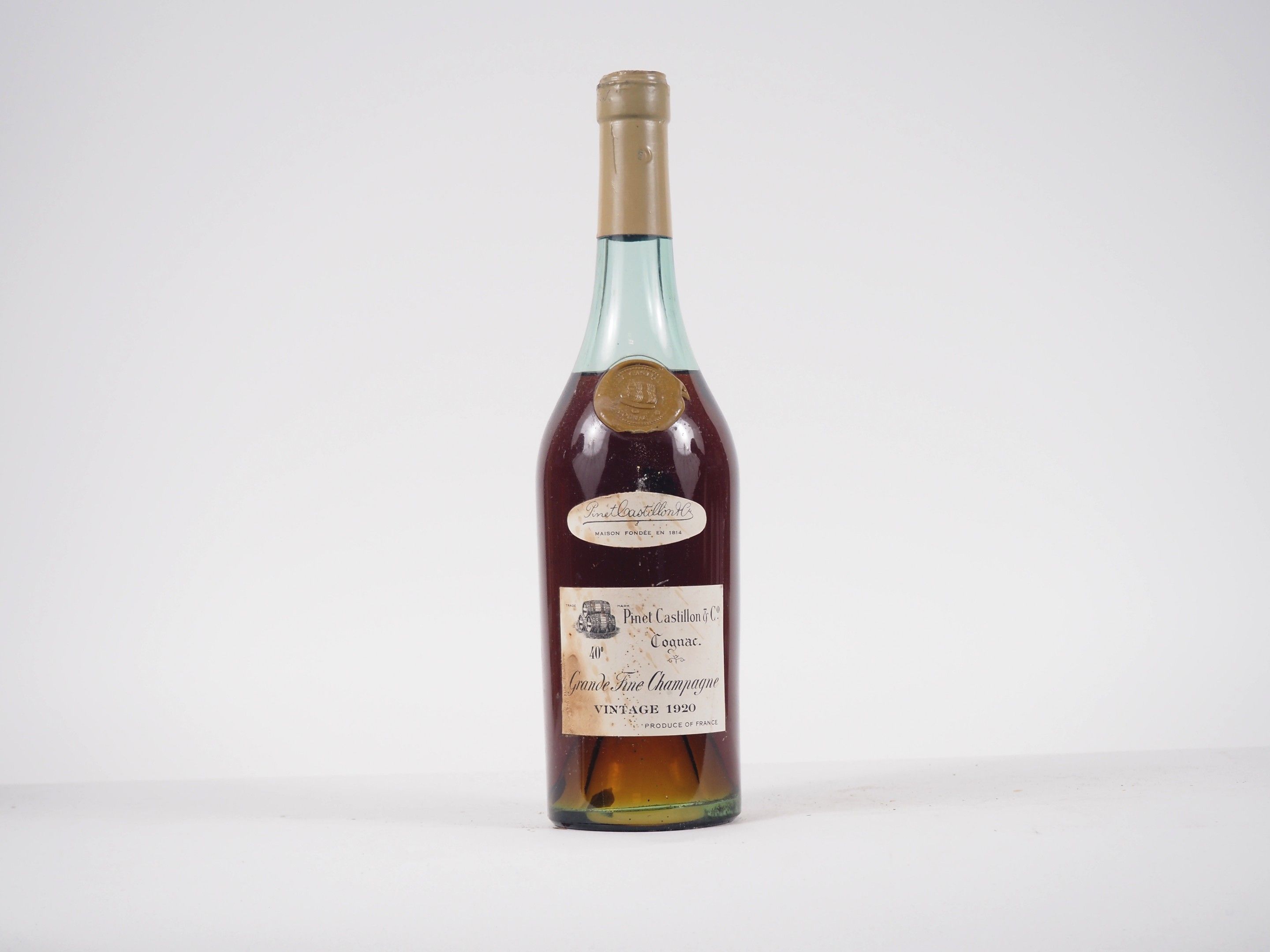 1 BOTTLE COGNAC PINET CASTILLON & C° GRANDE FINE VINTAGE CHAMPAGNE 1920 - AND