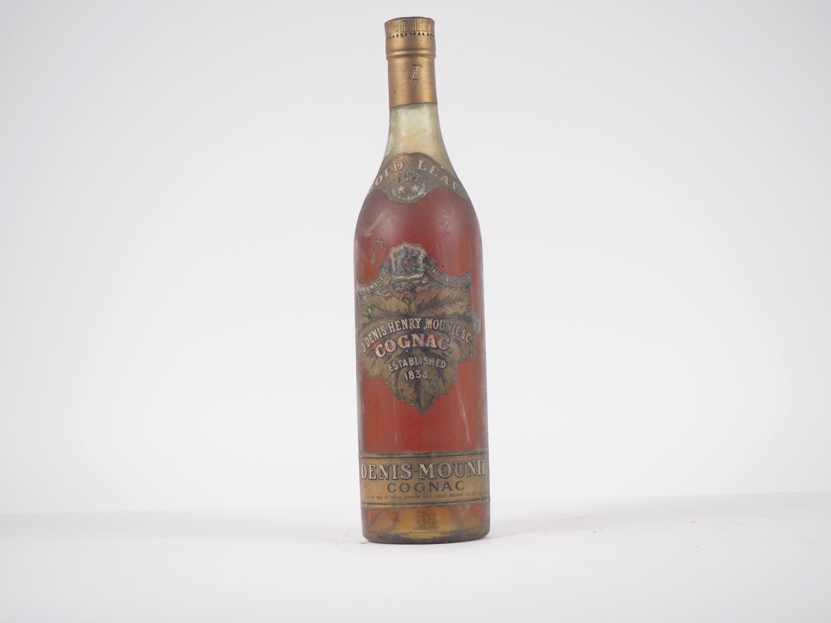 1 OLD BOTTLE COGNAC DENIS MOUNIÉ - BS/HANDWRITTEN NOTE ON THE LABEL