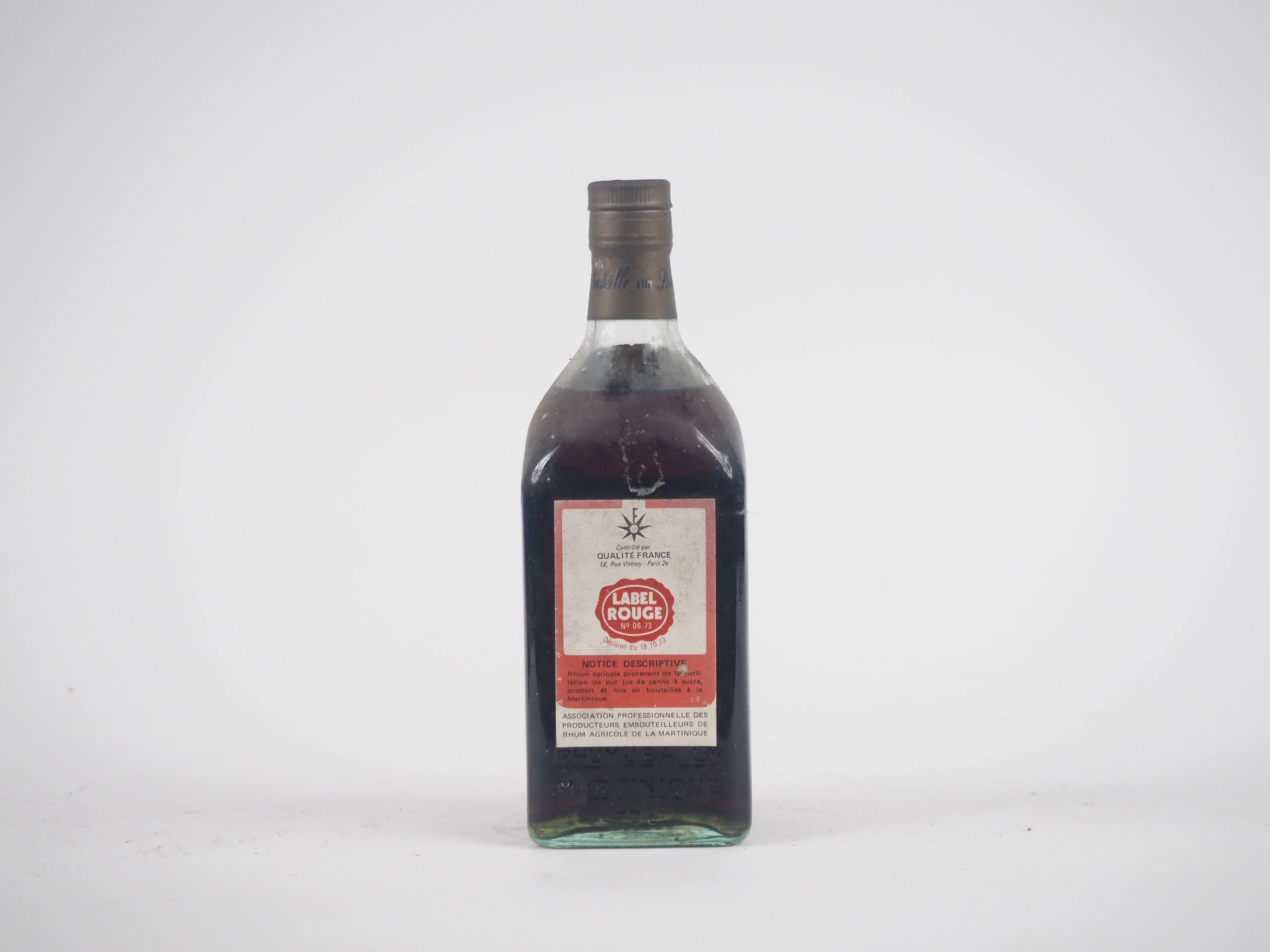 1 BOTTLE RHUM J.BALLY 70 cl - 45 % - 1970 - SALE LABEL AND COLLERETTE