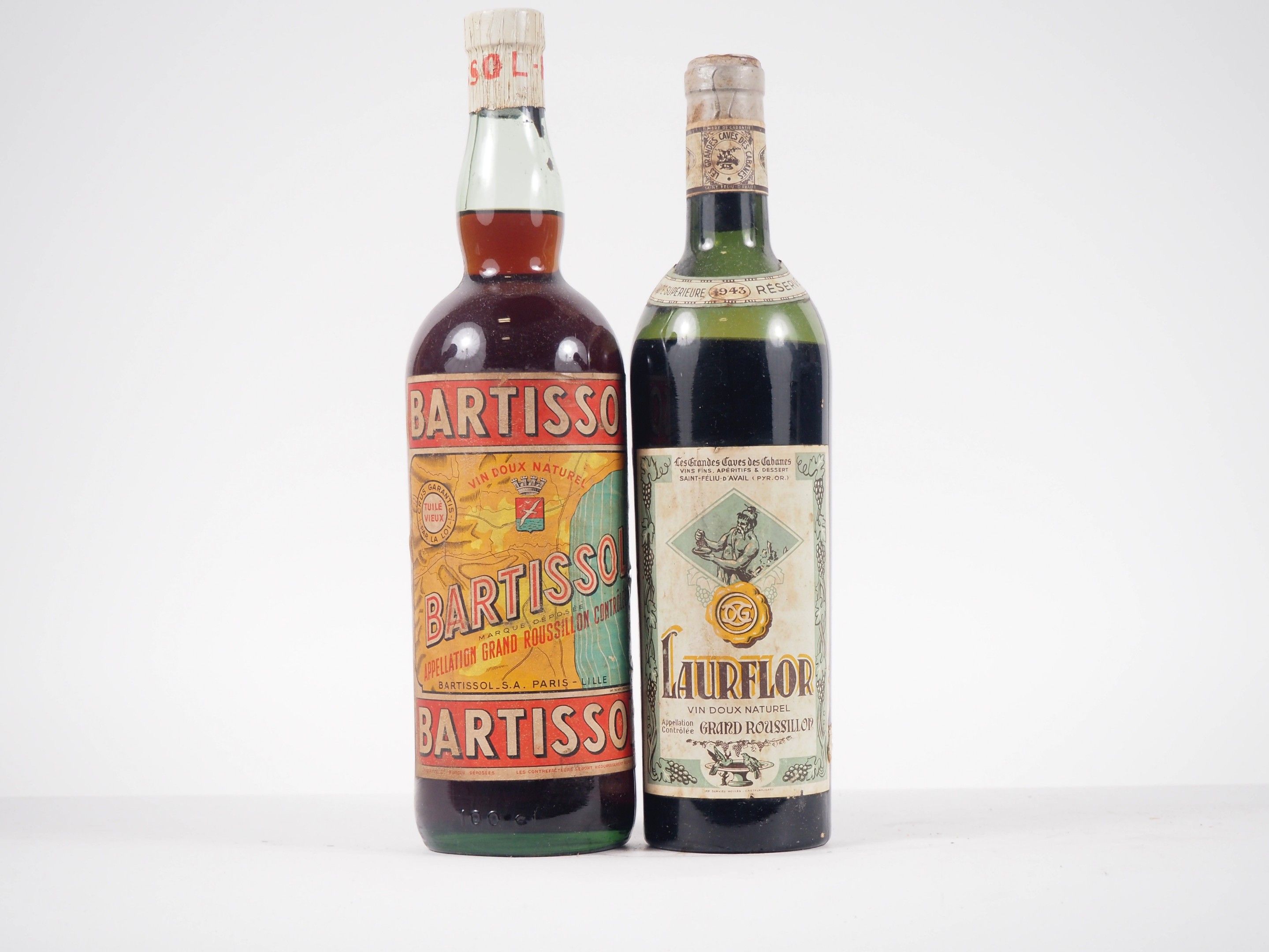2 BOTTLES: 1 BARTISSOL GRAND ROUSSILLON/1 LAURFLOR GRAND ROUSSILLON - 1943 - LOW LEVEL