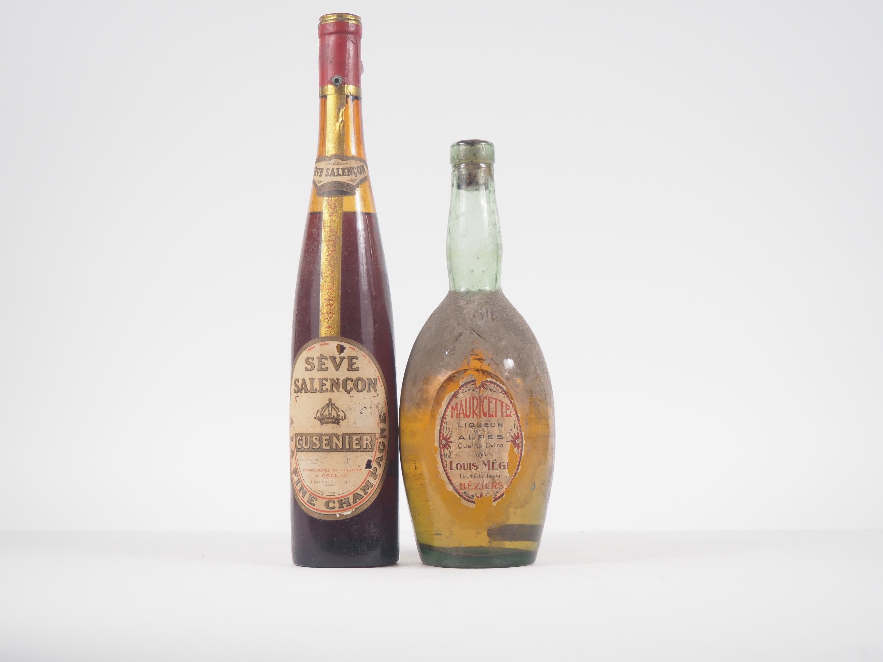 2 BOTTLES: 1 SÈVE SALENÇON CUSENIER/1 LIQUEUR DES ALPES MAURICETTE