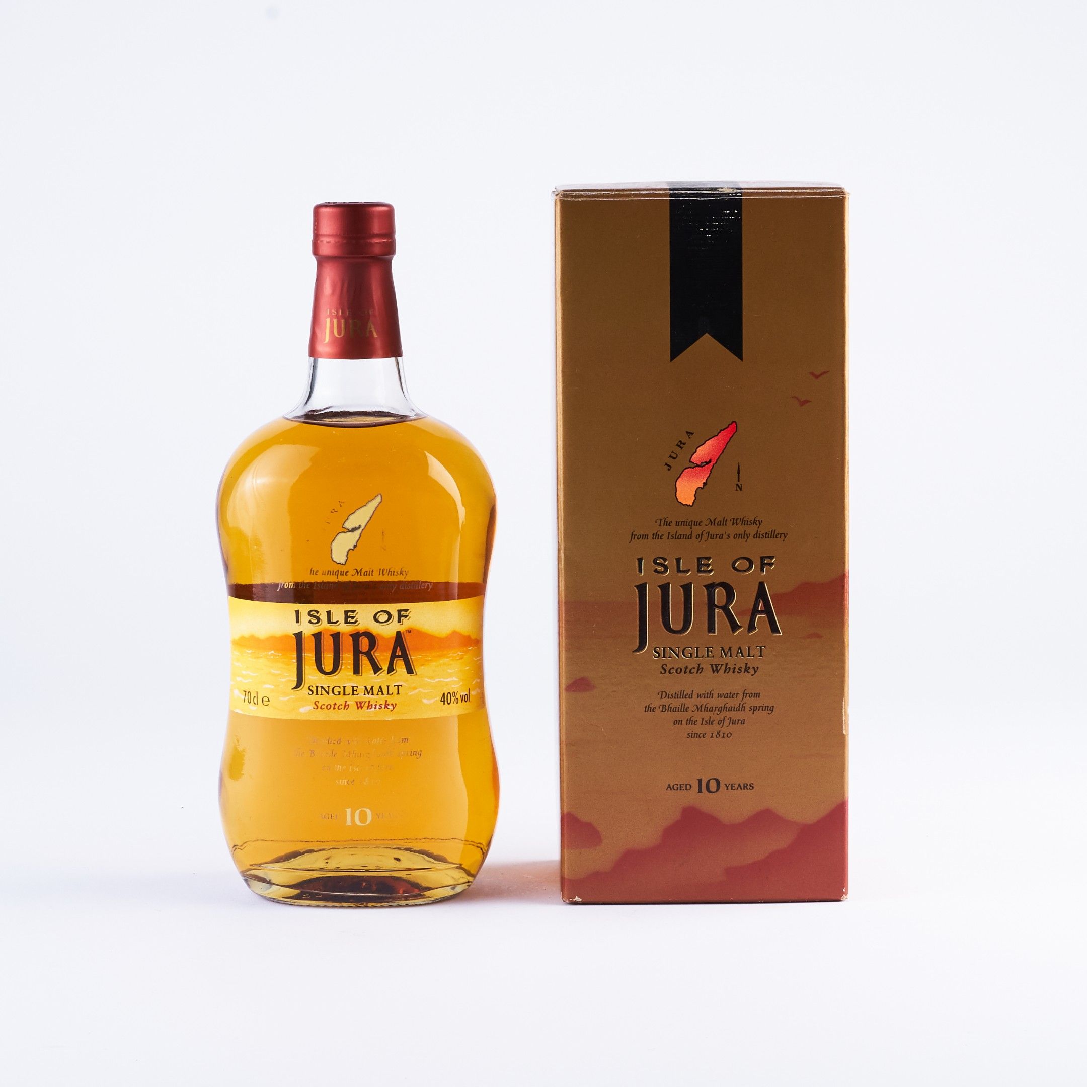 1 bottle SCOTCH WHISKY "Single Malt", Isle of Jura 10 years (case). Level: in line with normal evolution. Label: good condition. Expert: Mr Aymeric de Clouet.