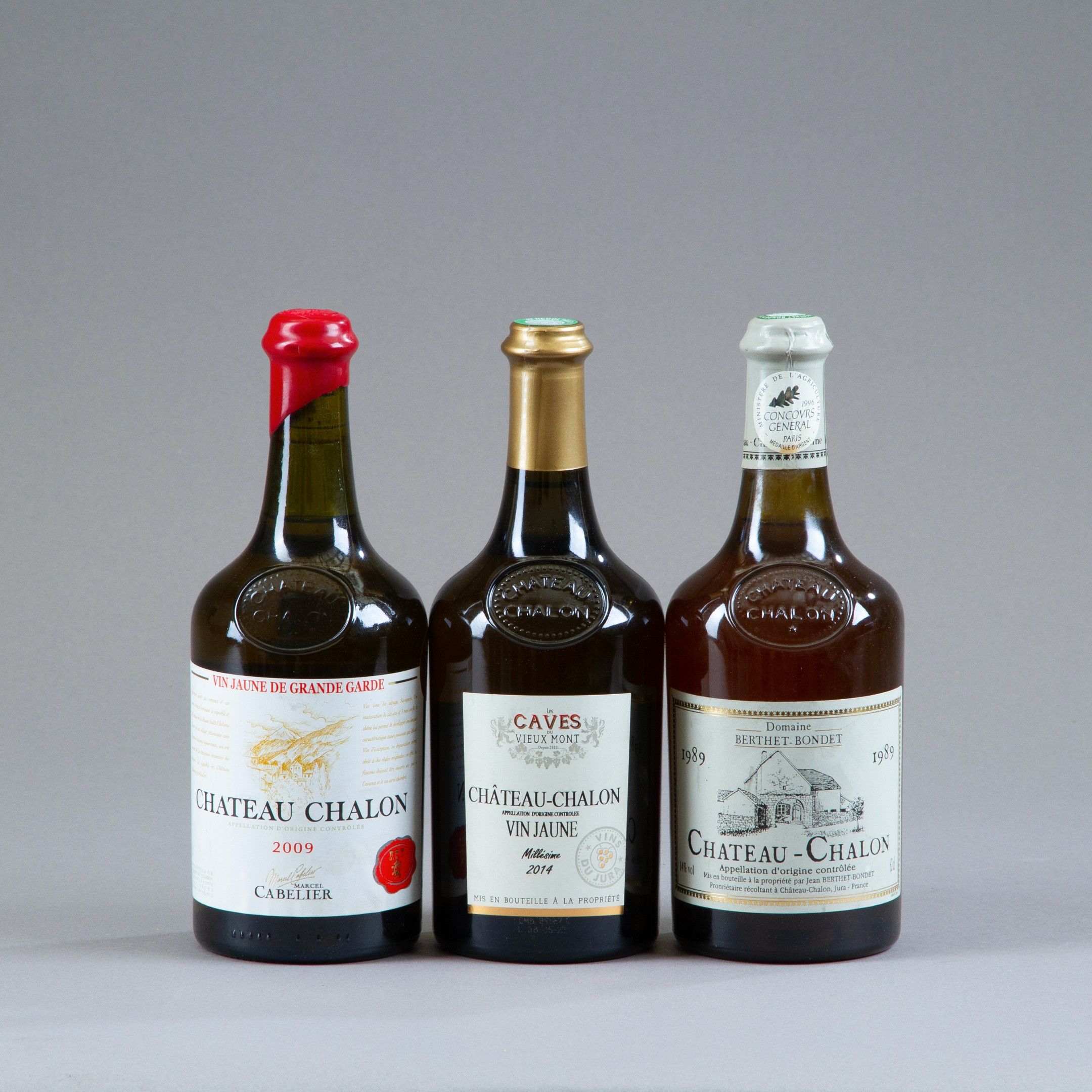 3 bottles VIN JAUNE DIVERS (1 Cabelier 2009, 1 Berthet Bondet 1989, 1 Les Caves Vieux Mont 2014).