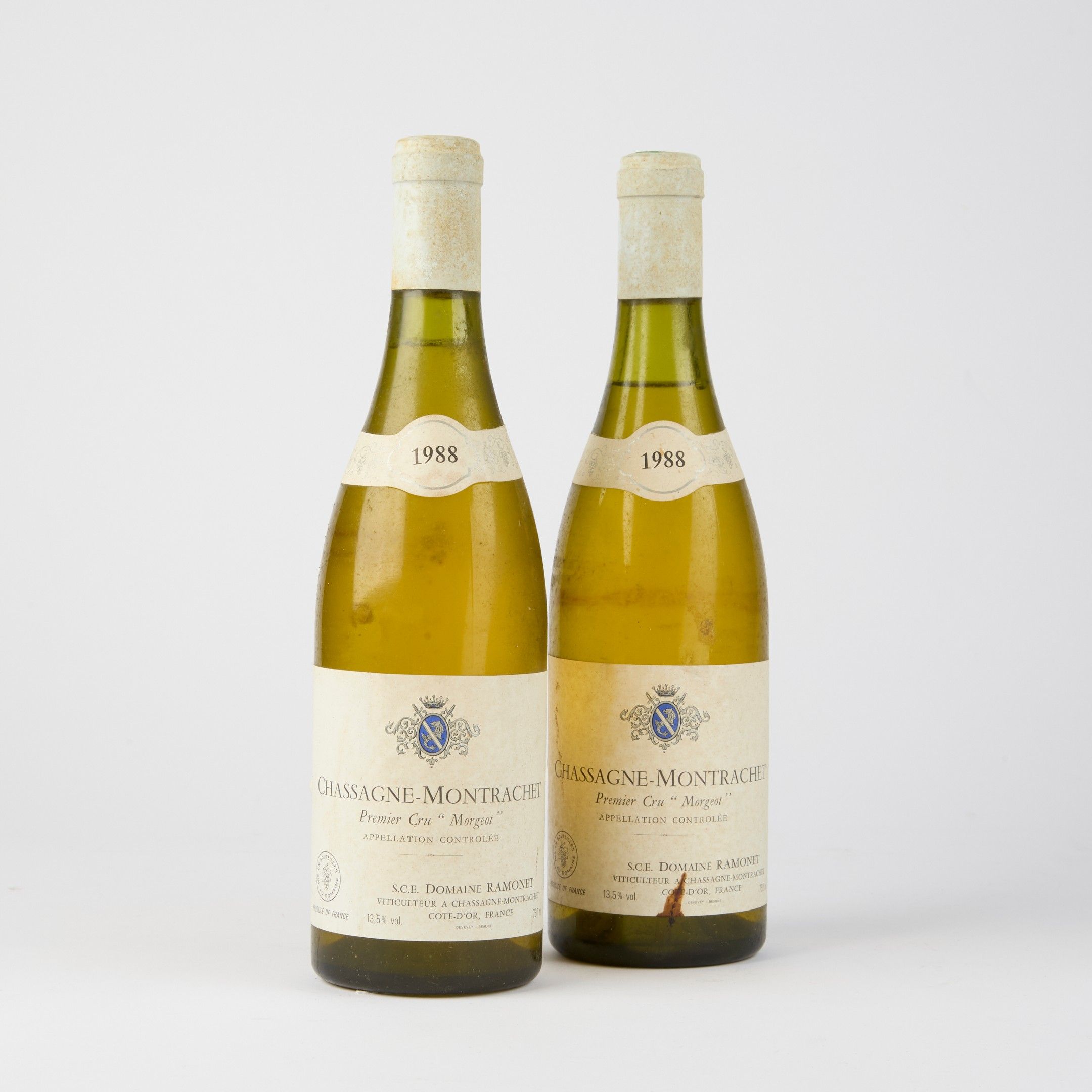 2 bottles CHASSAGNE-MONTRACHET "Morgeot 1er cru", Domaine Ramonet 1988.