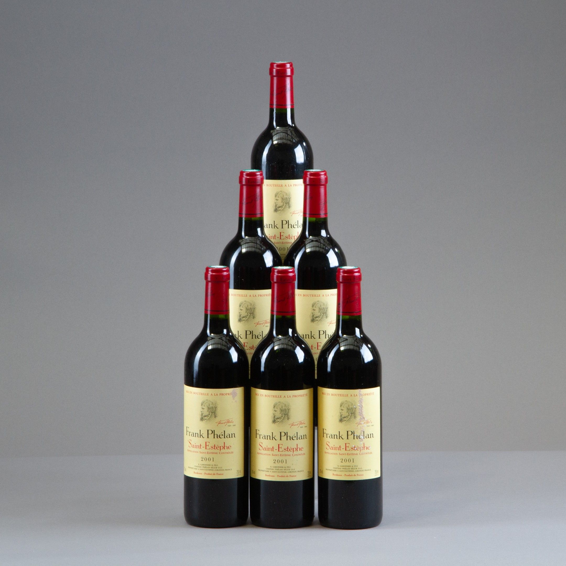 6 bottles FRANCK PHÉLAN, Saint-Estèphe 2001 original wooden …
