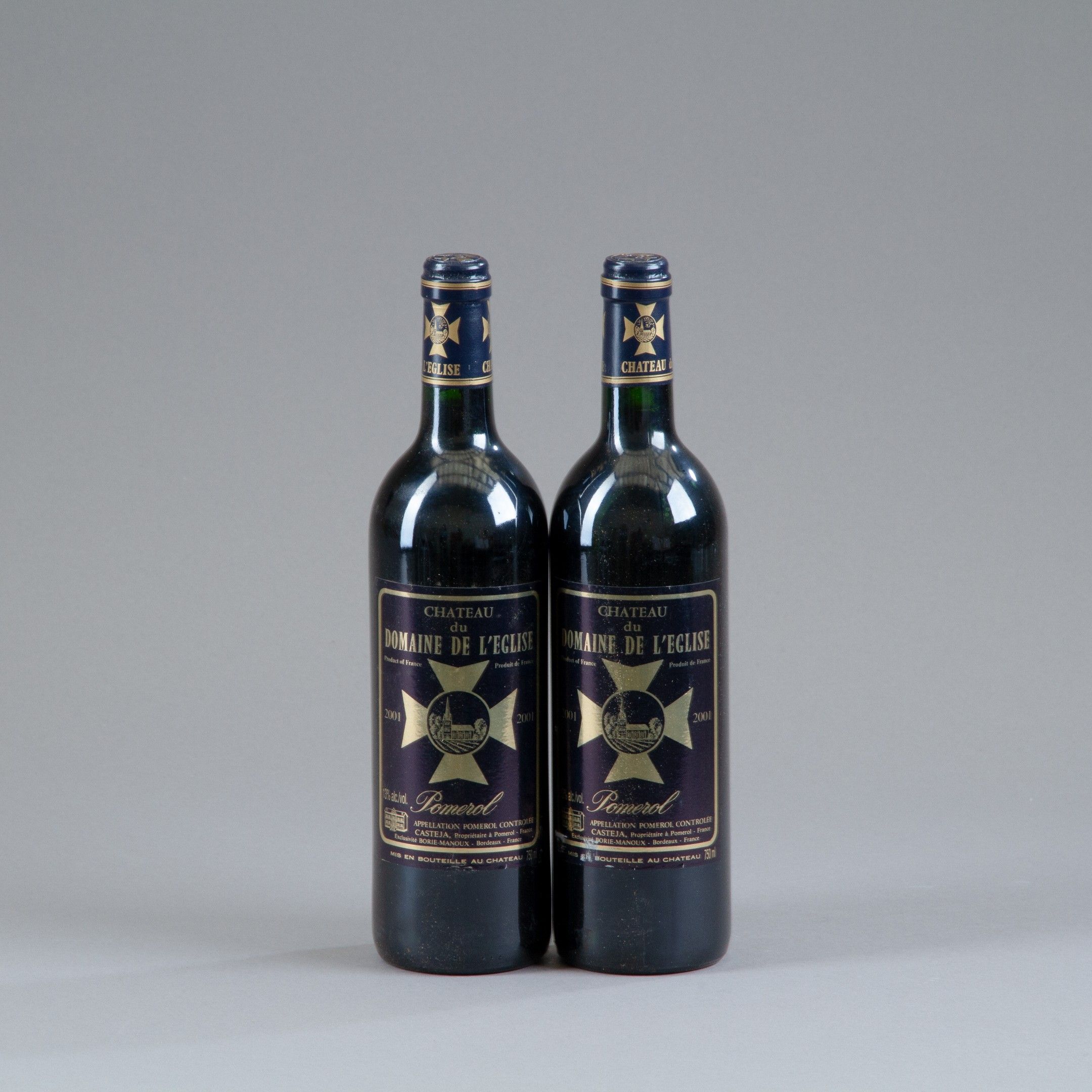 2 bottles Château DU DOMAINE DE L'ÉGLISE, Pomerol 2001.