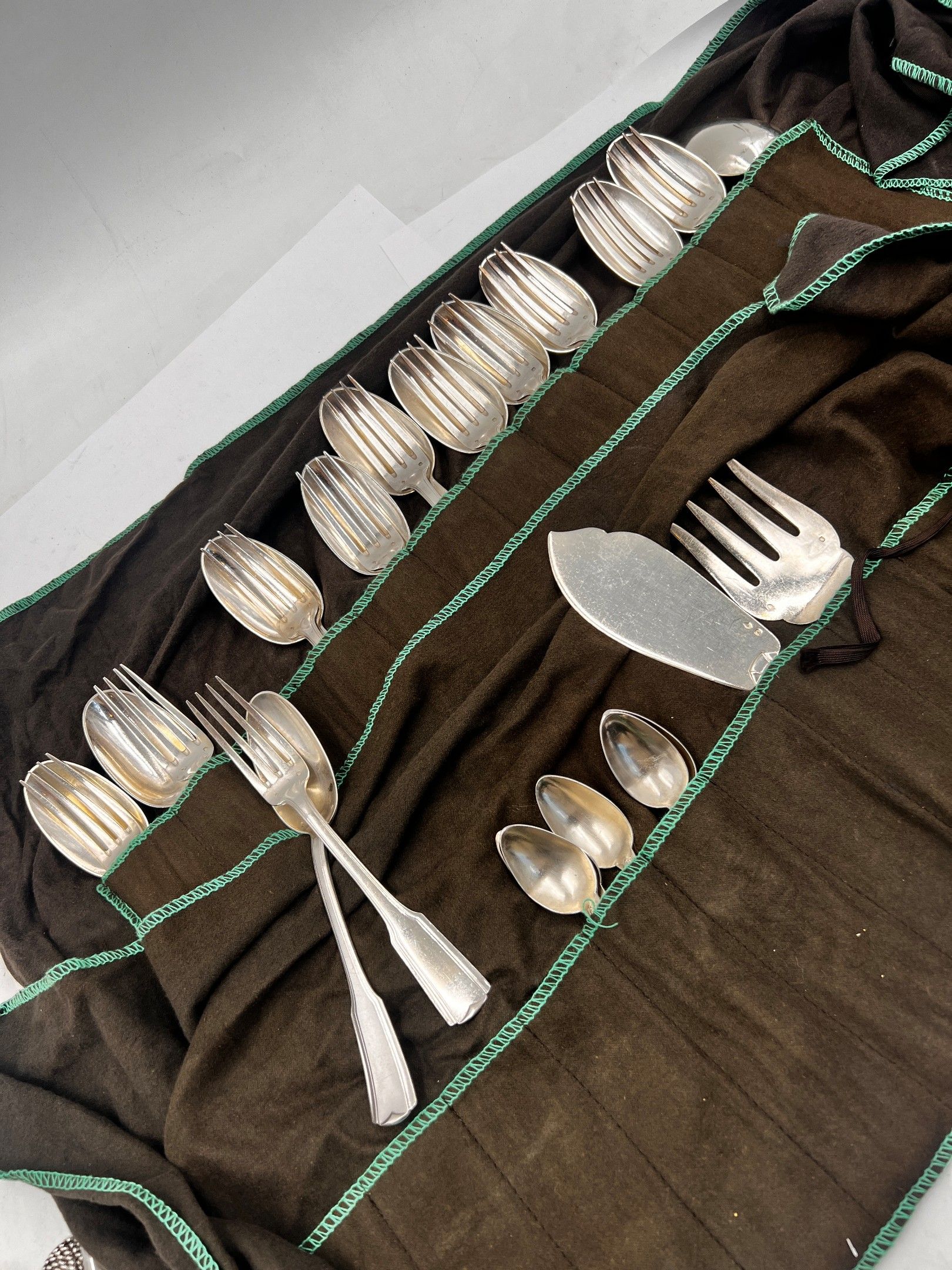 Reunion of 11 pieces of silver cutlery, one spoon and one serving piece monogrammed NM.