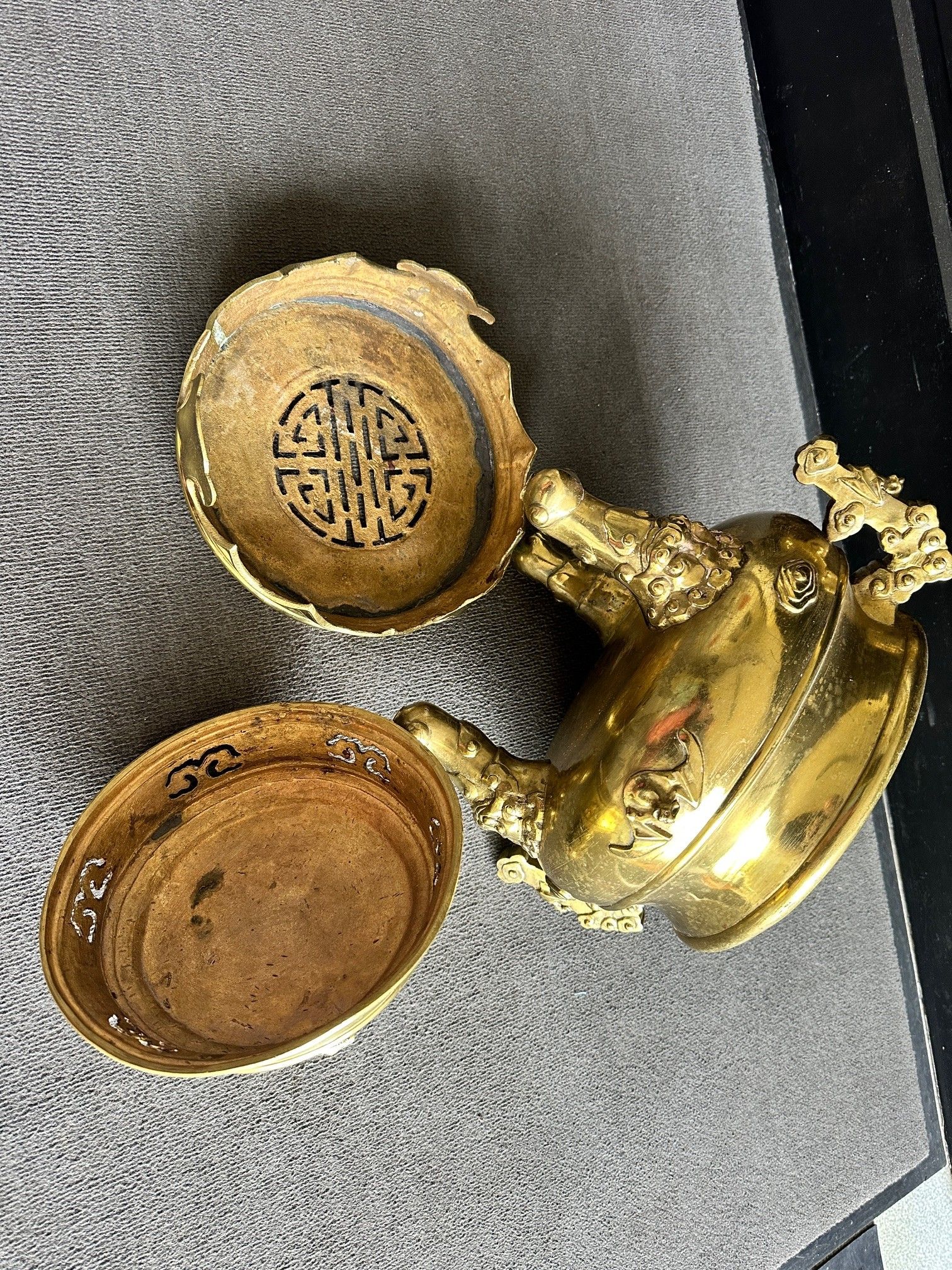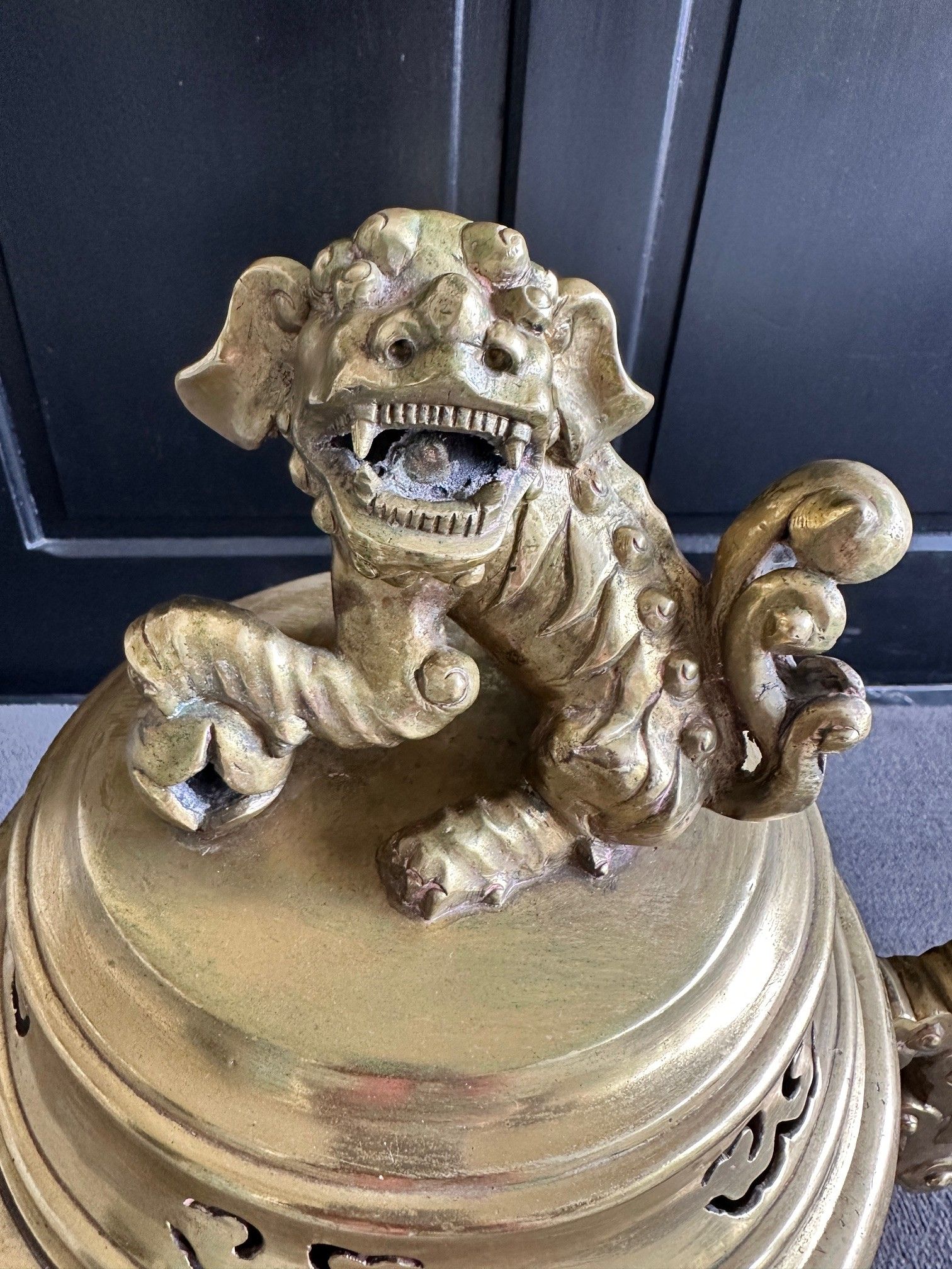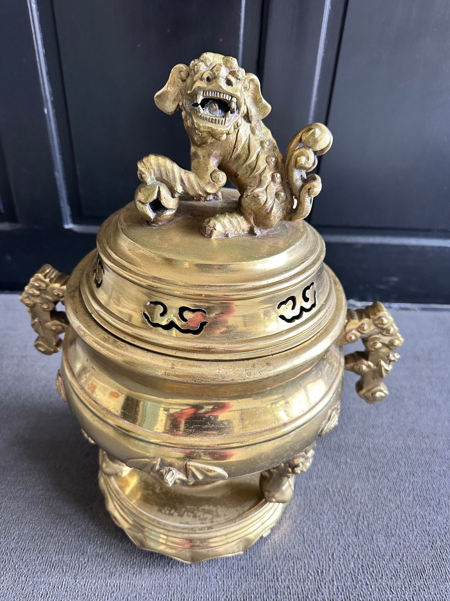 CHINESE bronze perfume burner - relief decoration of a Fo do…