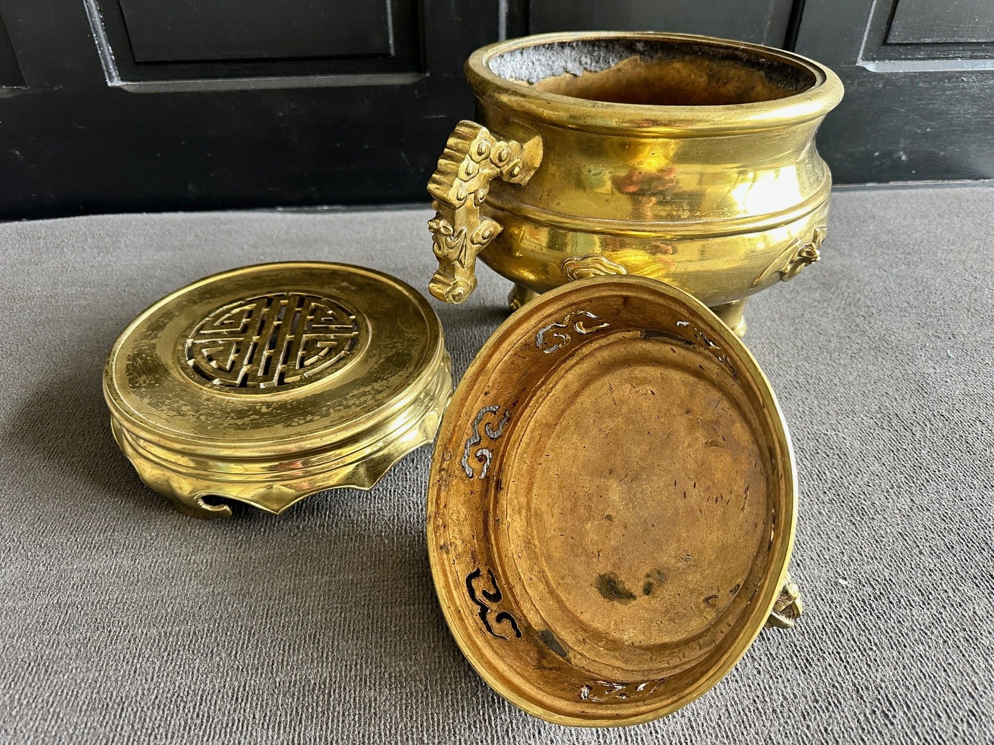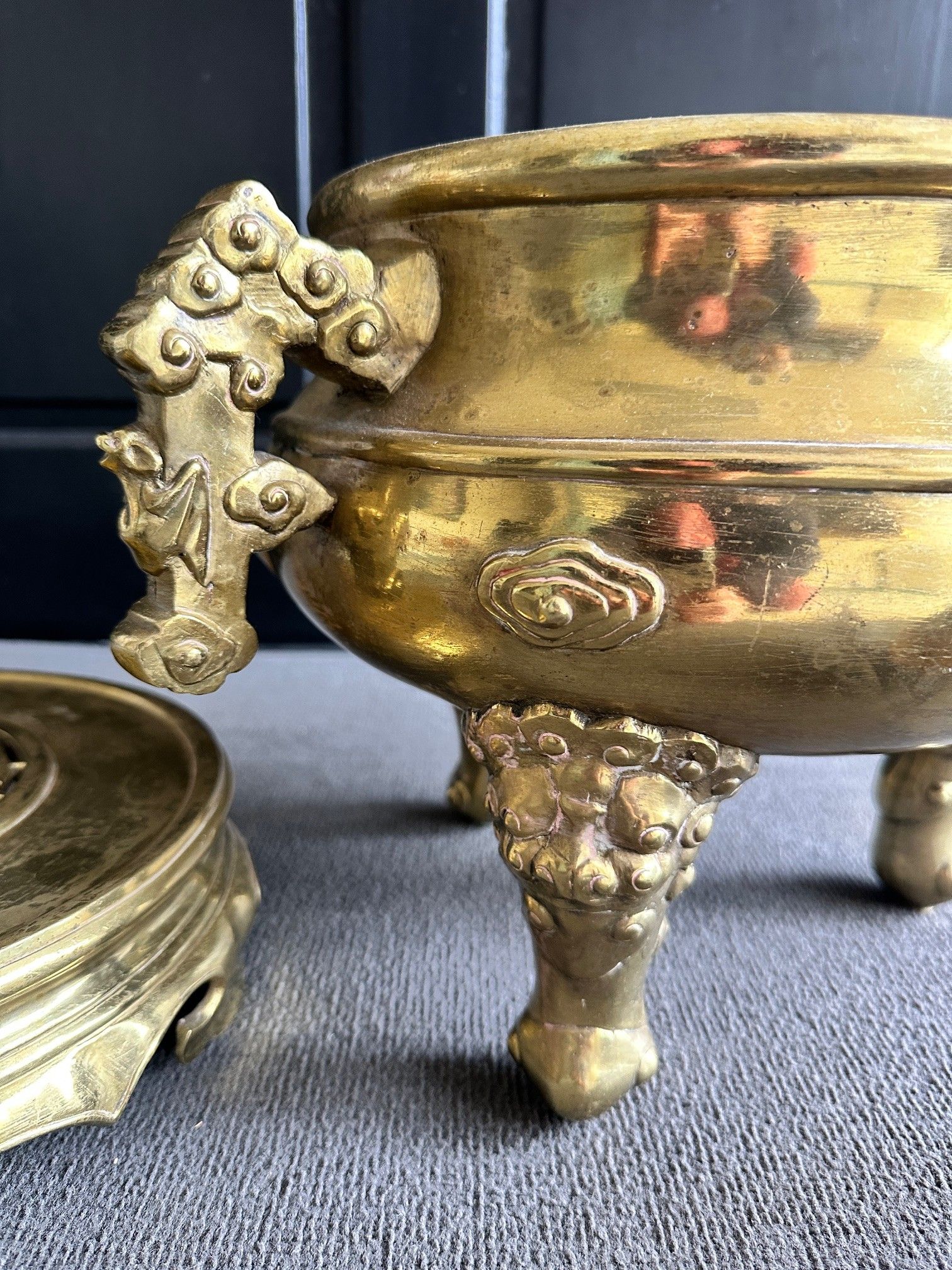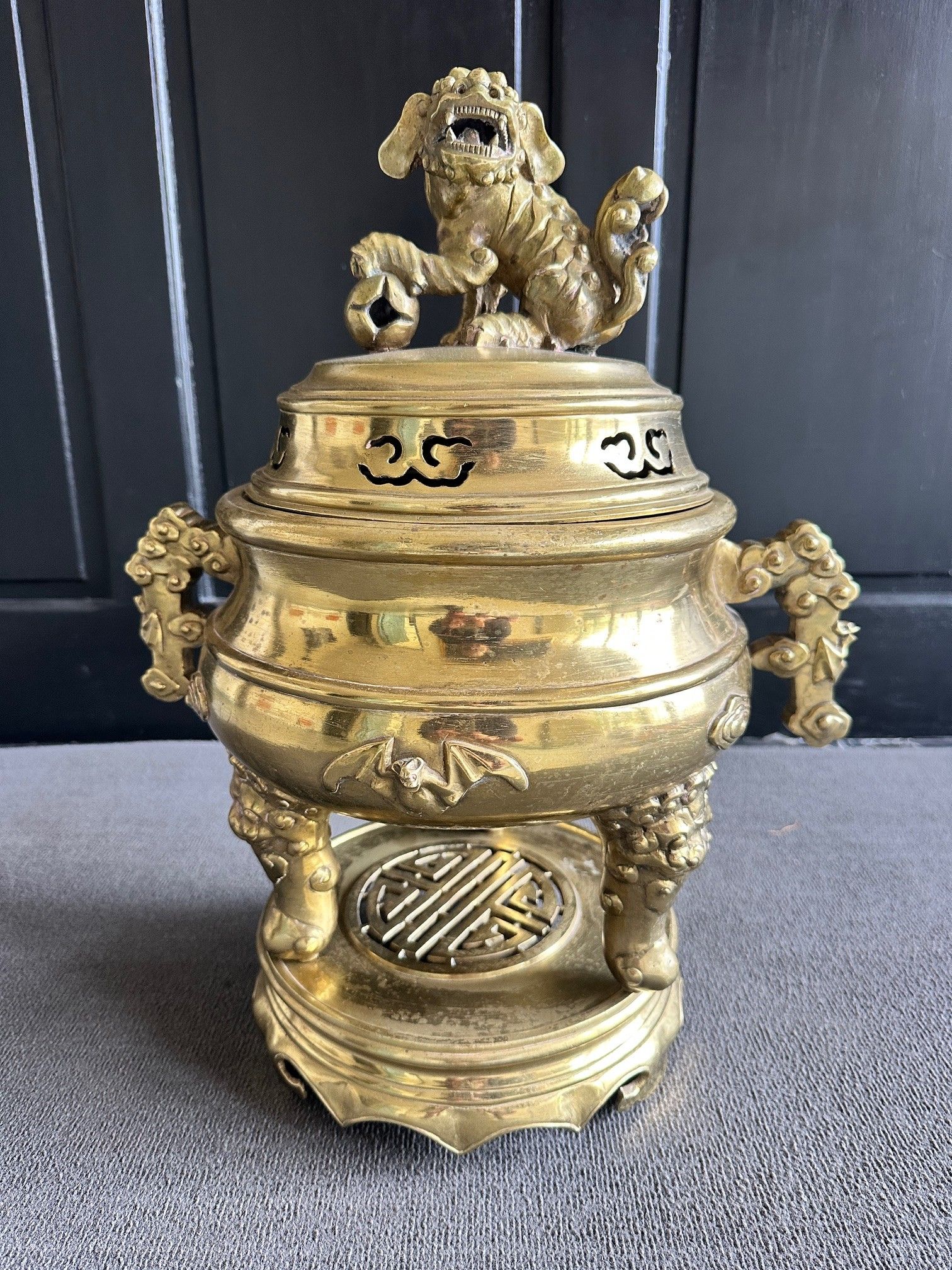 CHINESE bronze perfume burner - relief decoration of a Fo do…