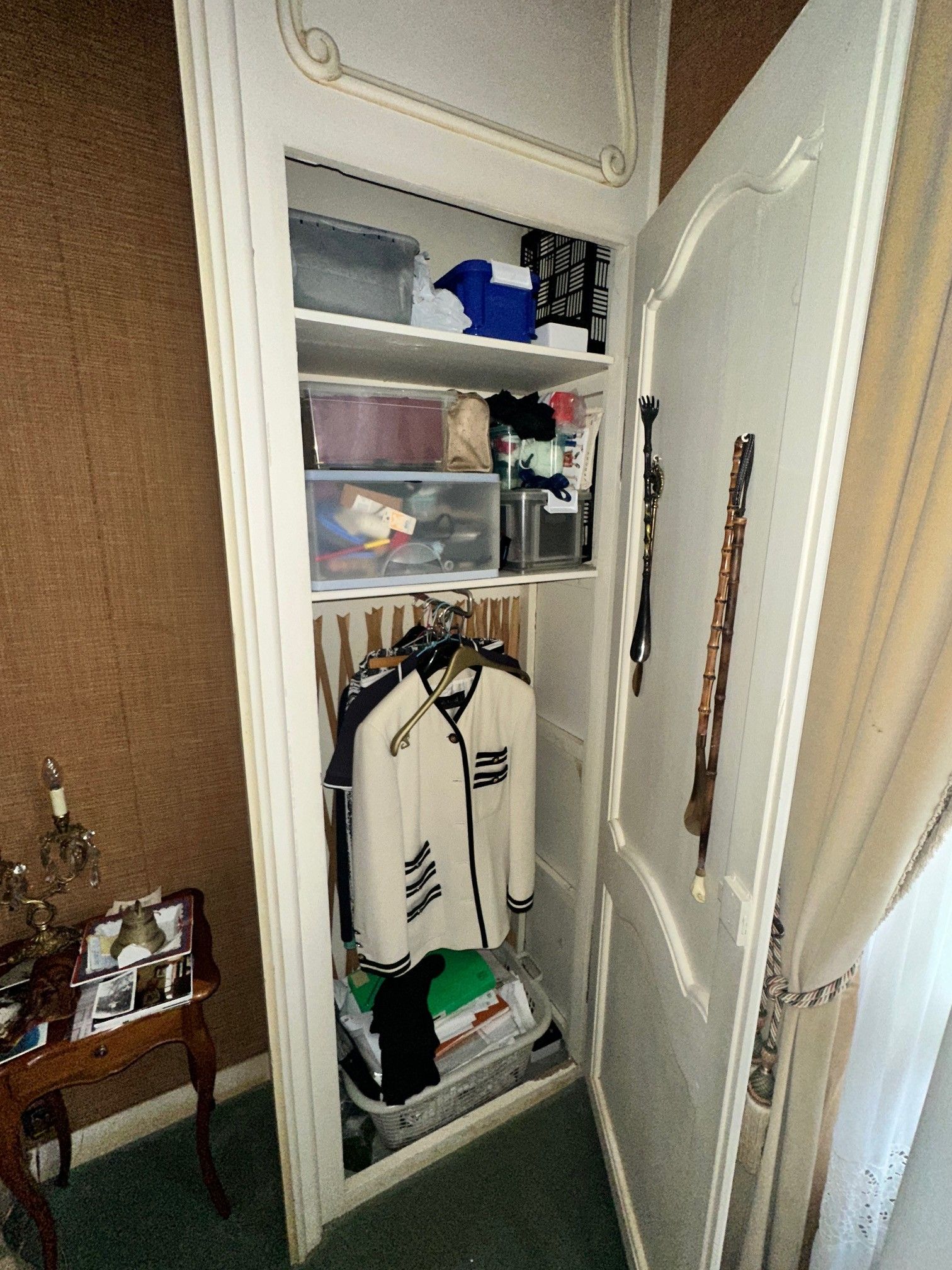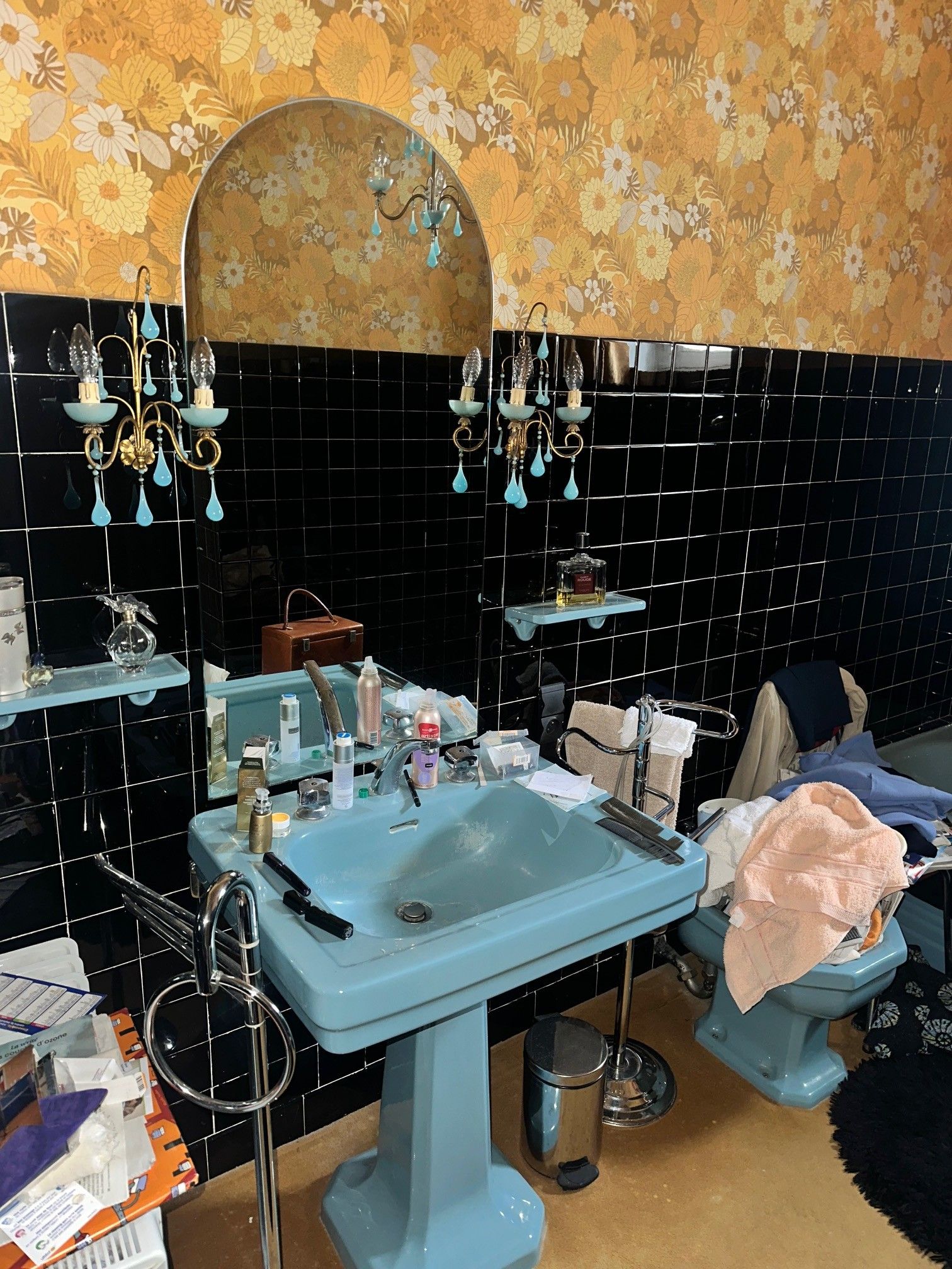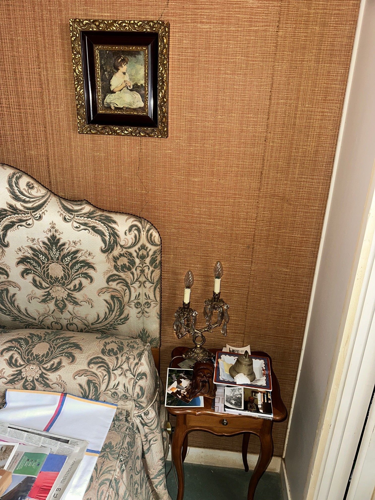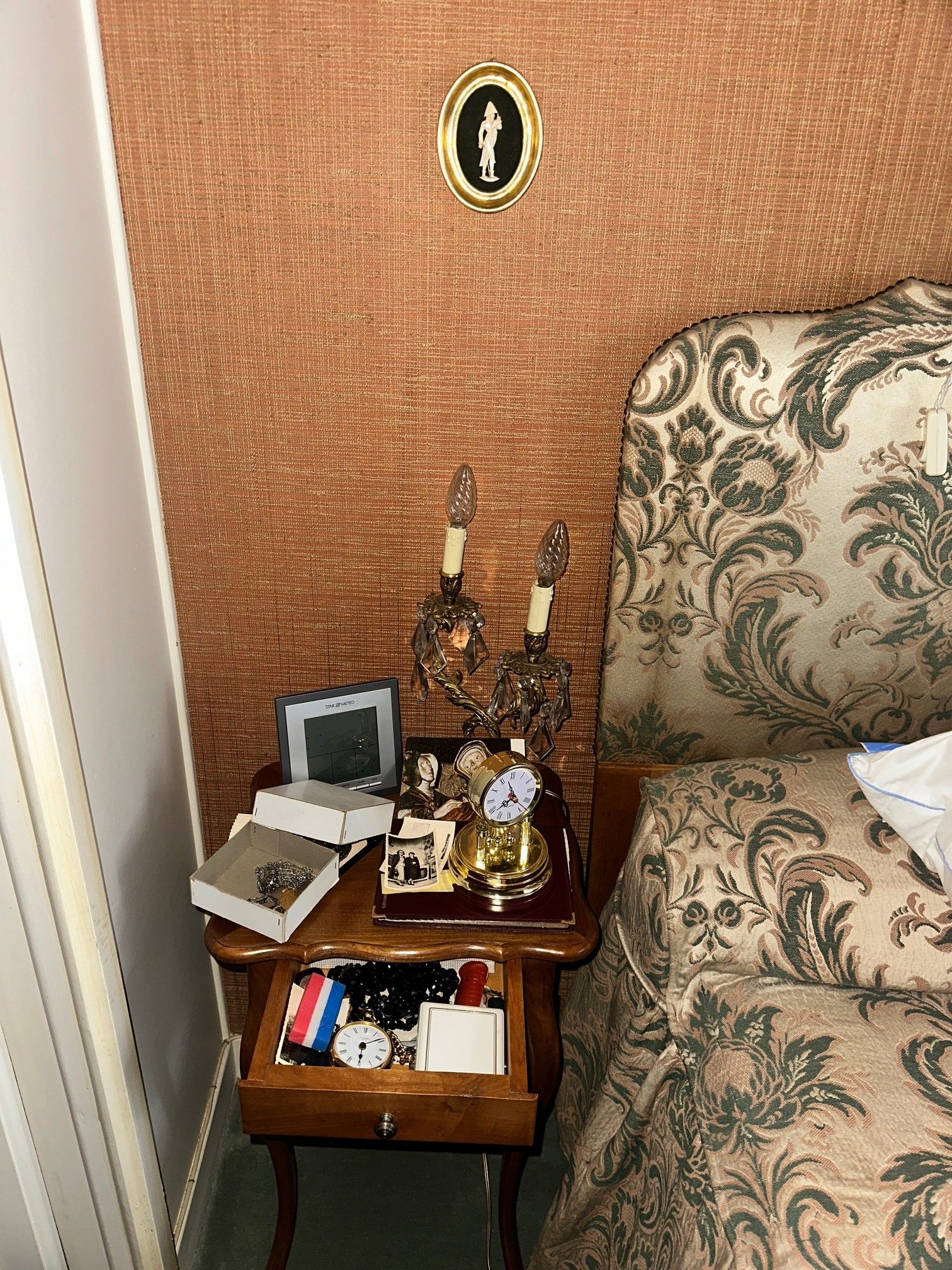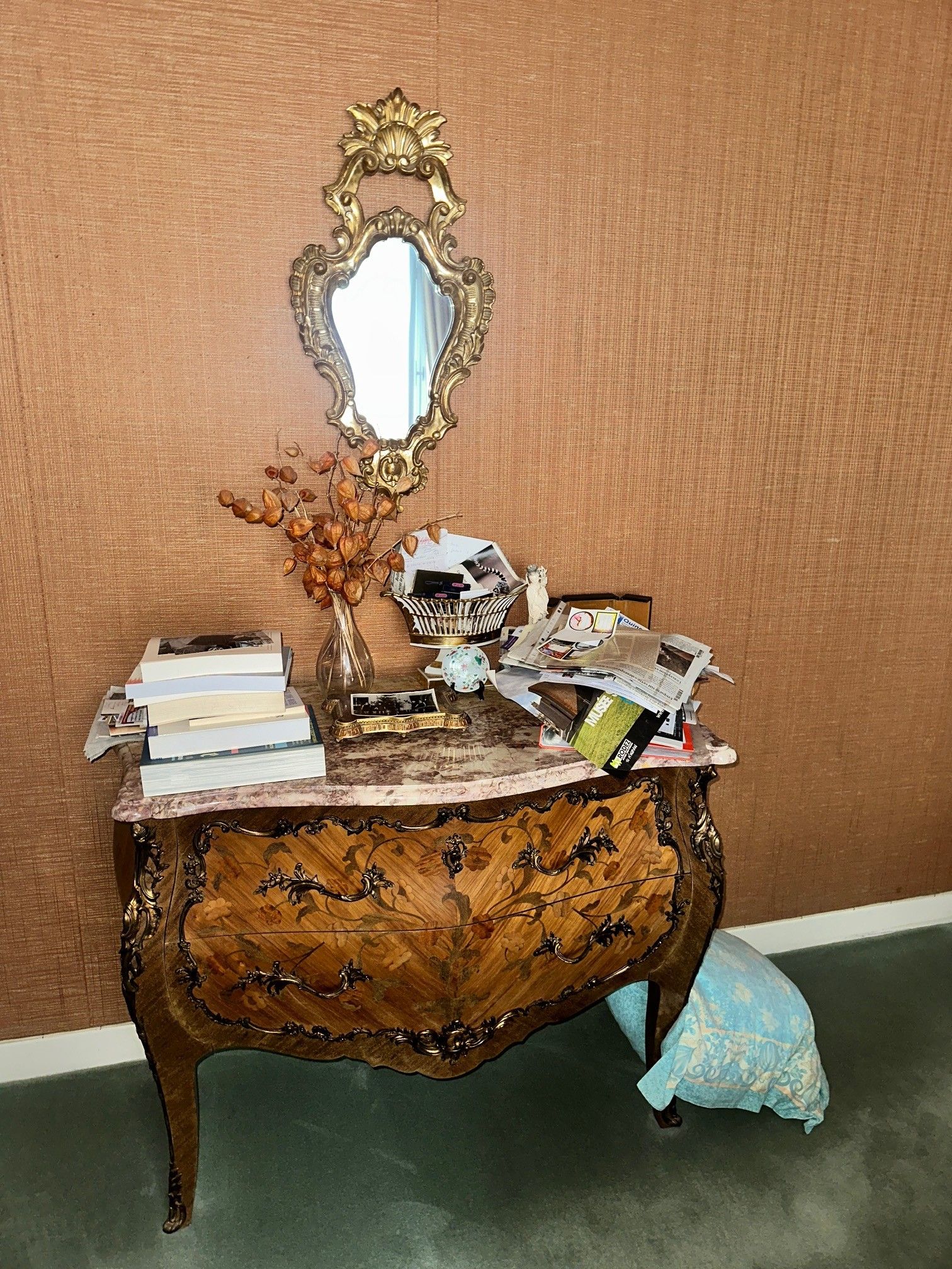 Entire contents of the bedroom (brown fabric walls) and bathroom including Louis XV style bedroom furniture - textile linen - light fittings - decoration - bottles - contents of cupboard ... *** sale following an inheritance this lot is to be collected DIRECTLY FROM the house in the centre of Rodez on Monday 1 December at 8.30am on presentation of the receipted invoice*** - ref 32793
