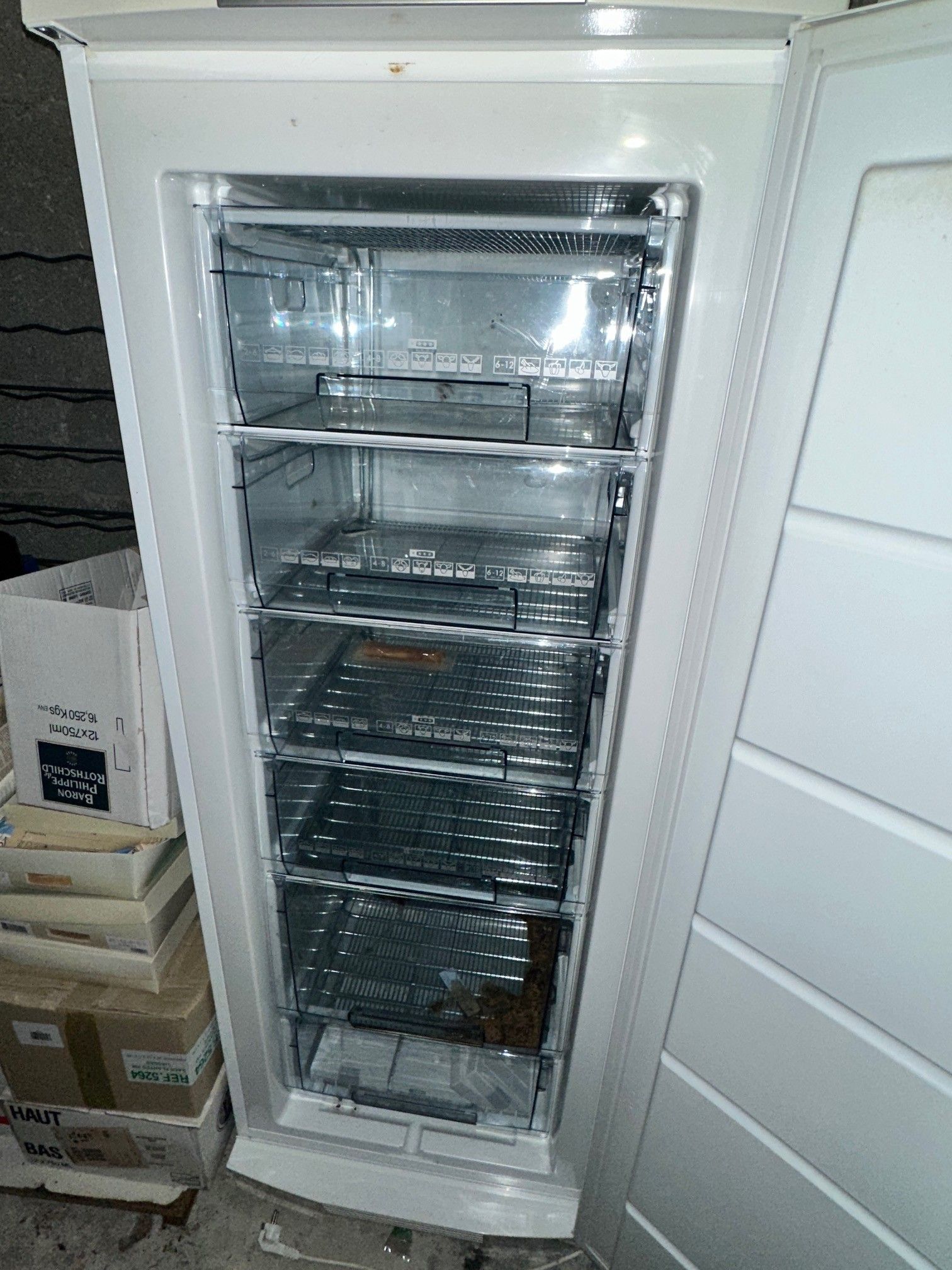 Vertical freezer AEG opening with a door - to clean - is in the cellar *** sale further to succession this lot is to recover IMPERATIVELY AND DIRECTLY in the house centre town of Rodez Monday, December 1 at 8:30 am on presentation of the paid invoice*** - ref 32793