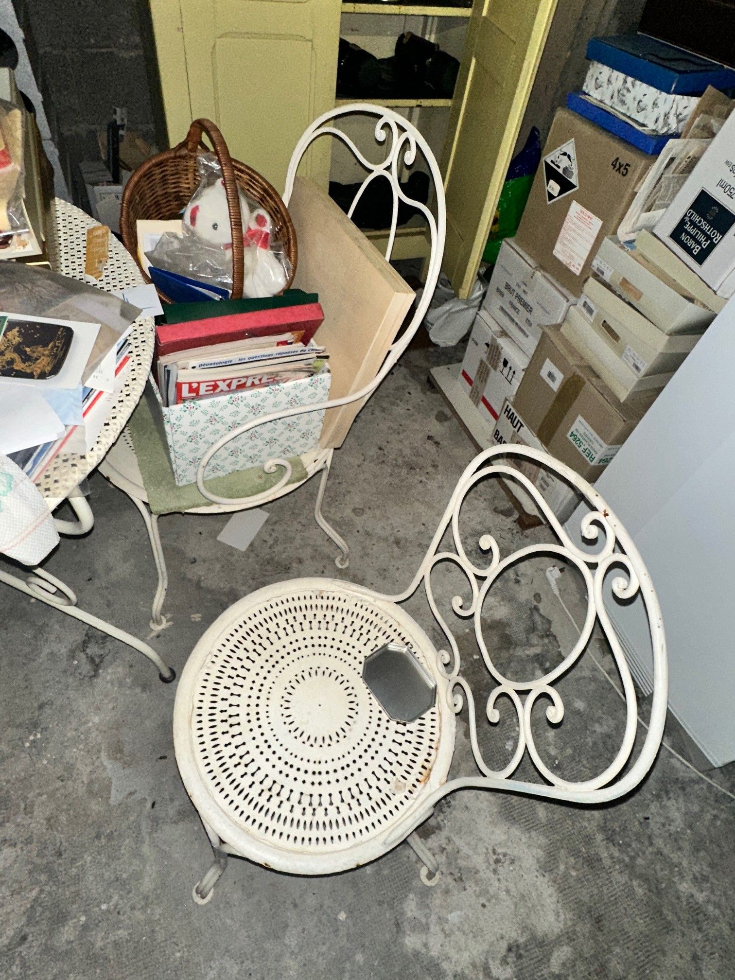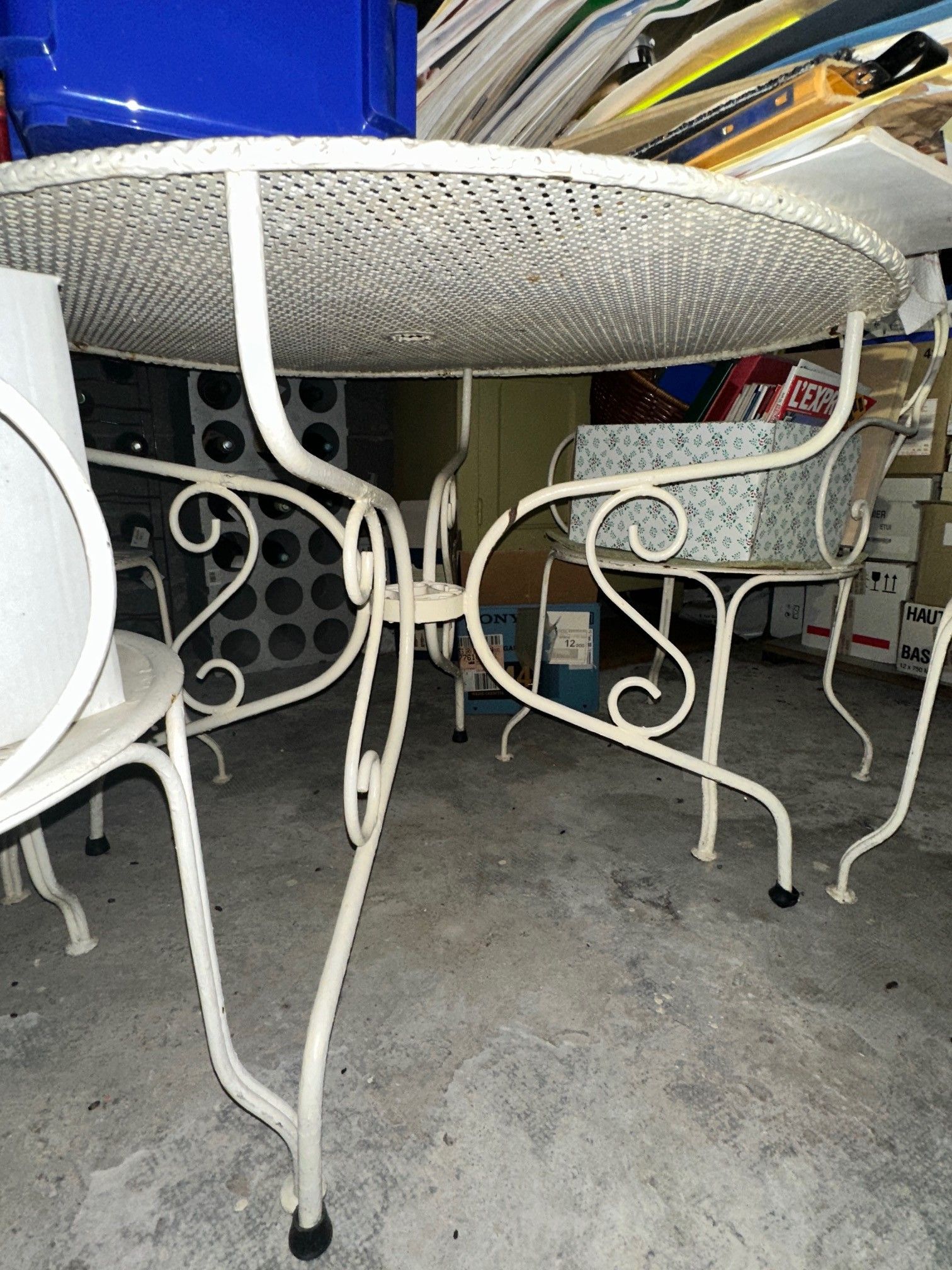 Furniture of living room in perforated iron middle XXe - including a round table - 4 seats - in good state preserved with the cellar *** sale following succession this lot is to be collected IMPERATIVELY AND DIRECTLY in the house centre town of Rodez Monday, December 1 at 8:30 am on presentation of the paid invoice*** - ref 32793