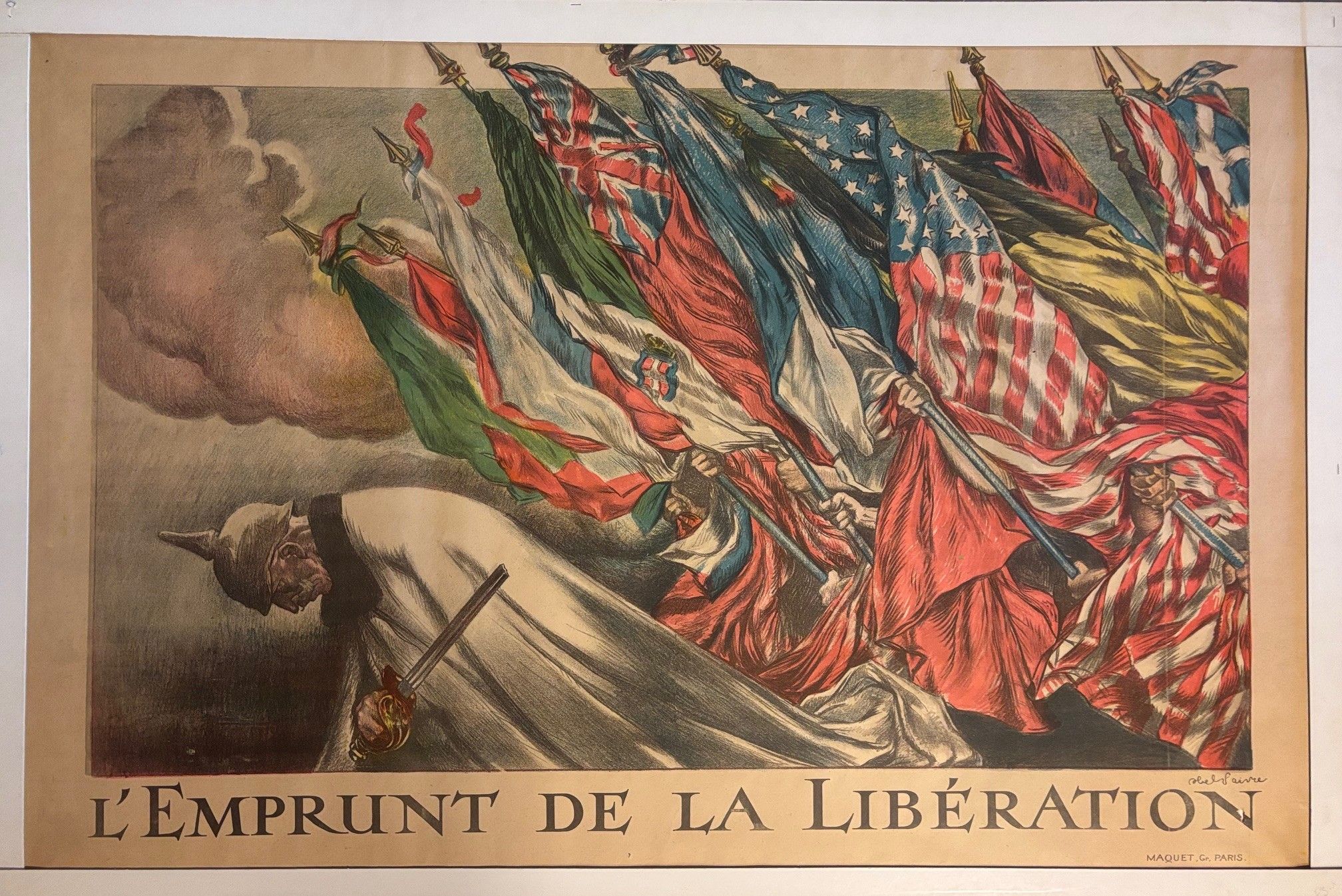 Early 20th century LIBERATION BORROWING poster - 120 x 80 cm…