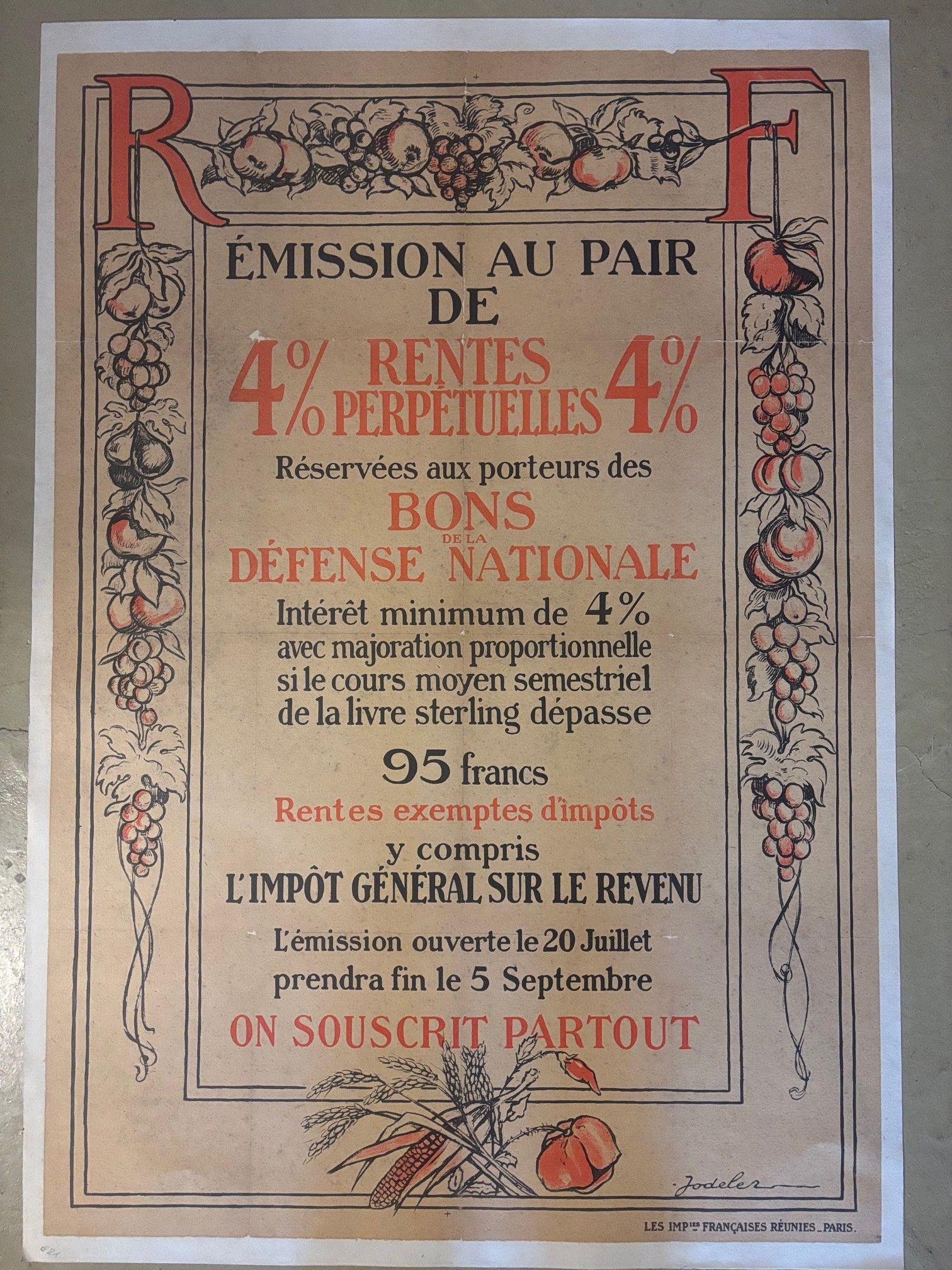 JODELET - Issue at par of 4% perpetual annuities - Poster printed by Les Imprimeries Françaises Réunies, Paris. - 114 x 80 cm - Ref. 32752 -38