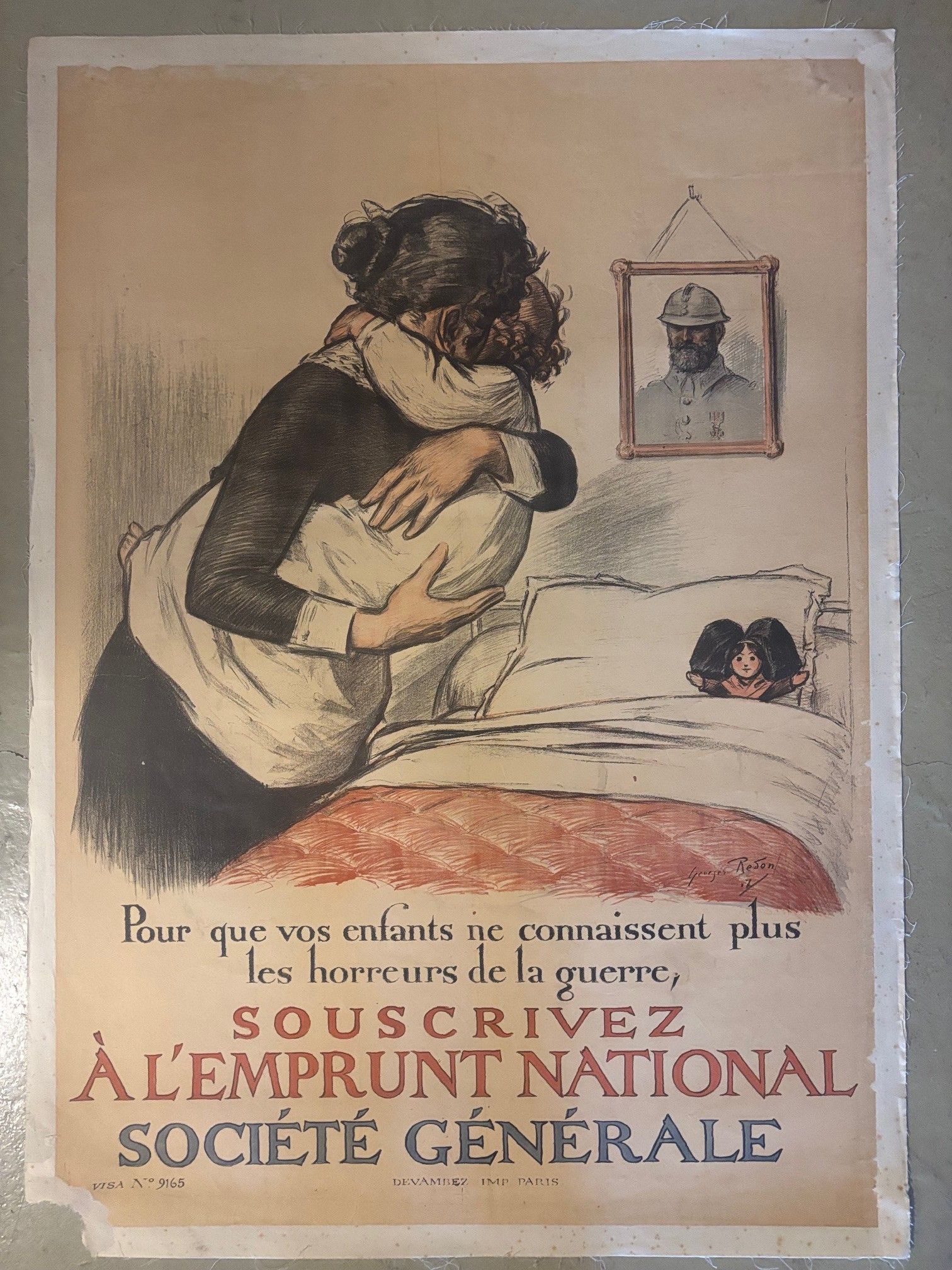 Georges REDON (1869-1943) - canvas poster - "Pour que vos enfants ne connaissent plus les horreurs de la guerre. Subscribe to the Société Générale national loan", 1917 - 115 x 80 cm - Imp. Devambez à Paris - Ref. 32752 -39
