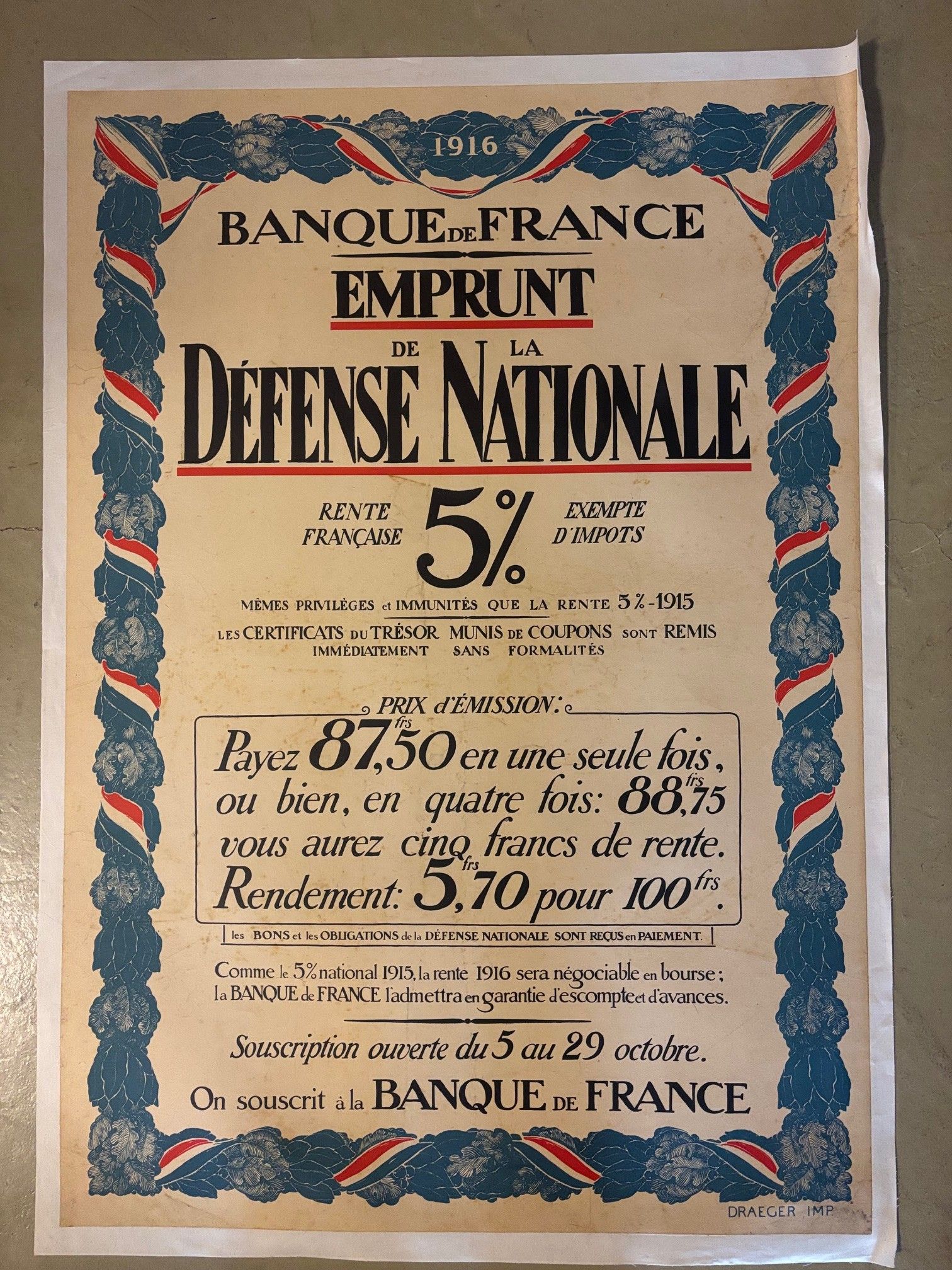 Canvas poster - illustrated with the National Defence Loan, published in 1916 by the Banque de France and printed by Draeger - Paris - 100 x 70 cm - Ref. 32752 -44