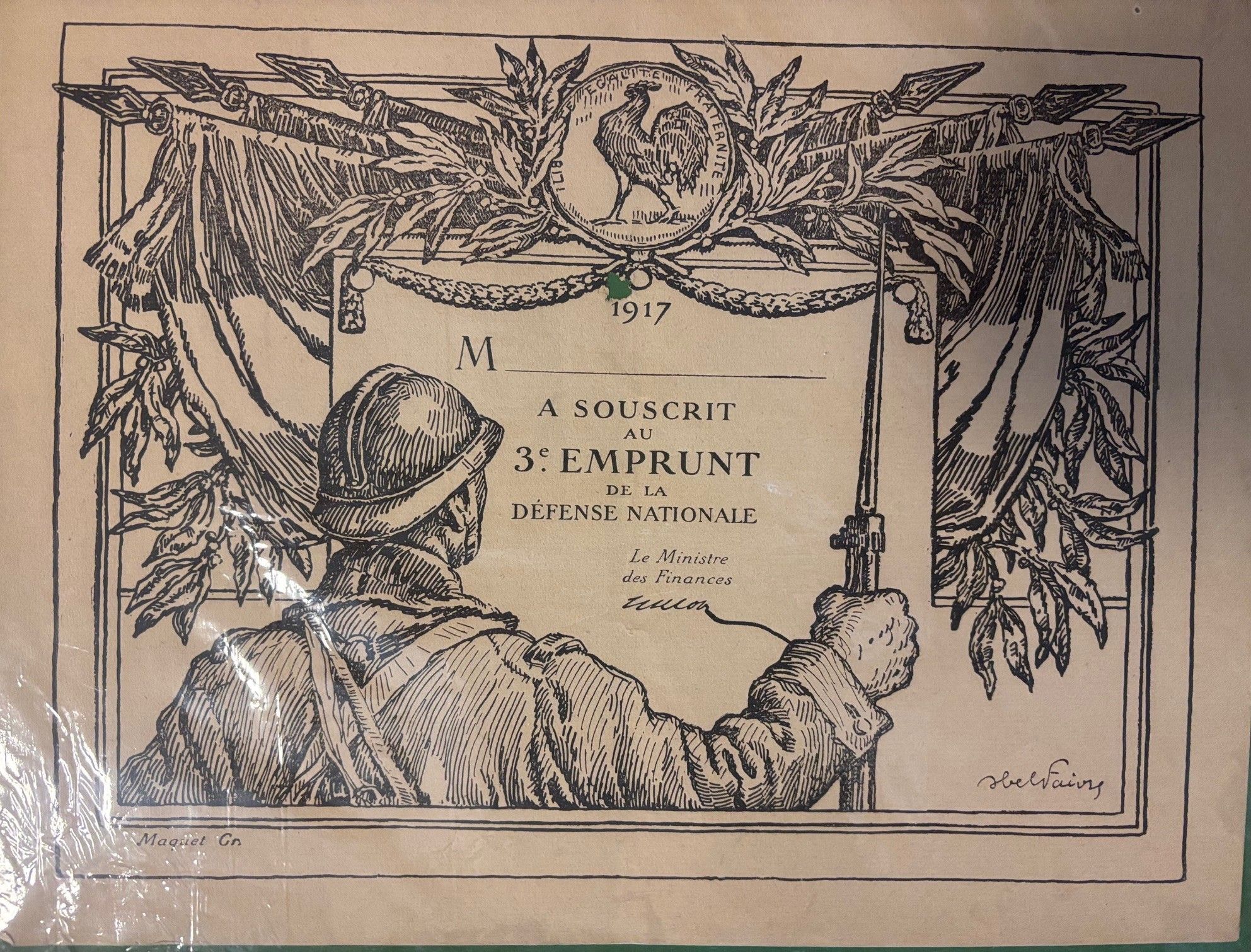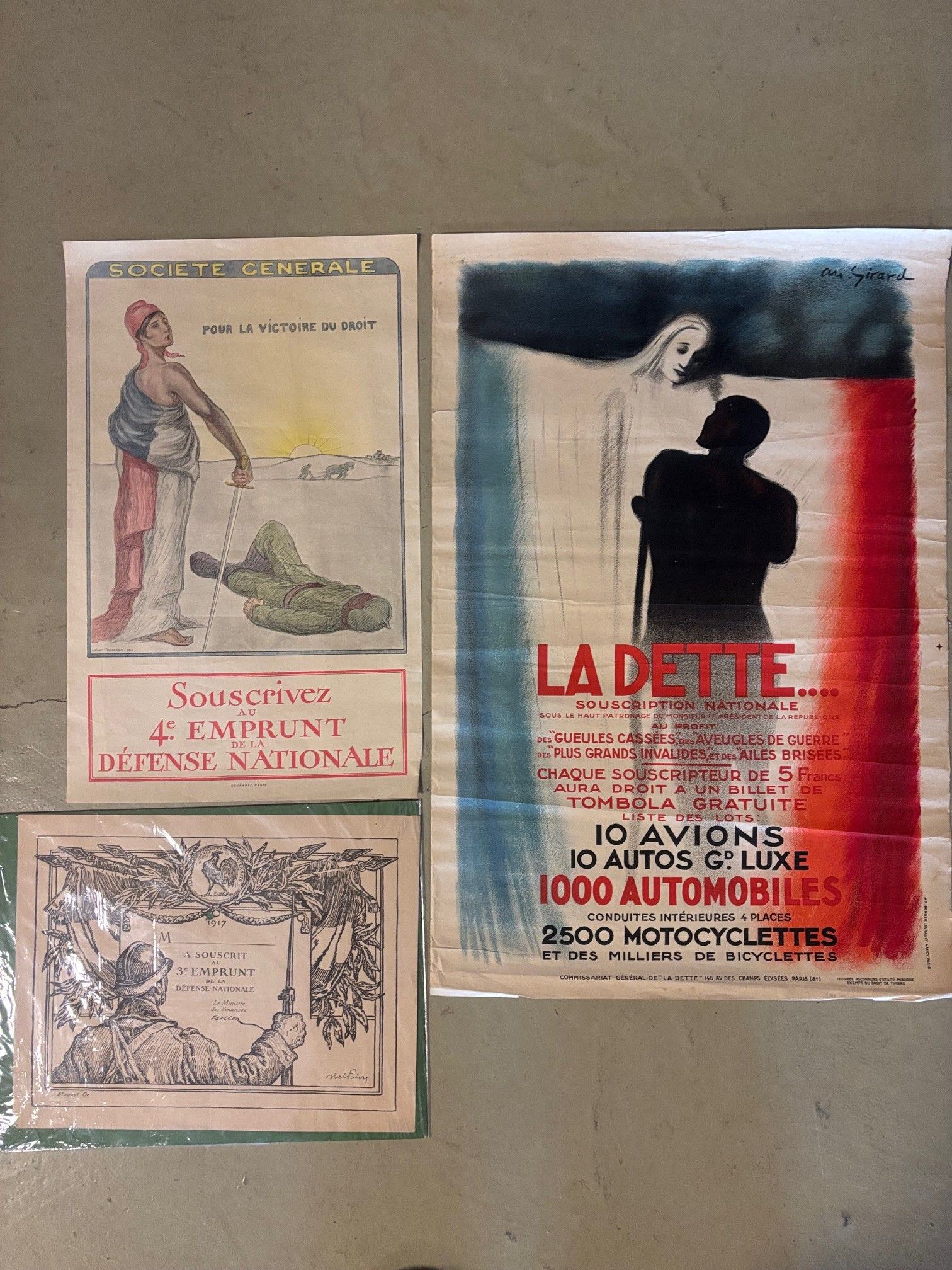 Set of 3 posters - national defence loan, debt, bank cheque - early 20th century - 60 x 40 cm the largest - Ref. 32752 -60