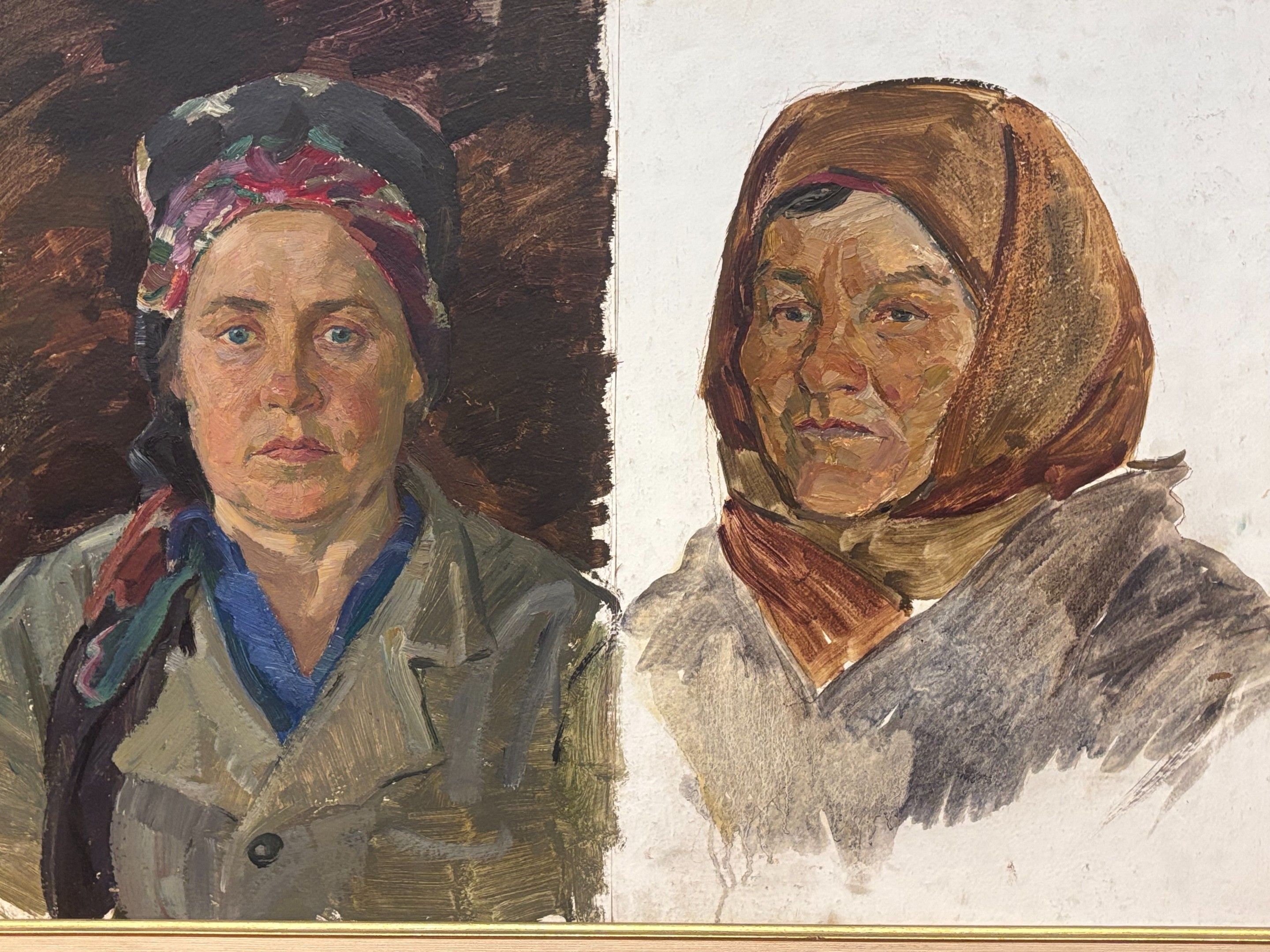 LEJNIN Ivan (1924) - Russian school - 2 portrait studies - HSC - 48 x 68 cm - Ref. 32747