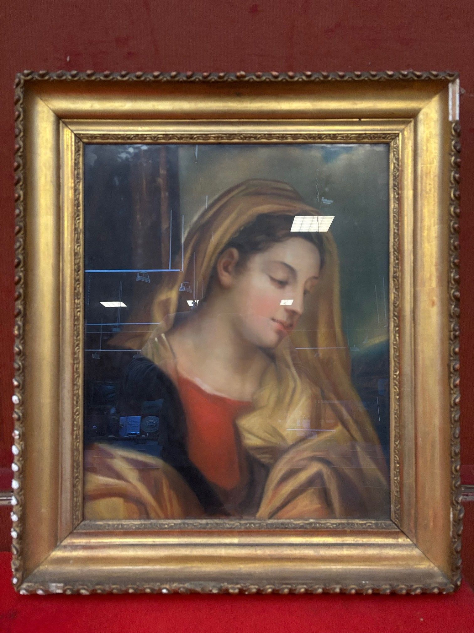 19th century French school - Portrait of a woman - pastel on paper - small accident at the bottom - period frame (chips) - 54 x 45 cm - Ref. 32777 -1